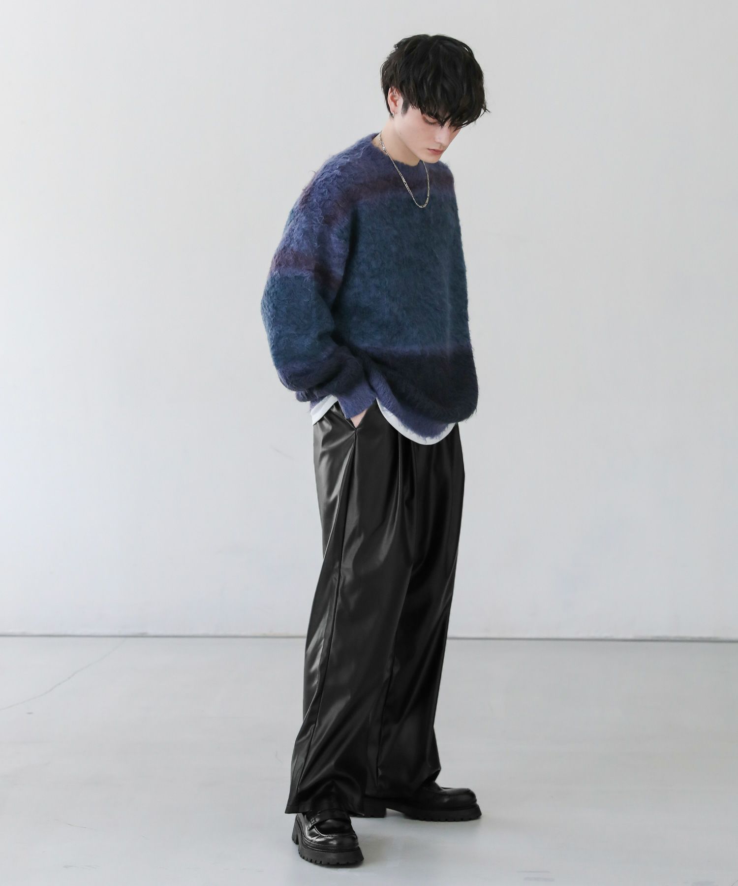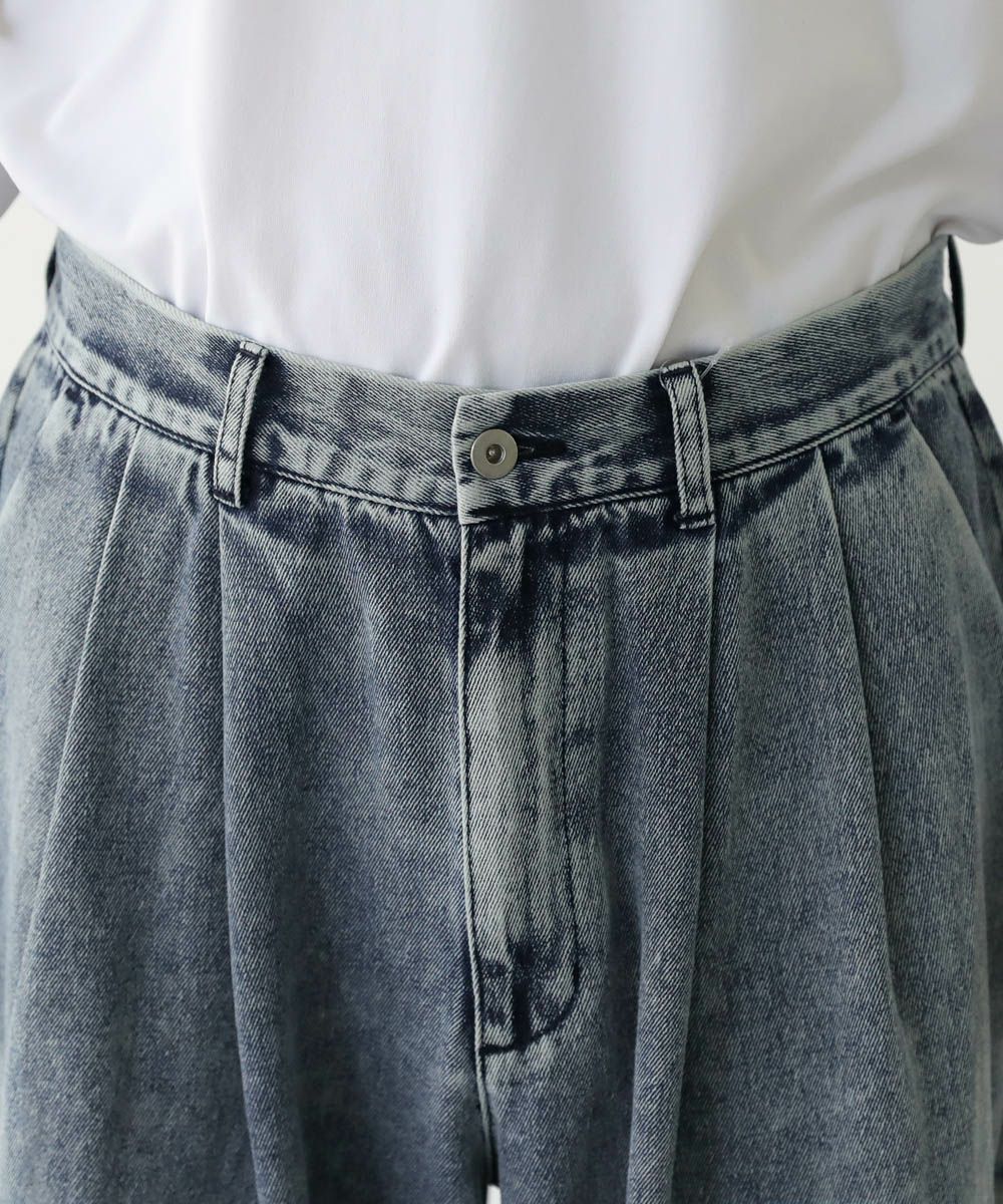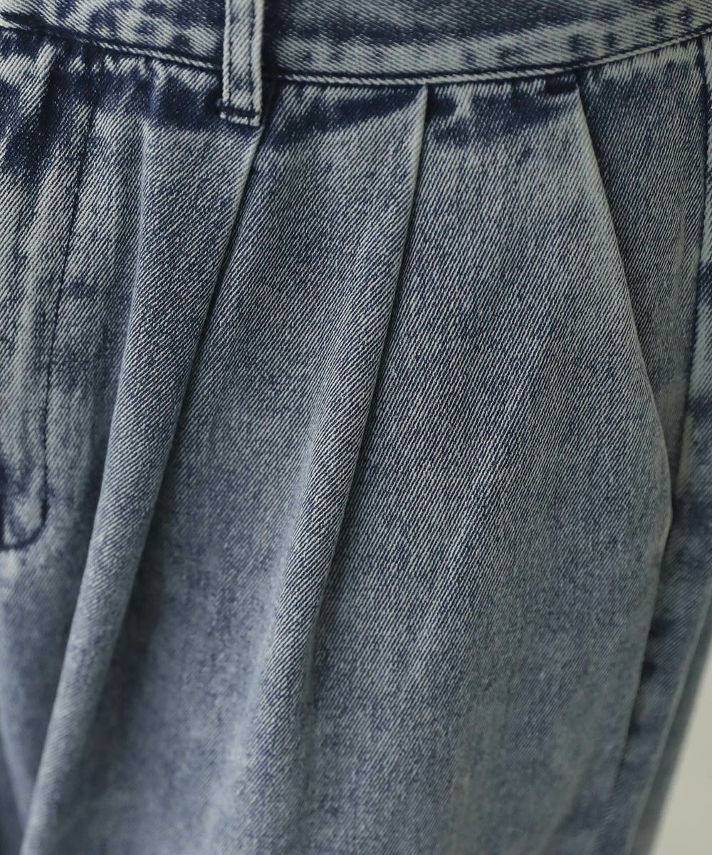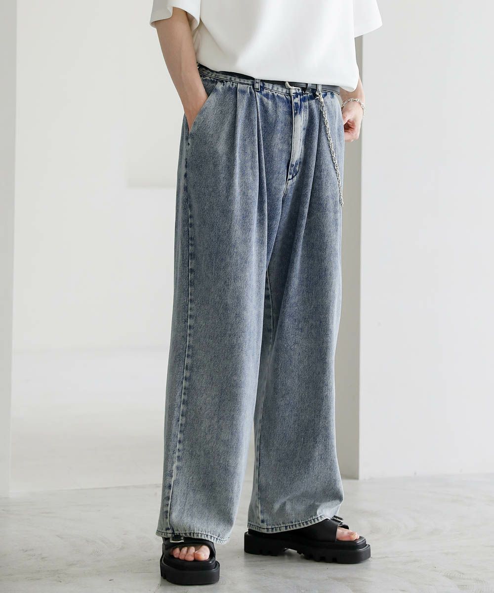 2タックワイドバギーデニム/シンセティックレザーパンツ
