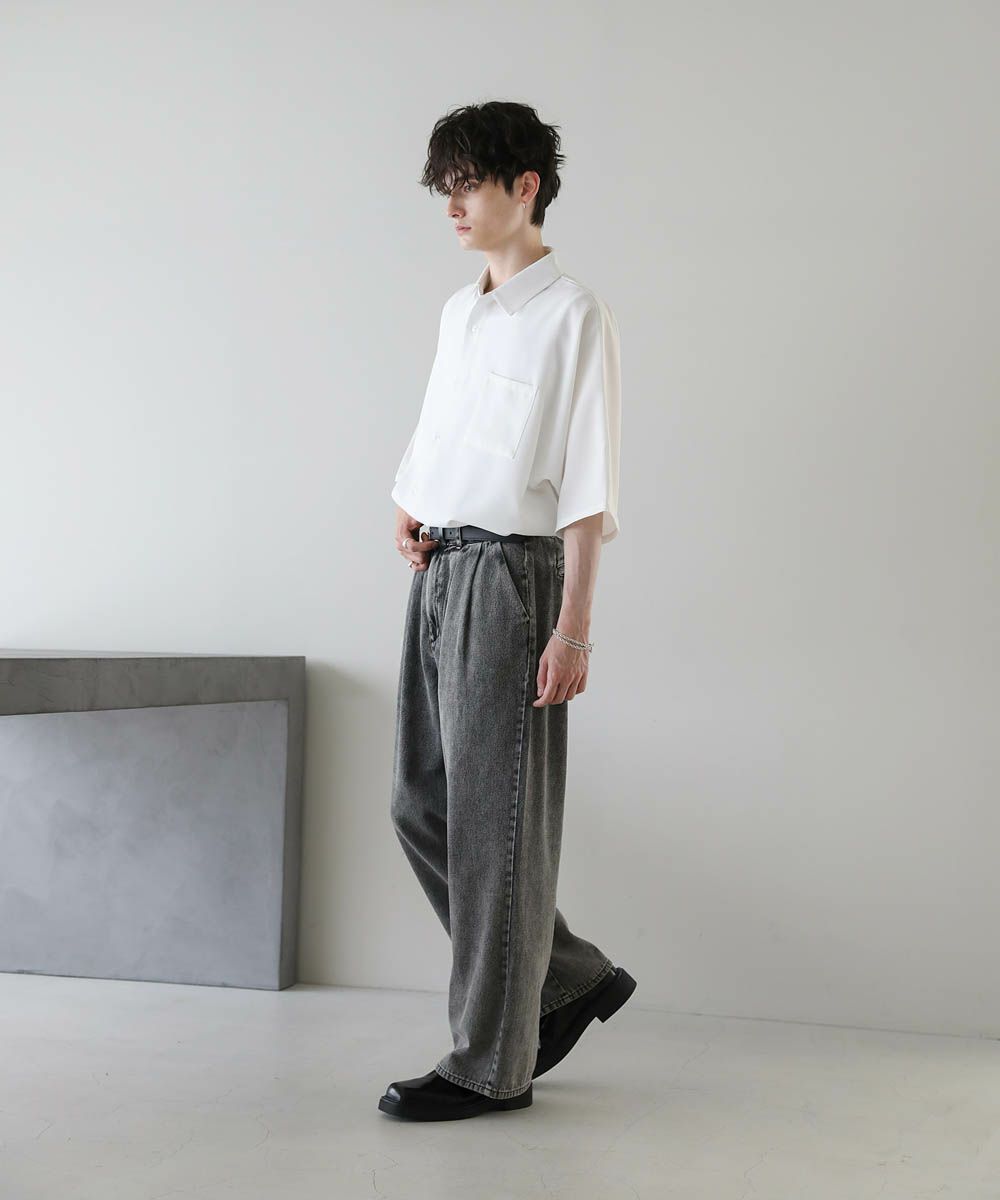 3. 2タックワイドバギーデニム/シンセティックレザーパンツ