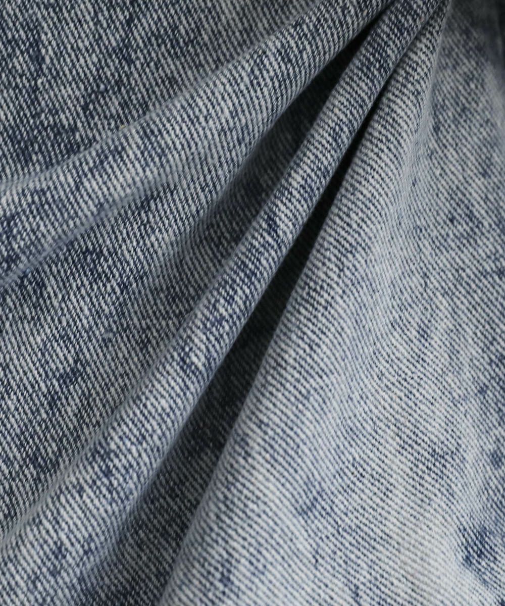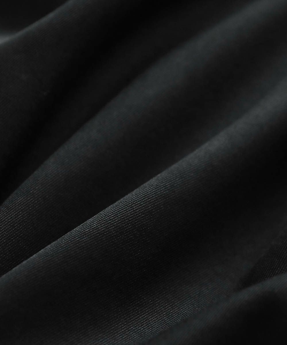 素材は、ソリッドなブラックとデニムの2素材。ブラックは、やや落ち感がありモードな雰囲気の漂う素材感。デニム素材はコーディネートのアクセントになるケミカルデニムを採用。12.3ozの程よく厚みのある生地感で、オールシーズン着用が可能です。
