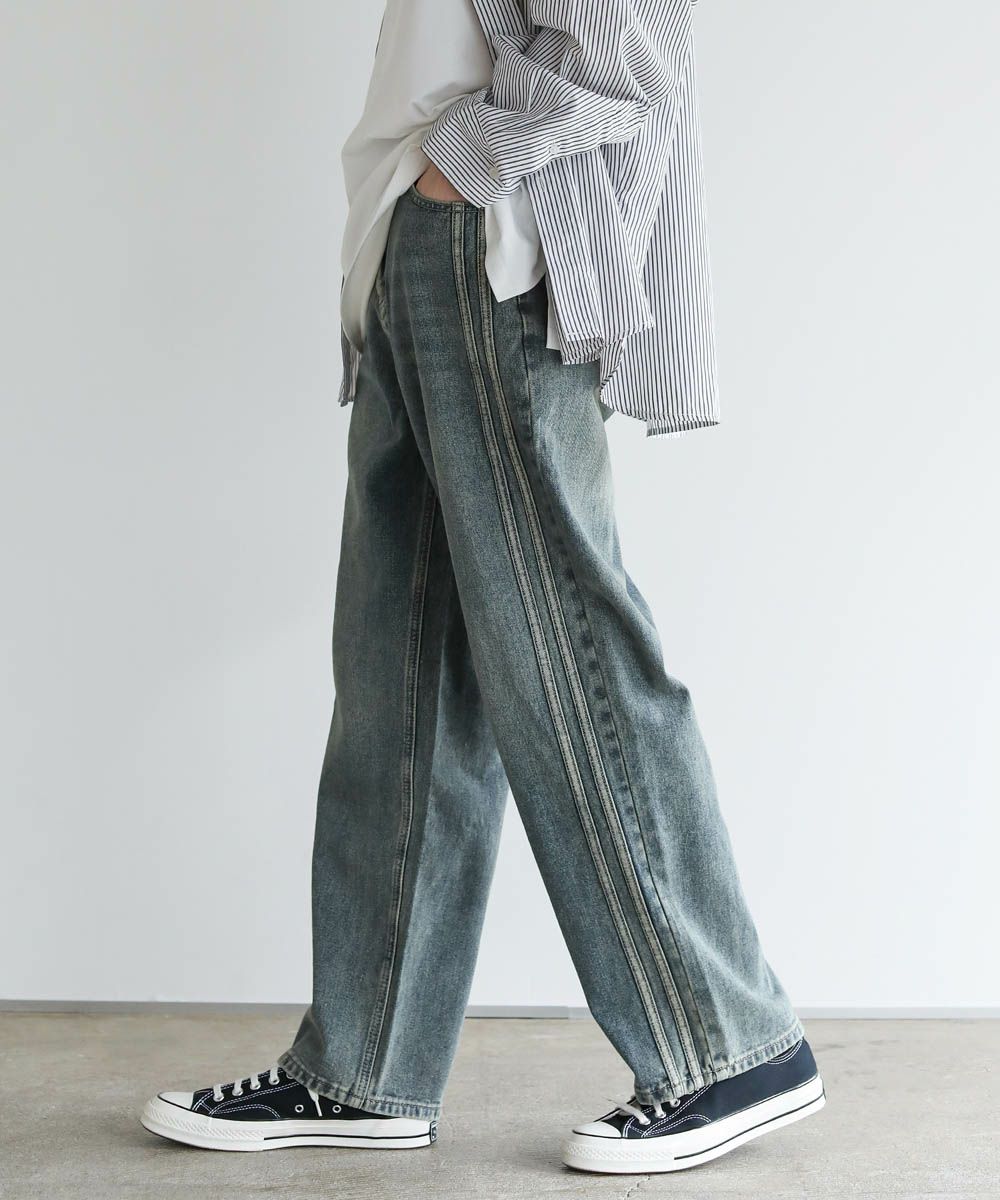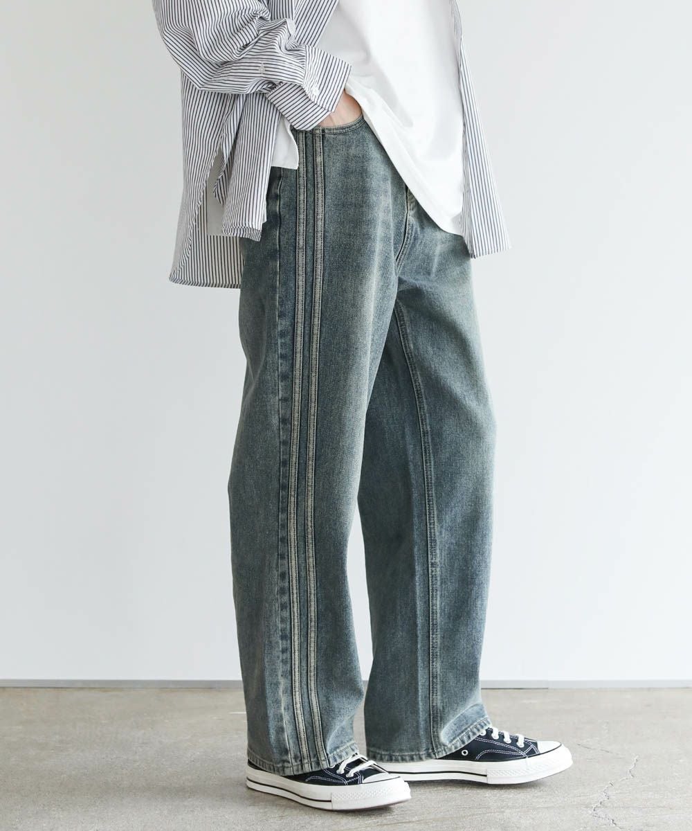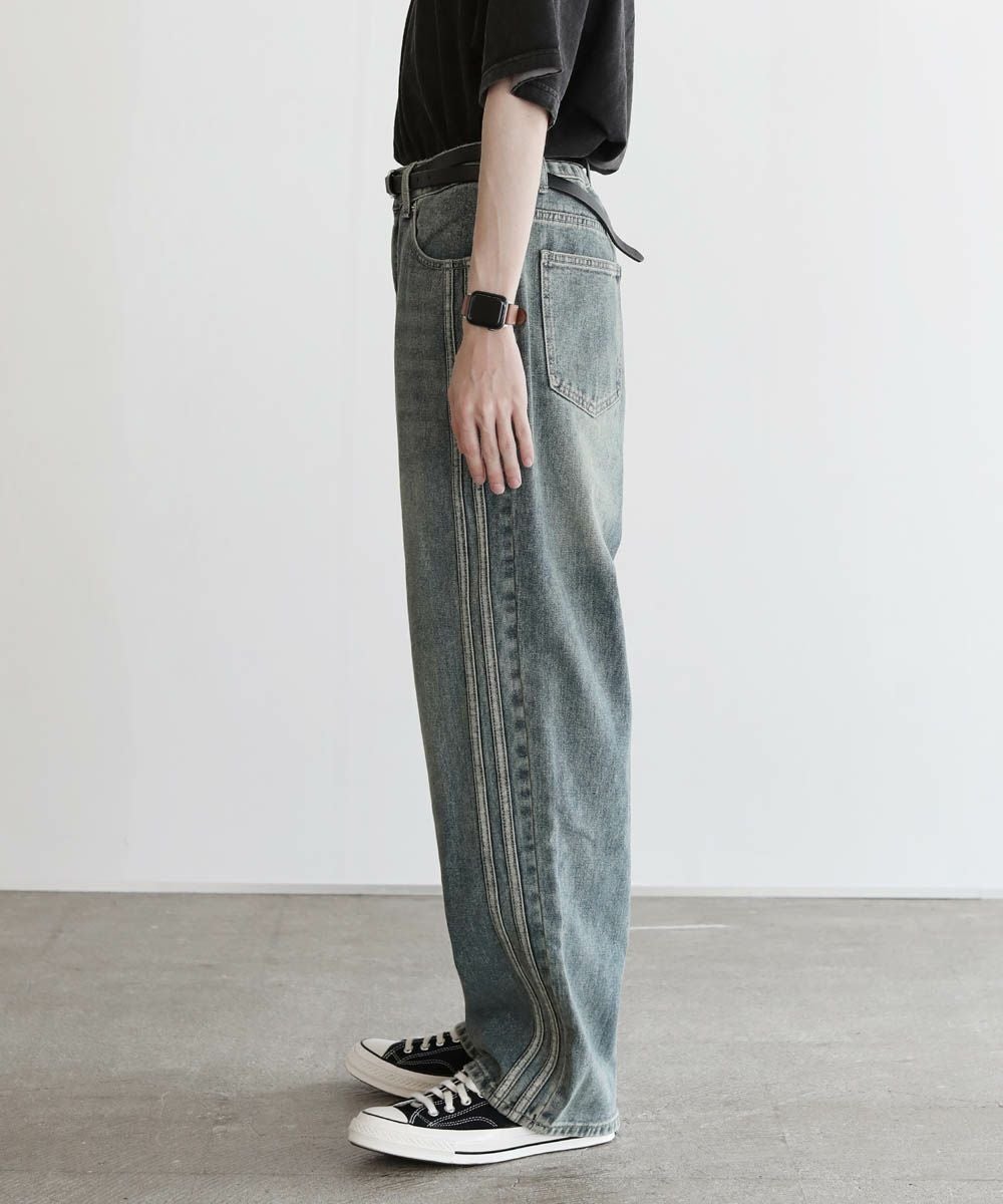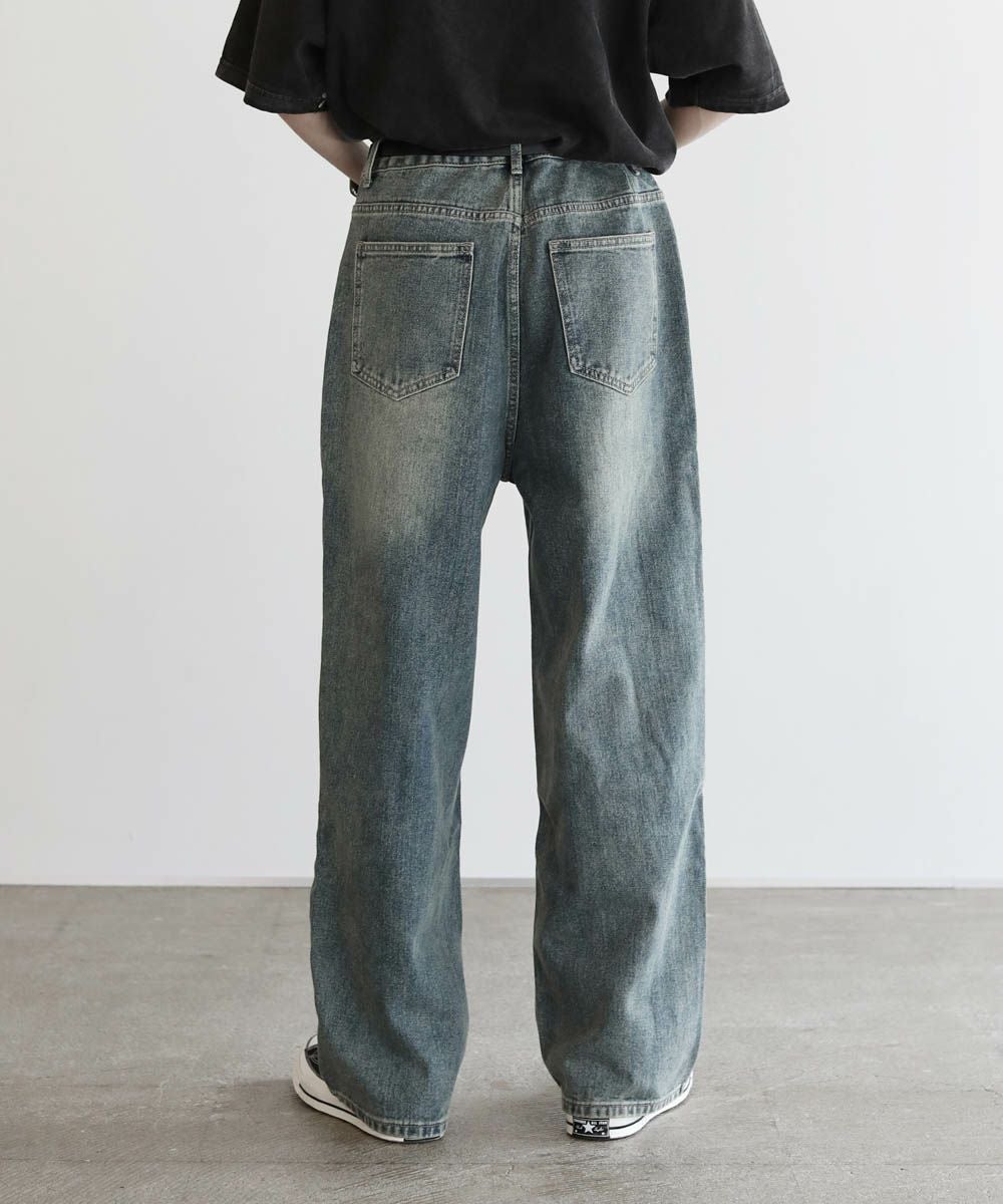 サイドシームヘビーウェイトヴィンテージ加工ワイドデニム