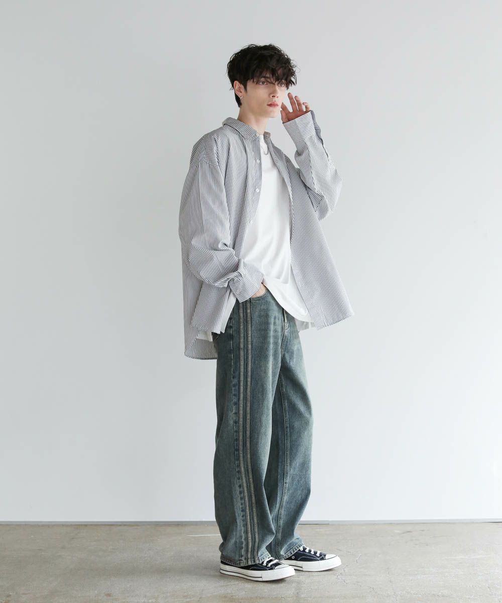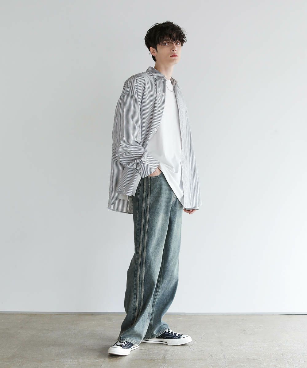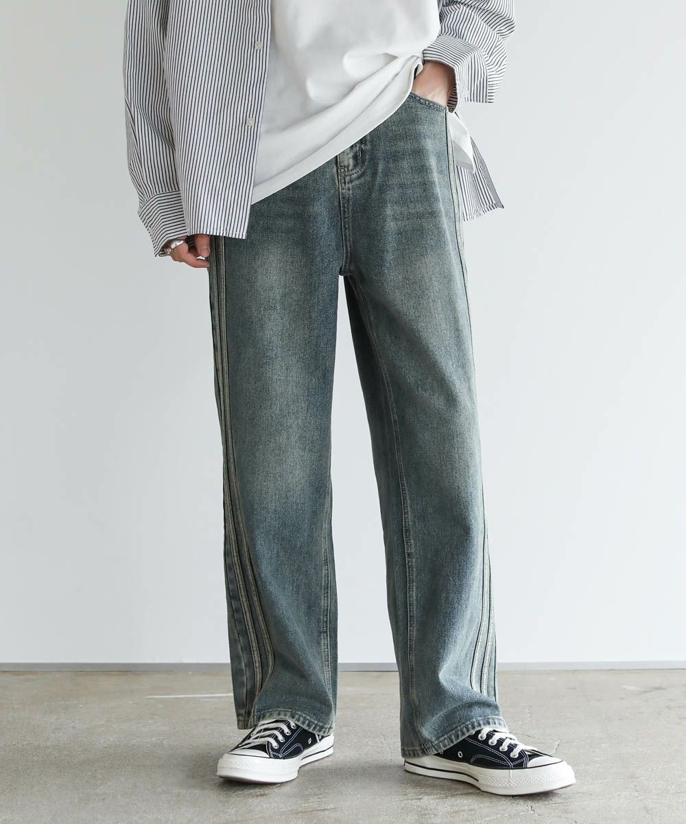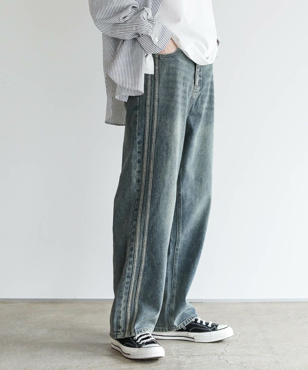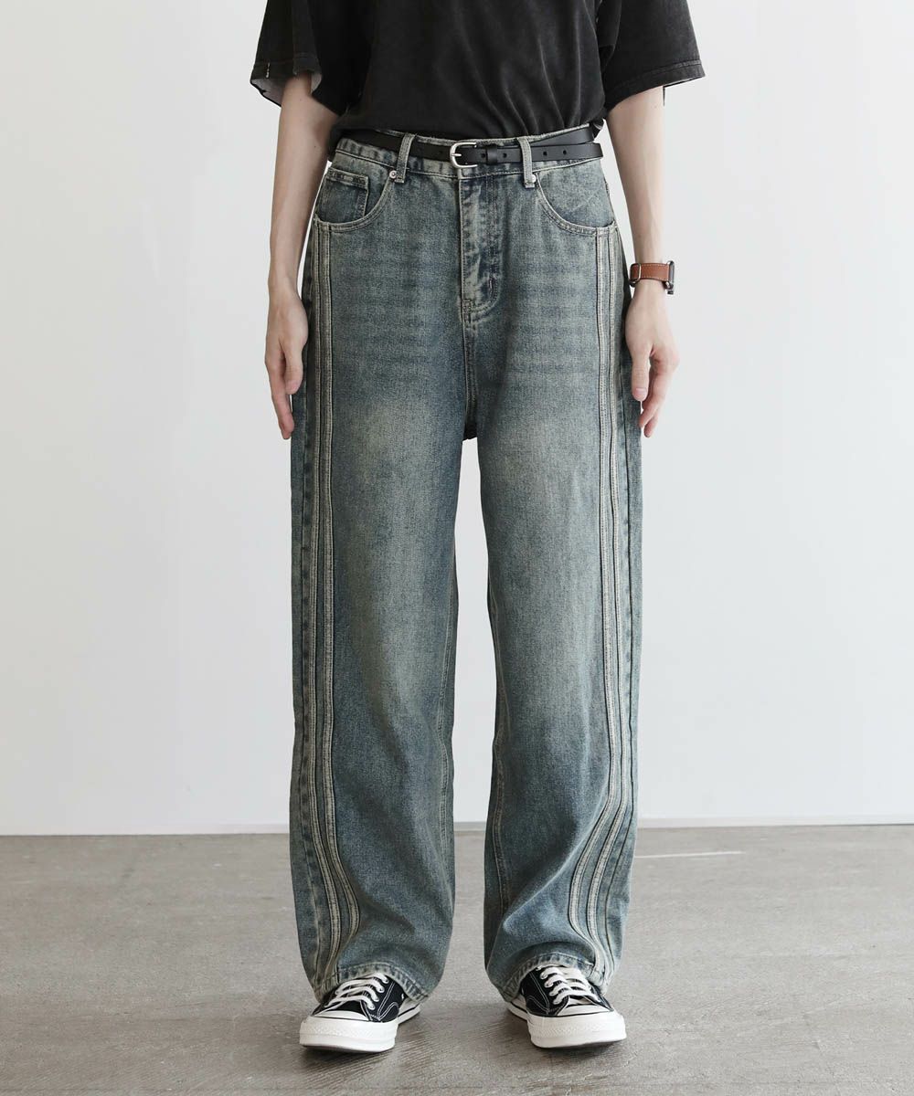 サイドシームヘビーウェイトヴィンテージ加工ワイドデニム