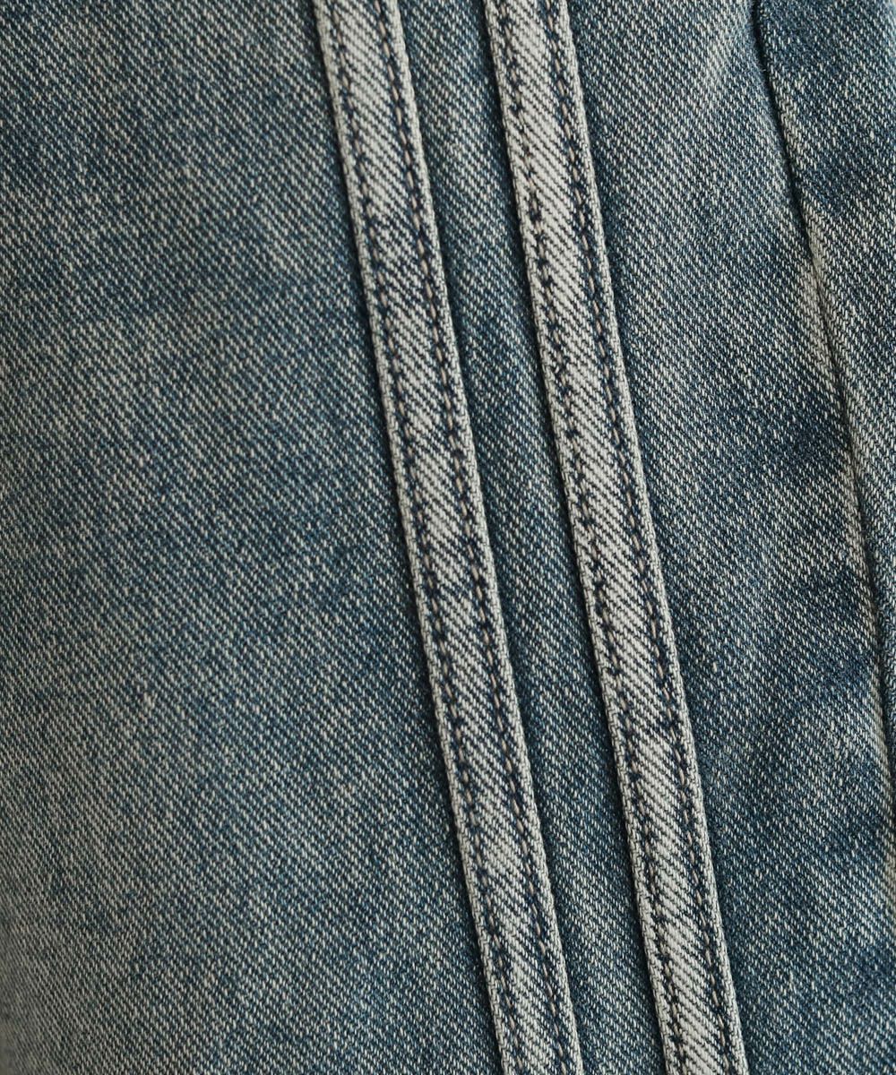 コットンポリエステルのデニム生地を使用しています。色落ち加工が味のあるヴィンテージ感を演出。程よくハリのある生地で、シルエットをキレイに保ってくれます。