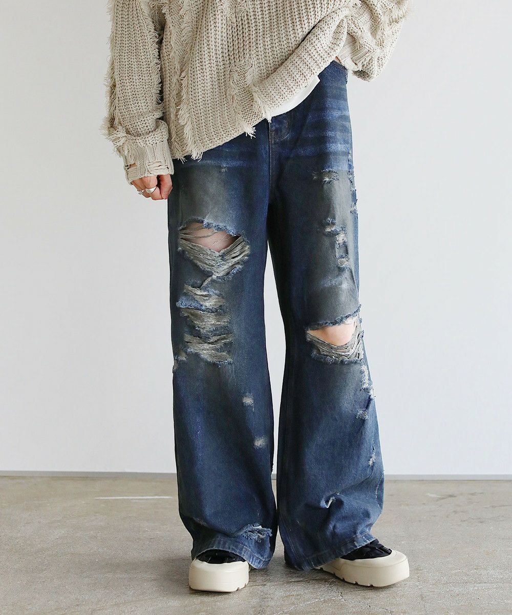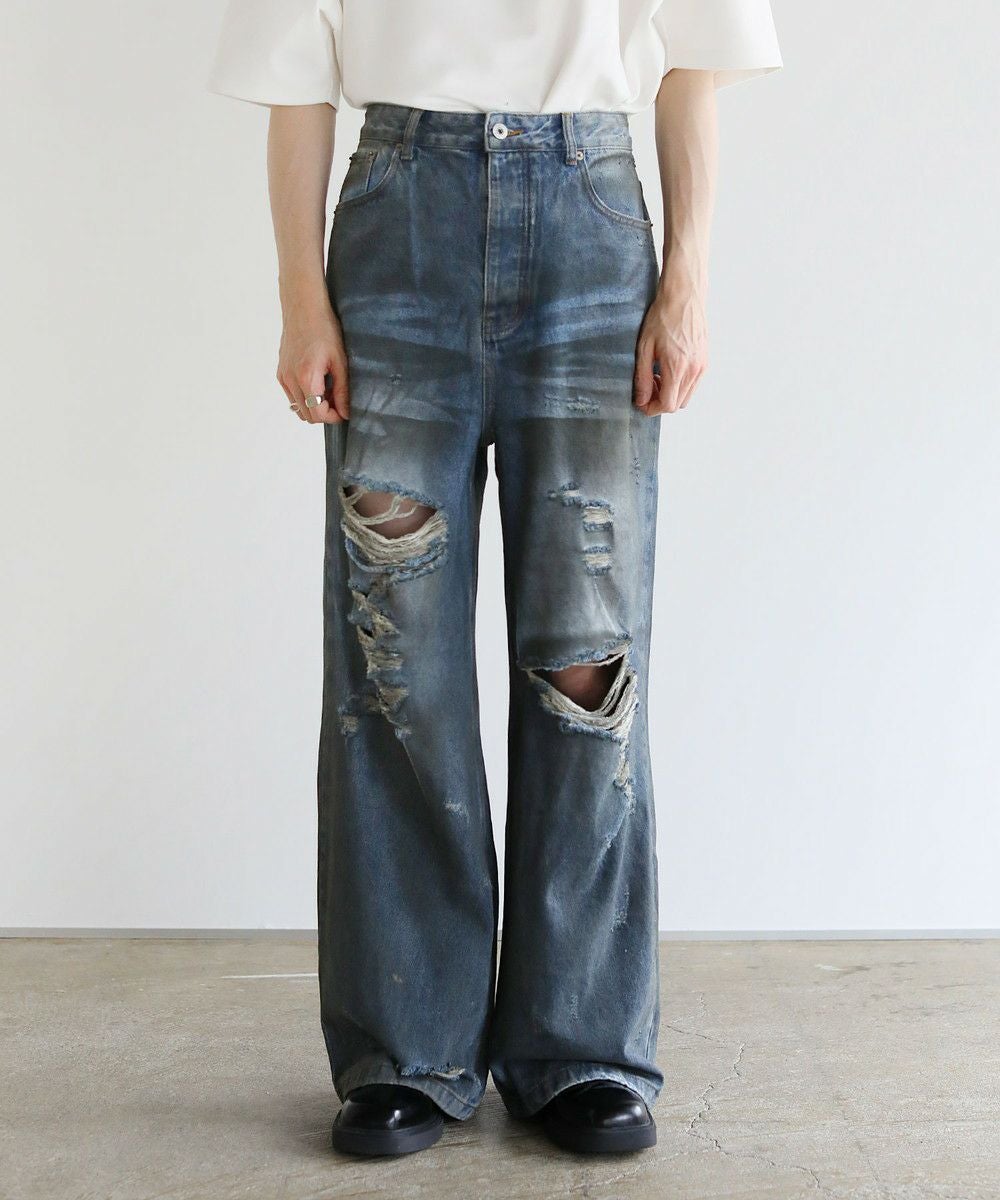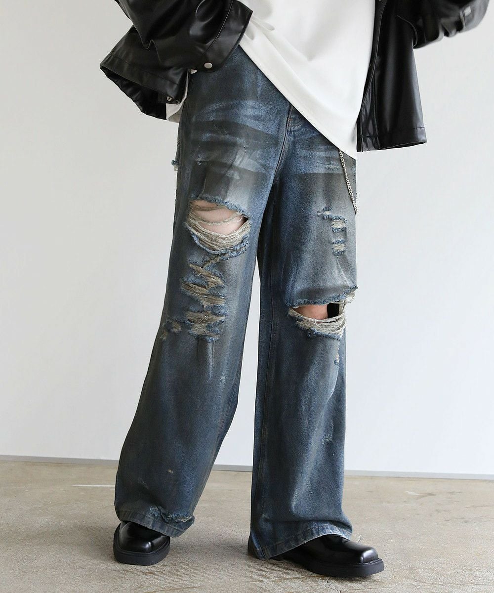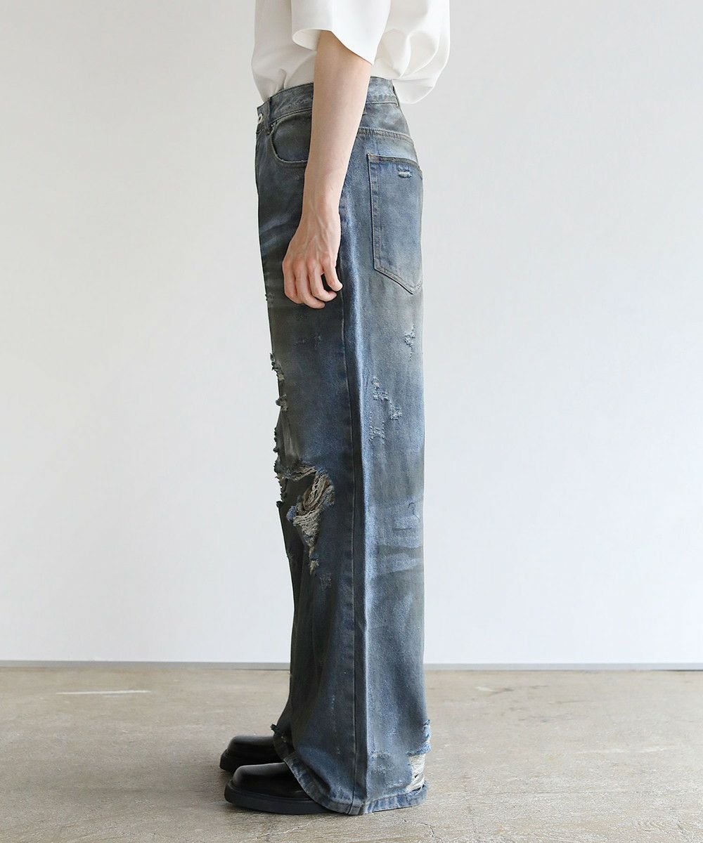 ヴィンテージ加工クラッシュワイドデニム