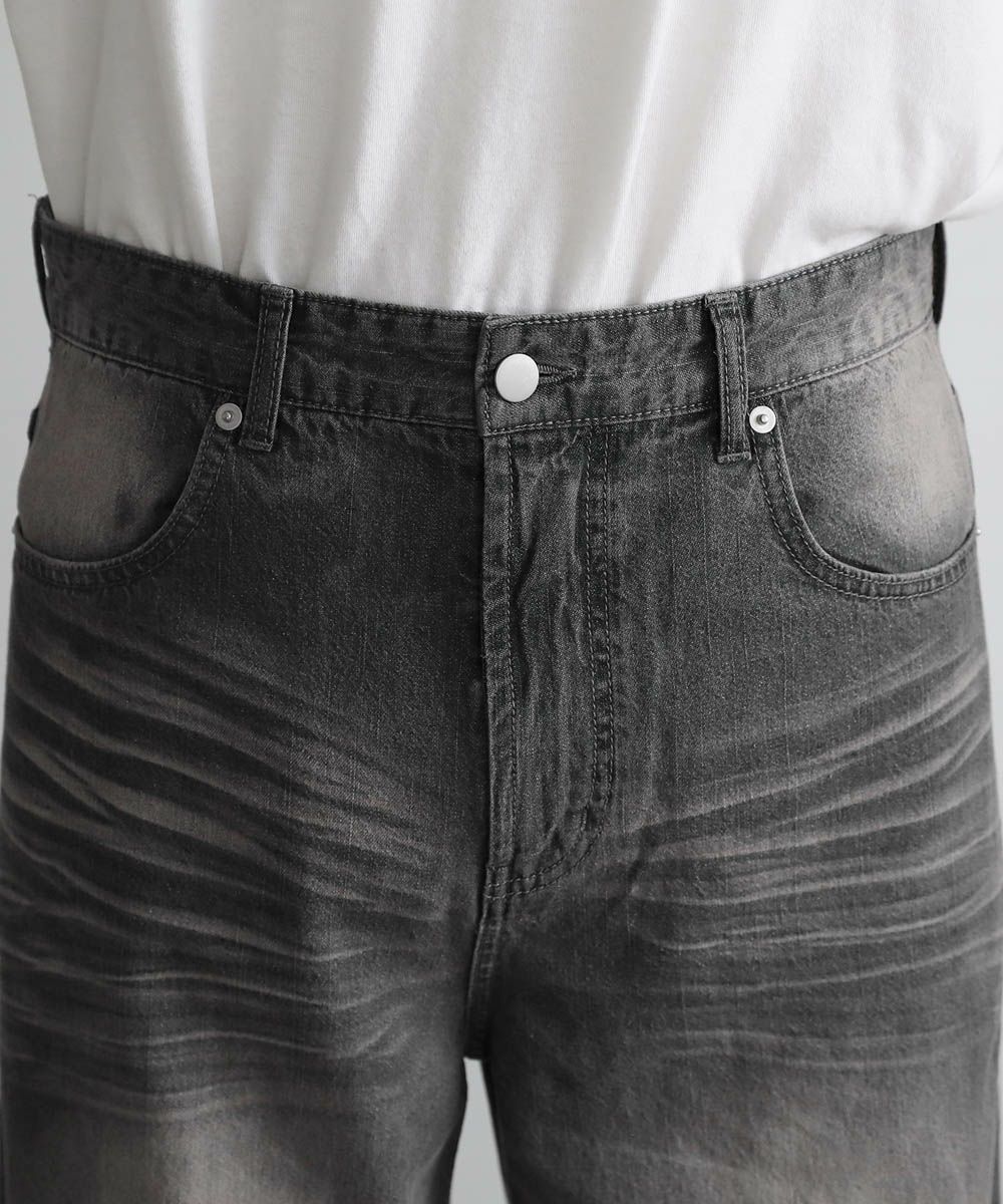 ヴィンテージデニムの風合いを再現したデニムパンツ。計算されたエイジング加工を施すことで、奥行きのあるフェード感を表現。ストンと落ちるストレートシルエットは脚長効果も。ヴィンテージ感のある加工が目を引き、着こなしのメインとして活躍するデニムパンツです。