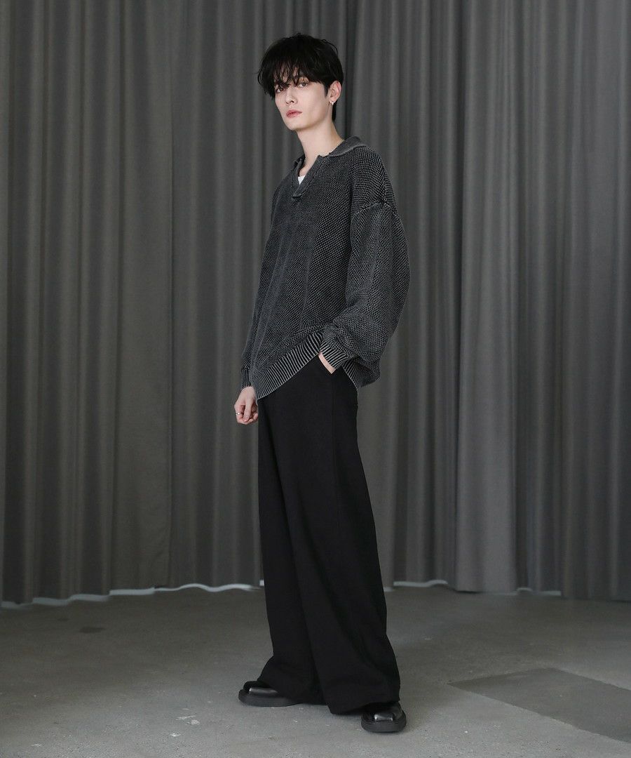 ピグメント加工鹿の子クルー/スキッパーニット