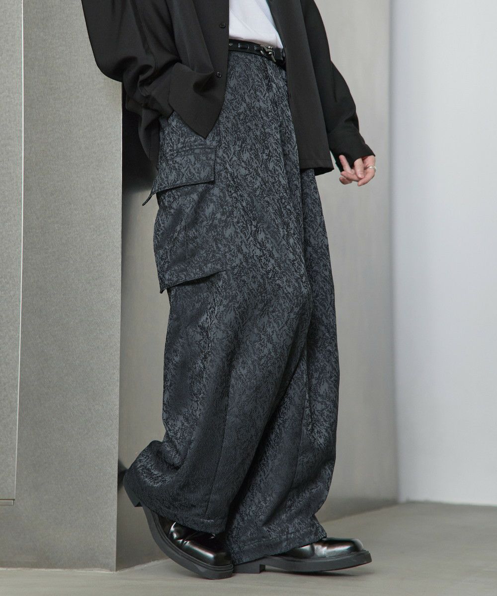 総柄ジャガード3Dカーゴパンツ