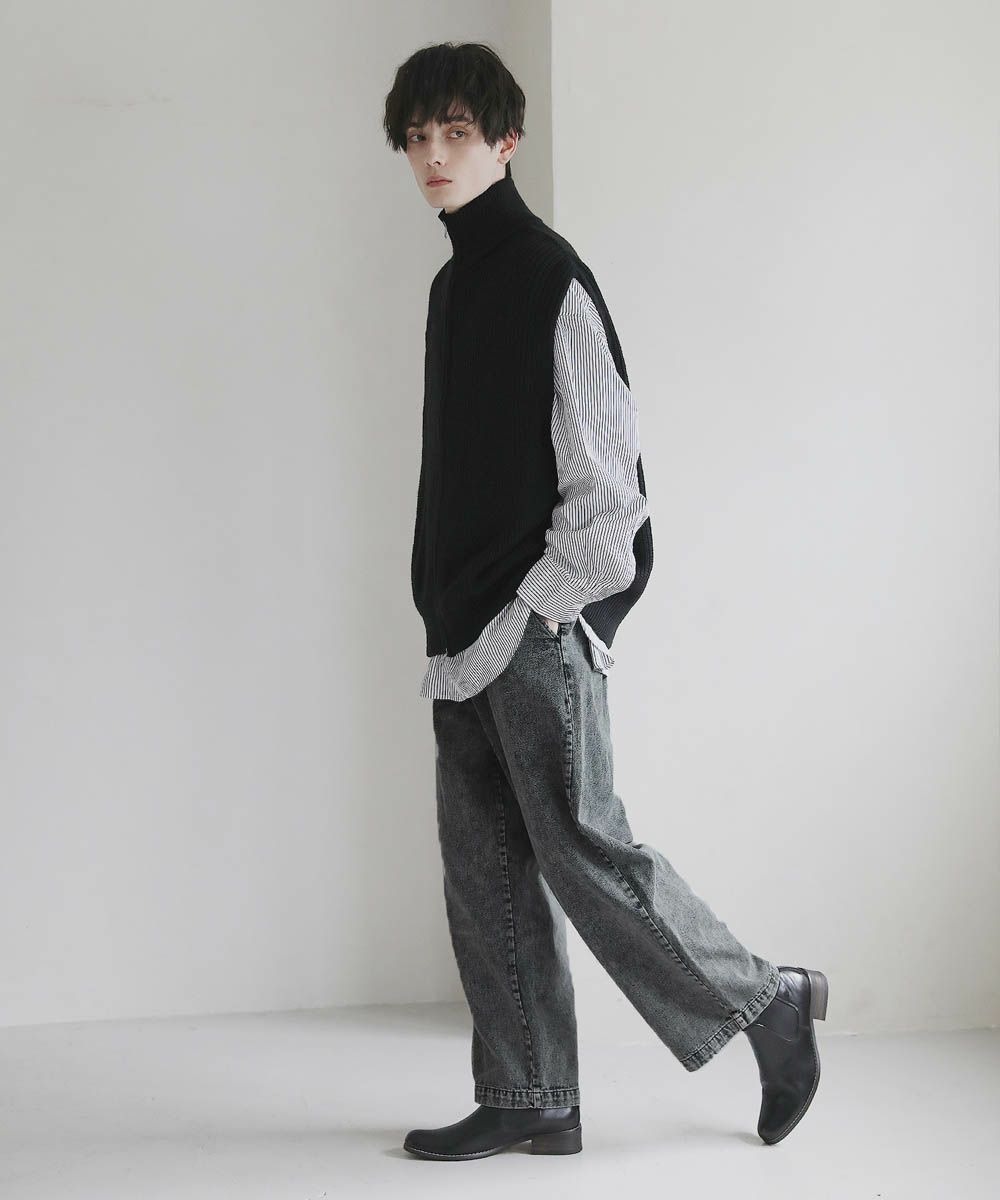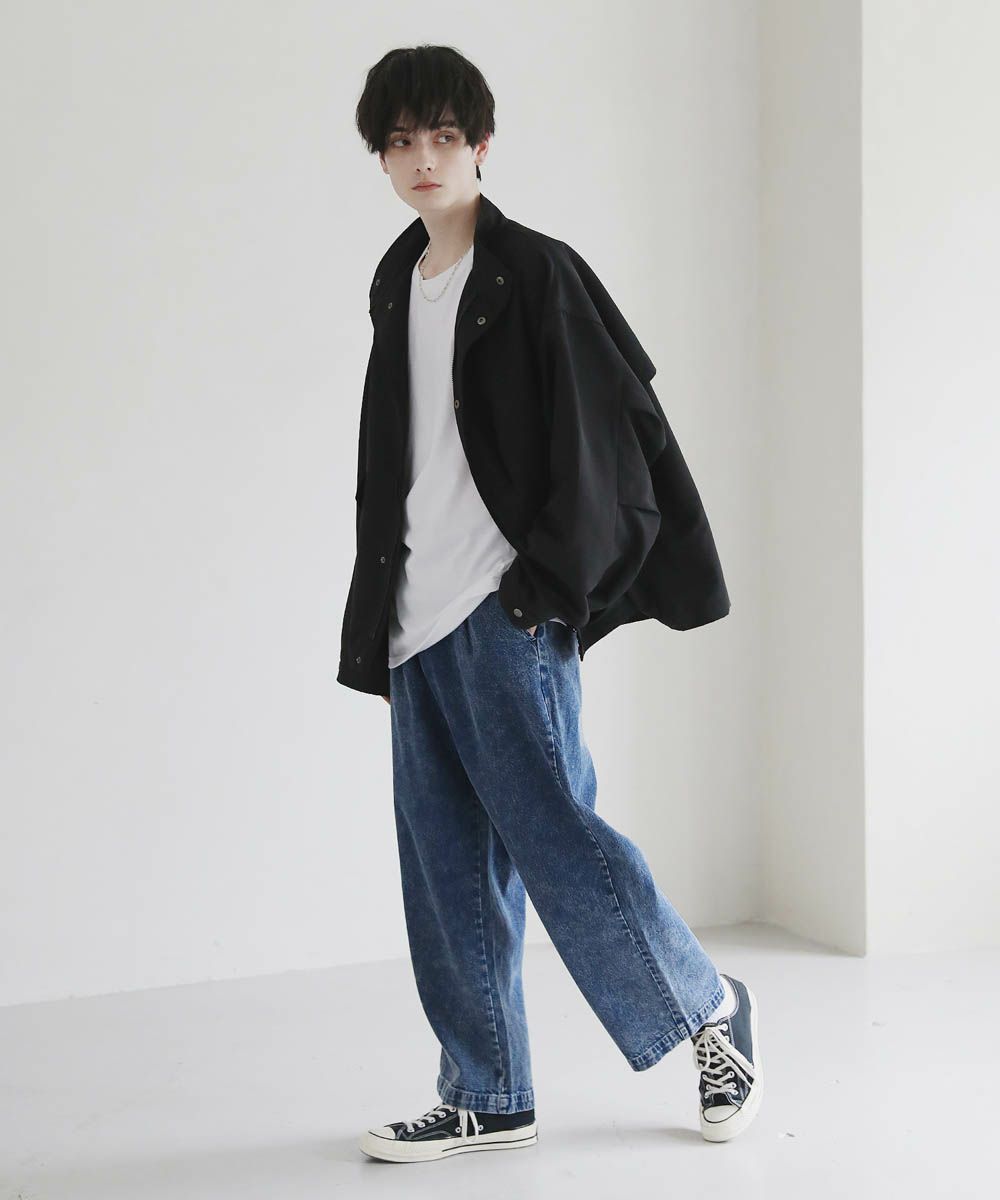 オーバーサイズのニットやスウェット、シャツやジャケットなどトップスを選ばず合わせられる万能さが魅力。トップスをタックインしたスタイルもシルエットがキレイに決まります。