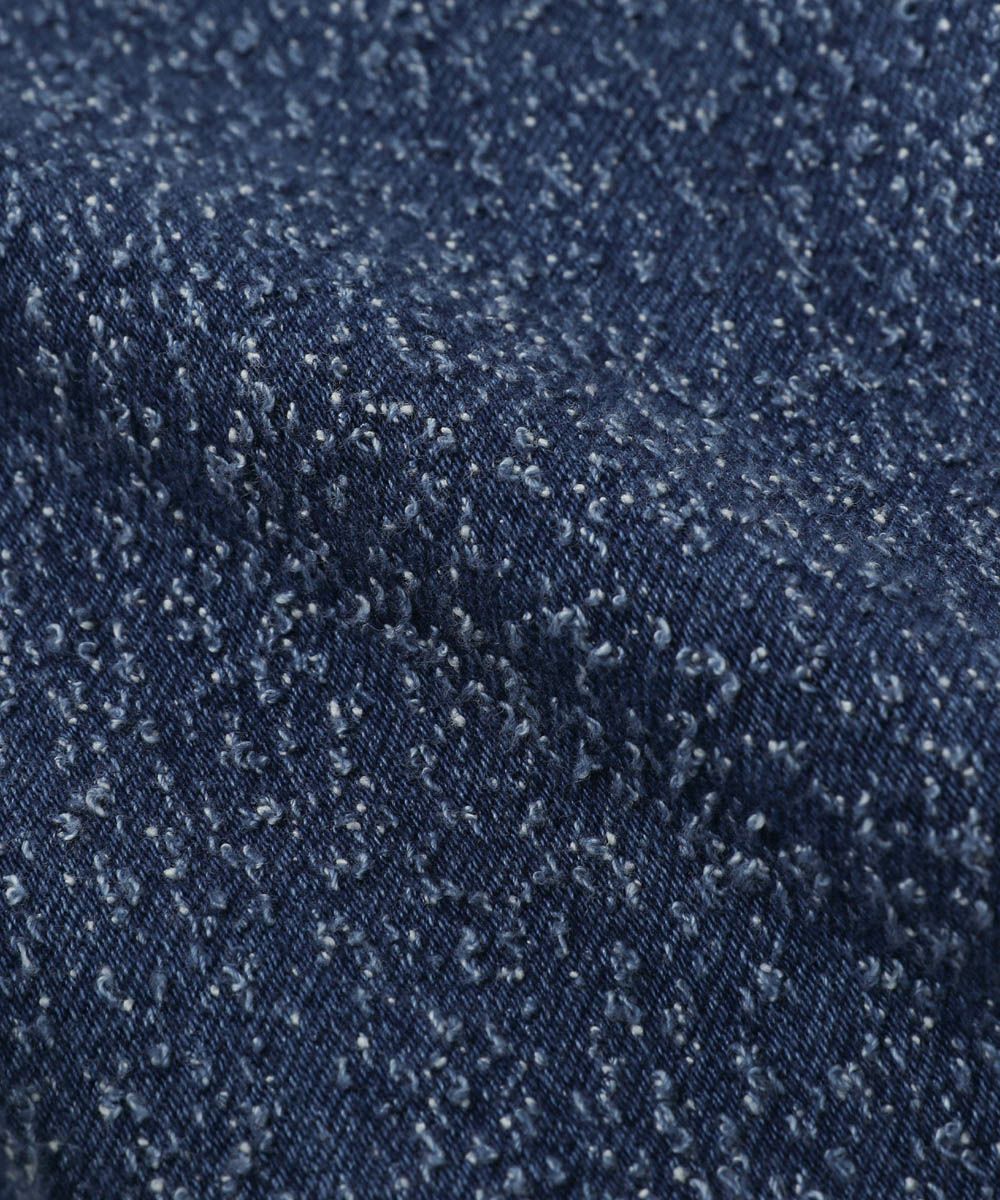 程よく厚みのあるデニム素材を使用しているため、着用時に立体的なシルエットに魅せてくれます。ややストレッチ性があり、動きやすく楽な穿き心地です。