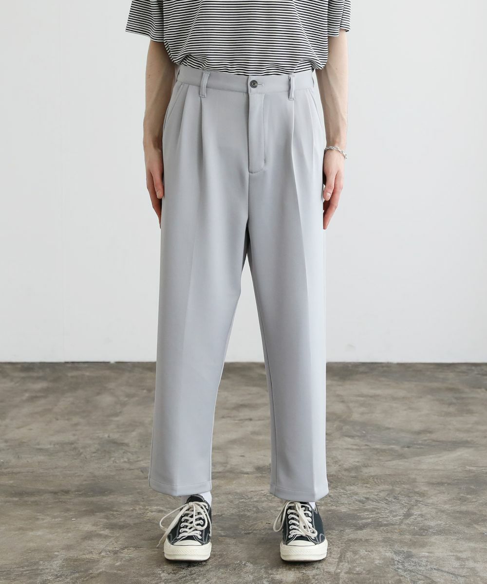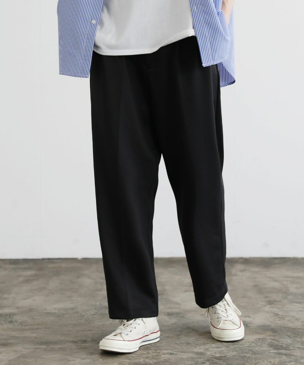 ポンチセンタープレスリラックスワイドスラックス パンツ