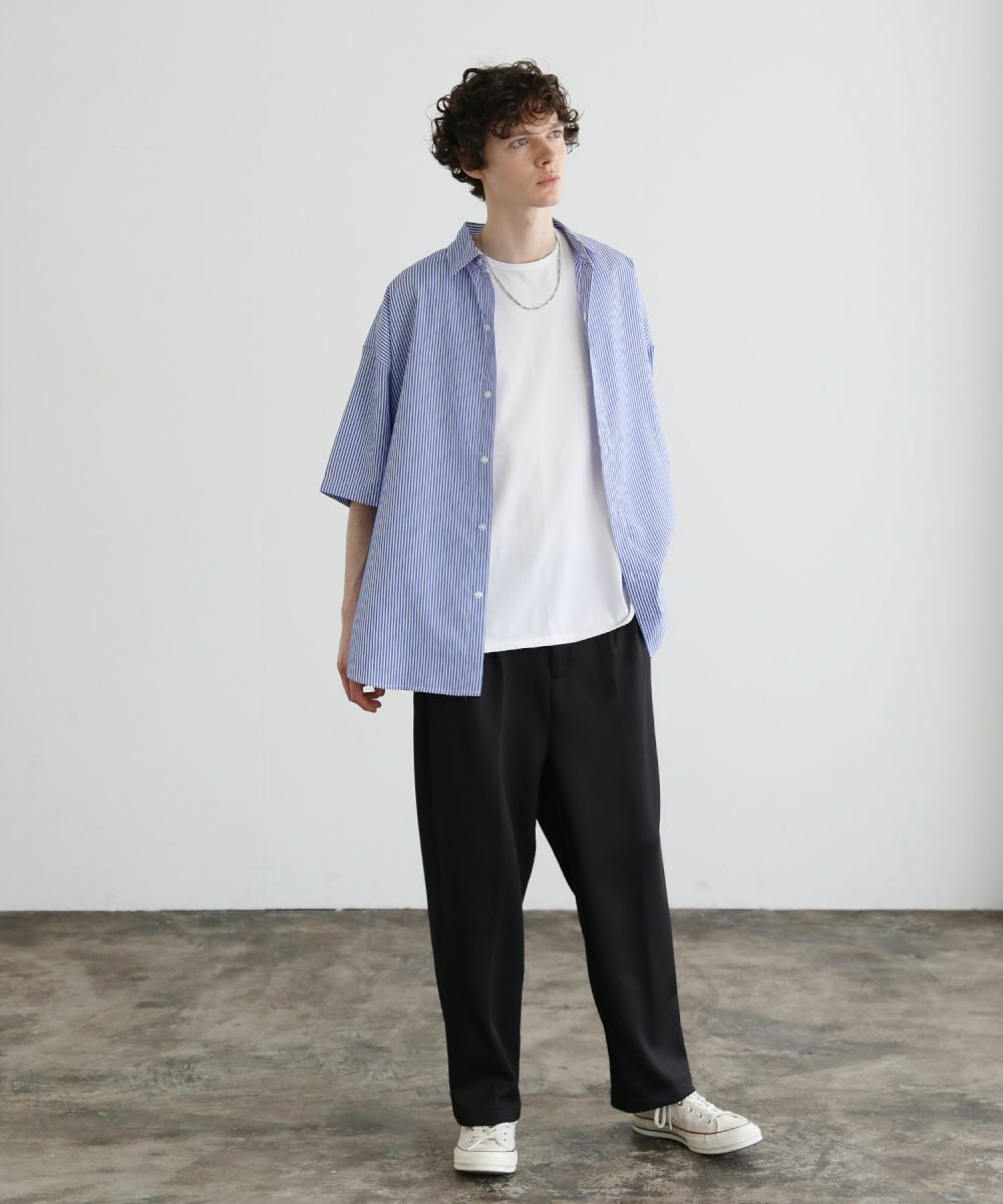 オーバーサイズのカットソーやシャツ、ハーフジップのプルオーバーなどトップスを選ばずオールシーズン活躍します。シンプルなデザインなので合わせるアイテム次第で様々な着こなしを楽しめるのが魅力です。