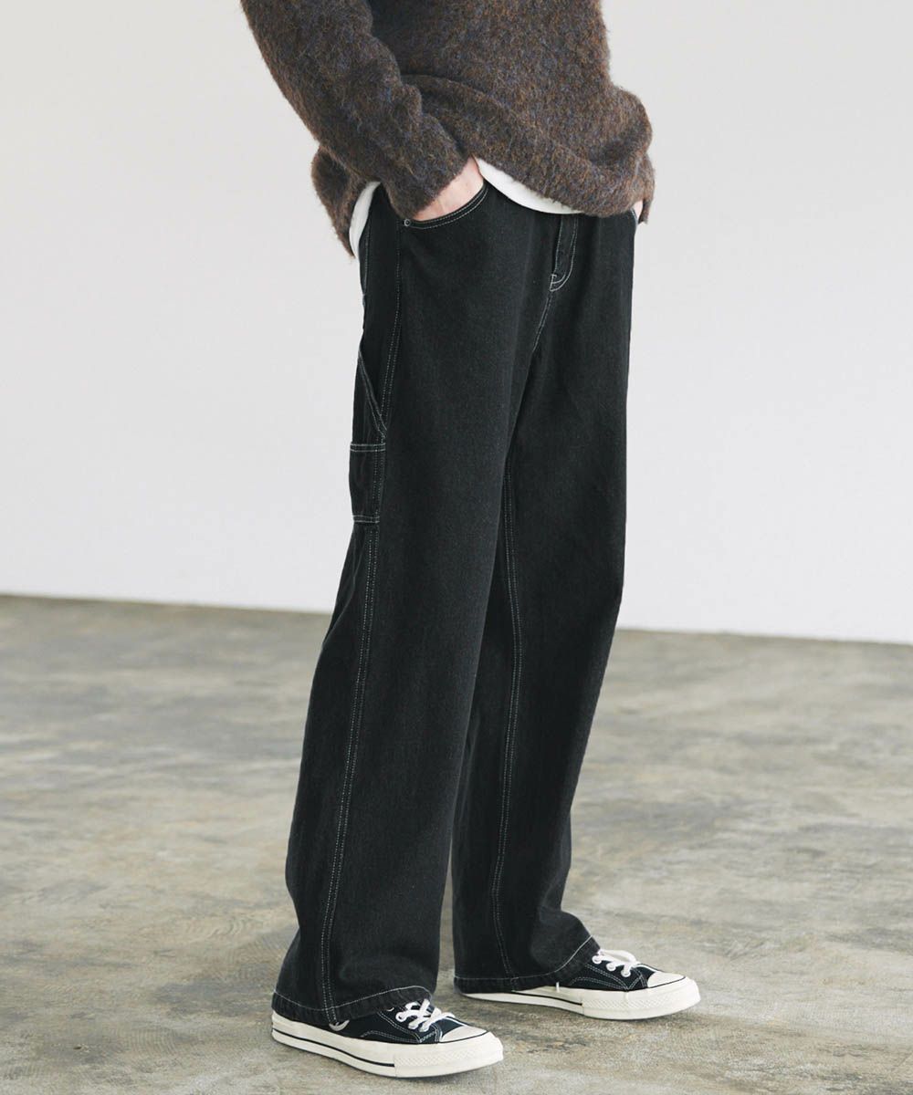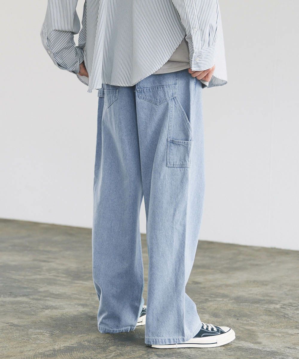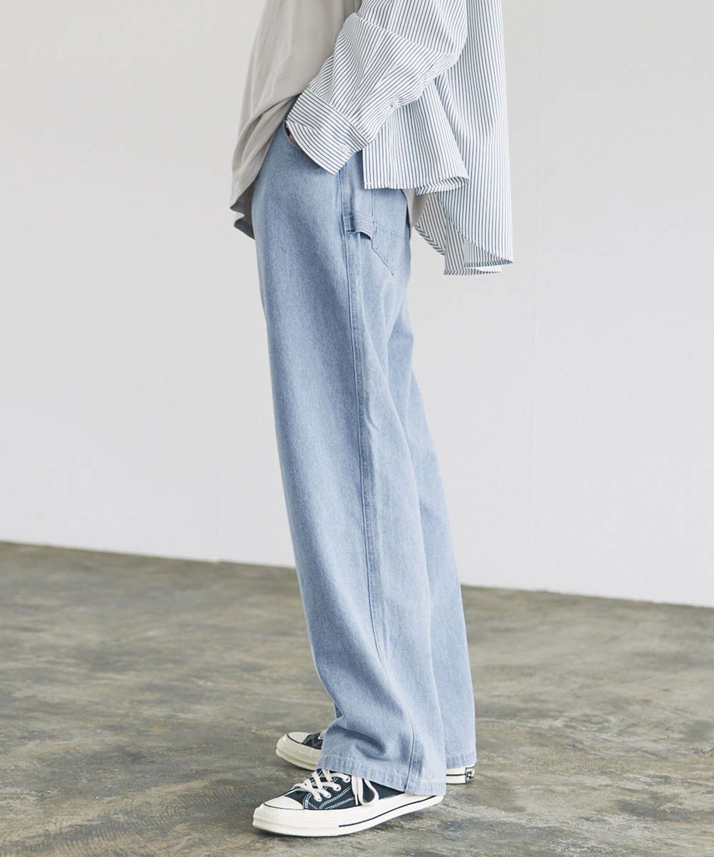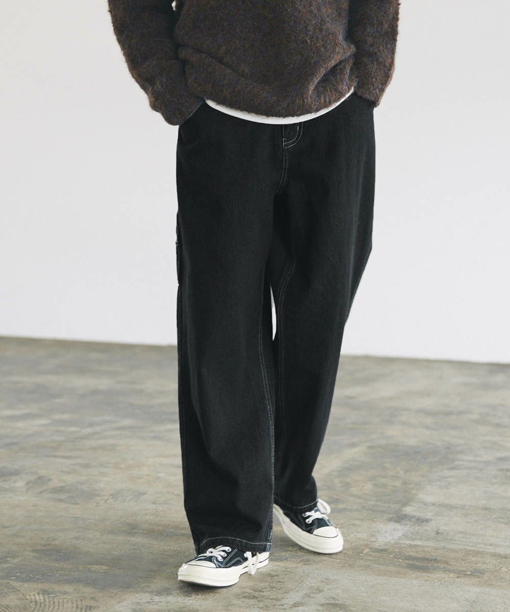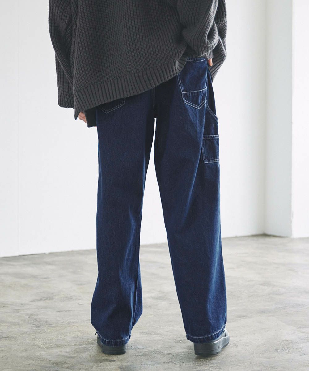 ワークスタイルのデザインを落とし込んだルーズペインターパンツ。太すぎないルーズめのシルエットでコーディネートに取り入れやすく、穿くだけでこなれ感をプラスしてくれます。サイドポケットやハンマーループ、大きめのバックポケットなど、ワーク感のあるデザインがアクセントに。馴染みの良い綿100%の10ozデニム/ツイル生地を使用しており、オールシーズンでの着用が可能です。日々のコーディネートに新鮮なアクセントを加えてくれるおすすめアイテムです。