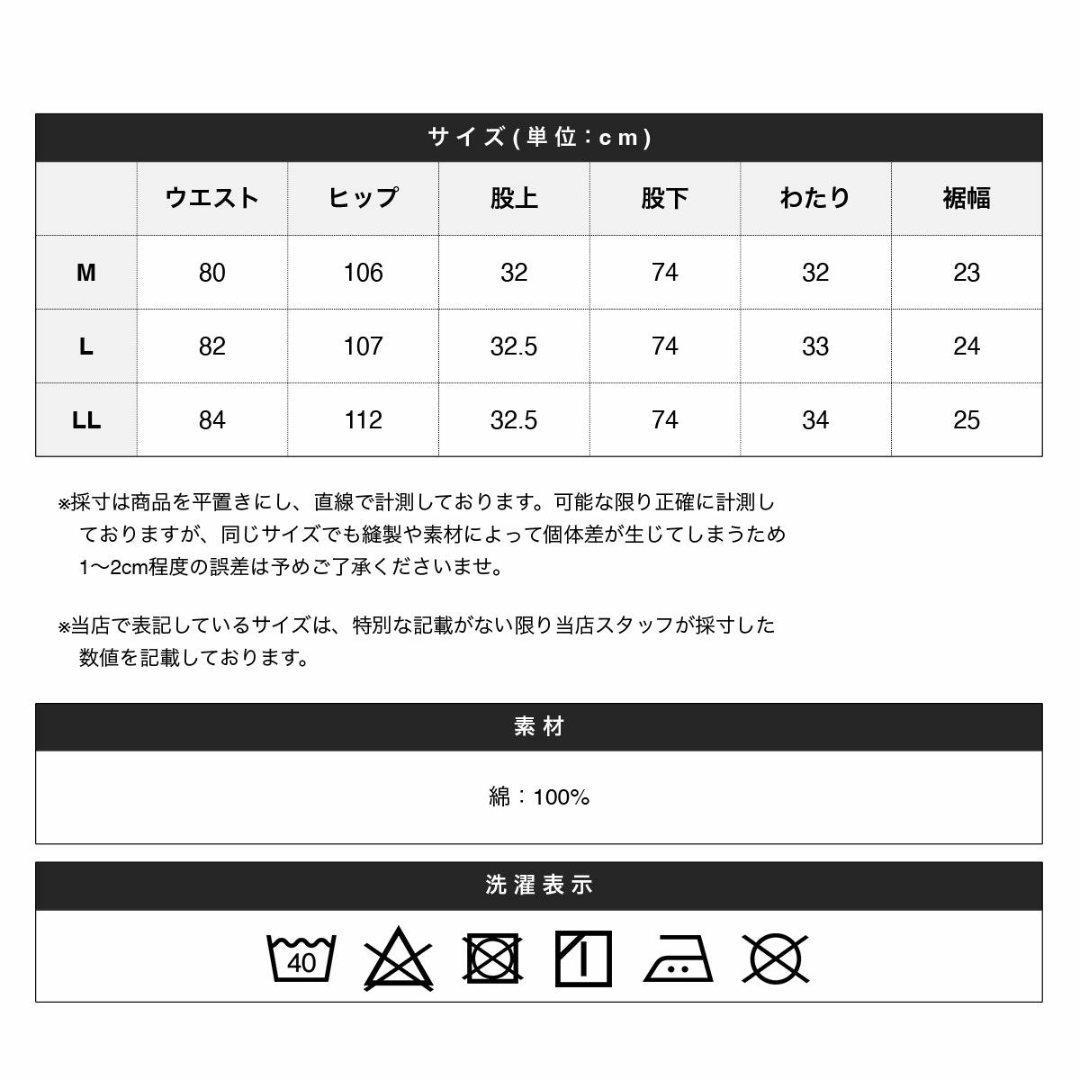 ※商品特性、縫製や素材により同サイズでも、若干の誤差が生じてしまうことを予めご了承ください。