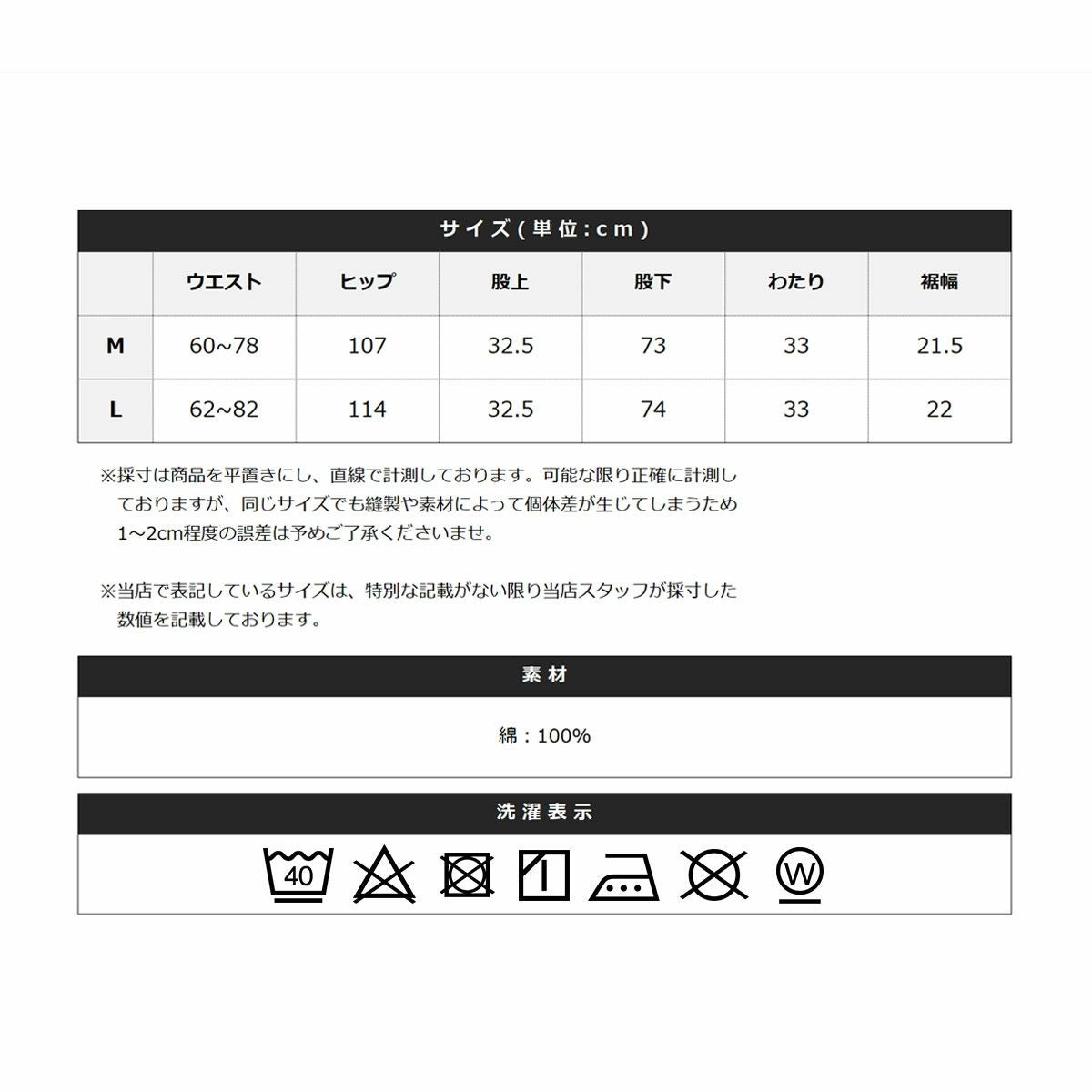 ※商品特性、縫製や素材により同サイズでも、若干の誤差が生じてしまうことを予めご了承ください。