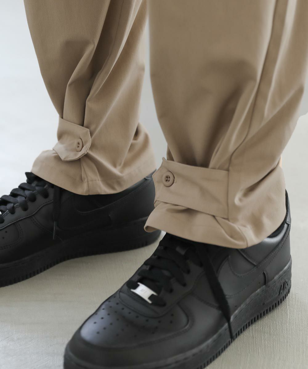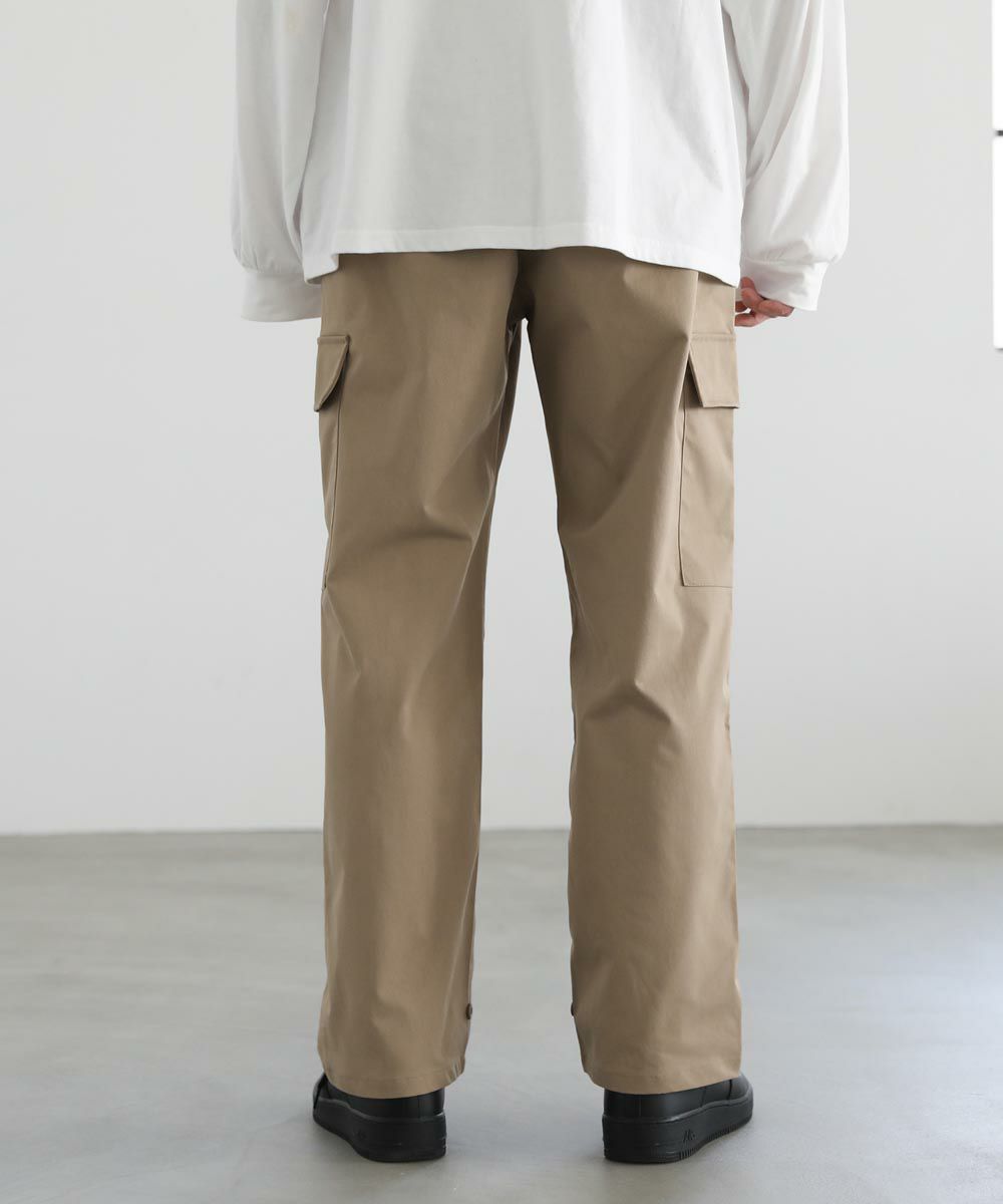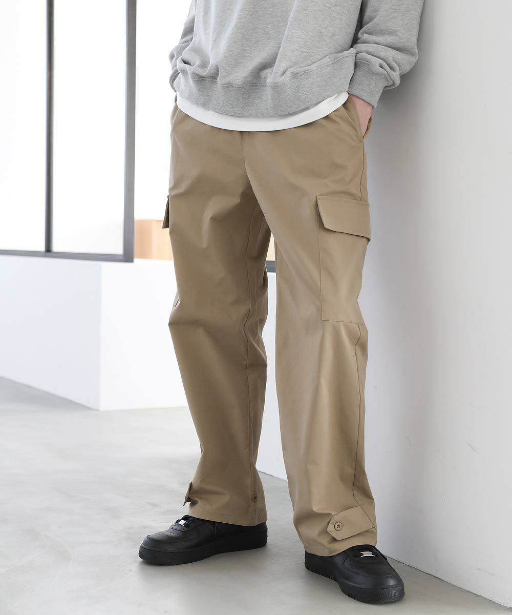 カジュアルからキレイめまで幅広いスタイルにマッチするストレートシルエットのカーゴパンツ。フランス軍が採用していたM-47をベースに、今のトレンドに合うセミワイドシルエットにアレンジ。リラックス感がありつつも太すぎない絶妙なワイドシルエットで、キレイめなアイテムを合わせても決まる一本です。大きめのフラップポケットや裾のアジャスター、すとんと落ちるストレートシルエットなどM-47らしいディティールを再現。ウエストはゴム&紐で調節できるイージー仕様になっており、ベルト要らずで着用できる楽さも魅力。また裾のアジャスターを調整することでシルエットの変化を楽しむことも可能です。