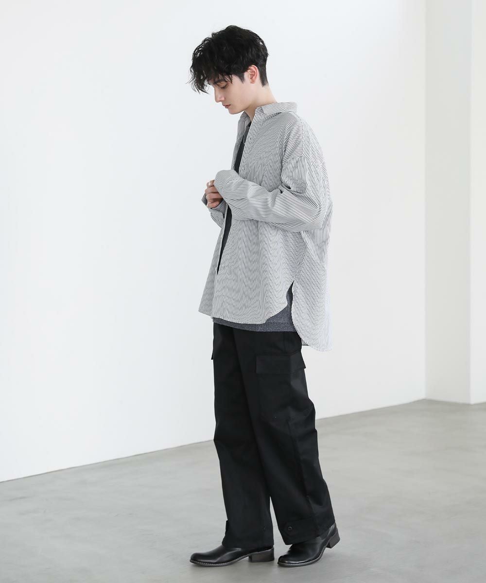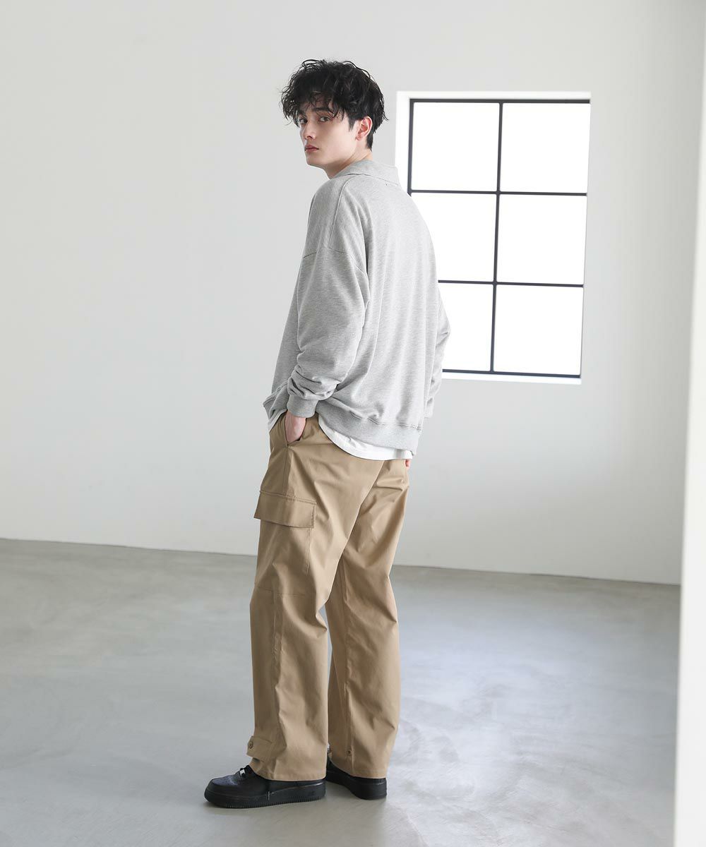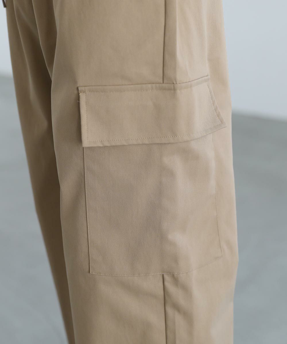 カジュアルからキレイめまで幅広いスタイルにマッチするストレートシルエットのカーゴパンツ。フランス軍が採用していたM-47をベースに、今のトレンドに合うセミワイドシルエットにアレンジ。リラックス感がありつつも太すぎない絶妙なワイドシルエットで、キレイめなアイテムを合わせても決まる一本です。大きめのフラップポケットや裾のアジャスター、すとんと落ちるストレートシルエットなどM-47らしいディティールを再現。ウエストはゴム&紐で調節できるイージー仕様になっており、ベルト要らずで着用できる楽さも魅力。また裾のアジャスターを調整することでシルエットの変化を楽しむことも可能です。