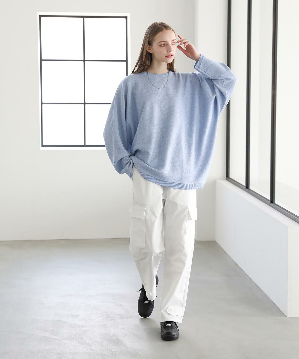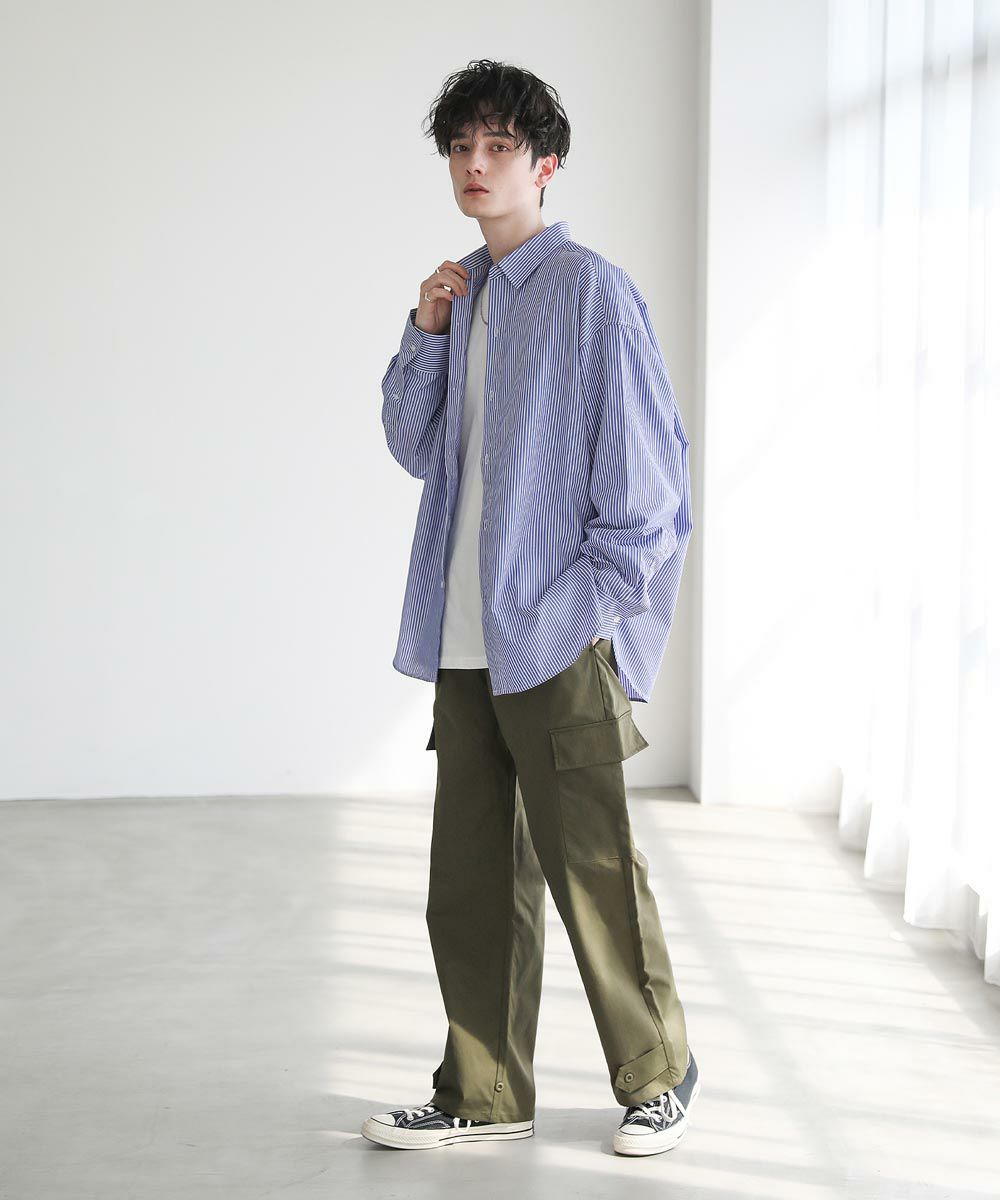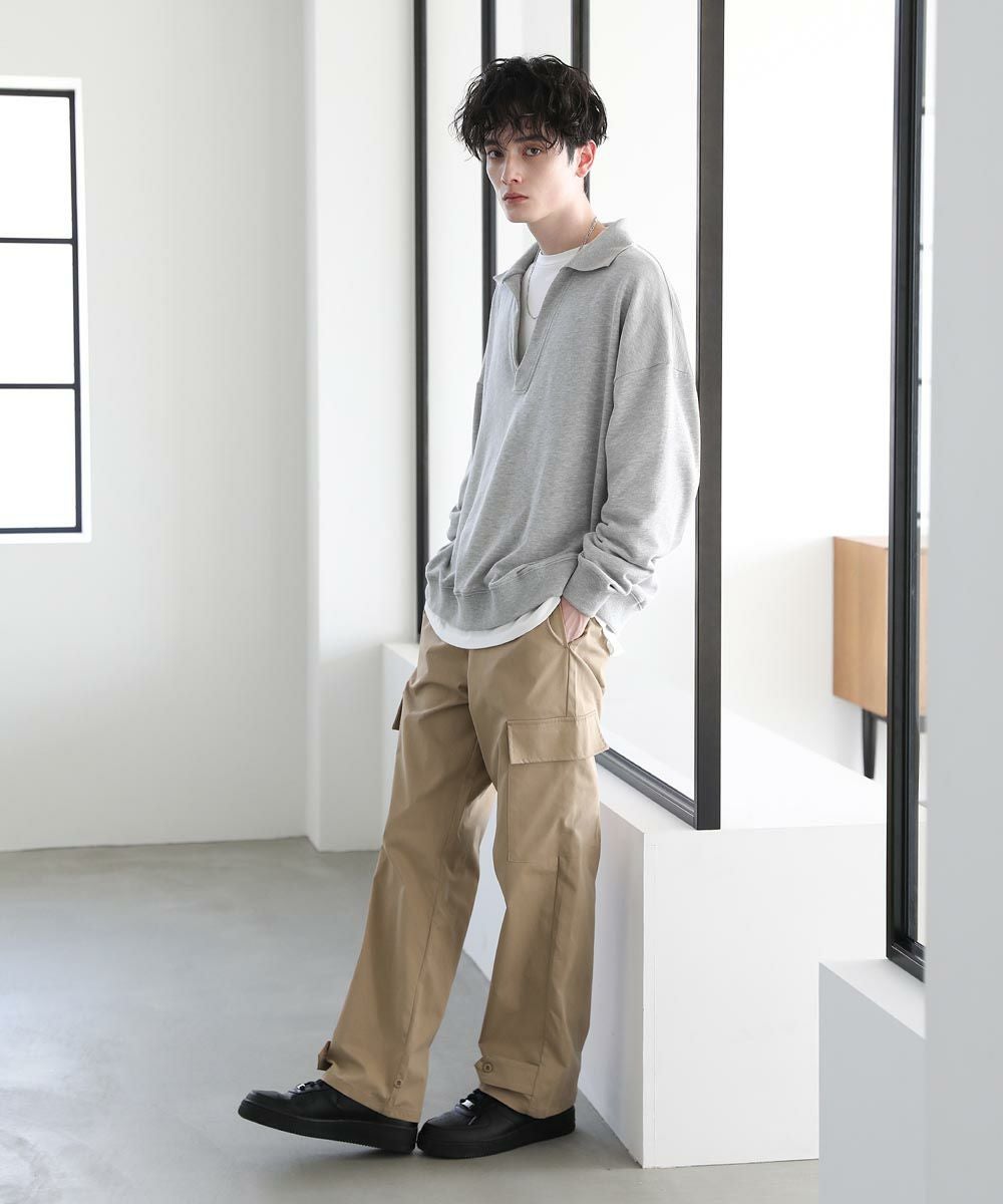 合わせるトップスやシューズを選ばず着まわせる万能さが魅力。ブロードシャツを合わせてキレイめに、ニットやスウェットなどカジュアルなスタイルにも。ルーズシルエットのトップスを合わせるとトレンド感のあるスタイルが完成します。合わせるシューズはスニーカーはもちろんのこと、ブーツを合わせた着こなしもおすすめです。