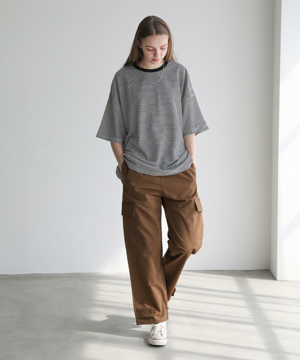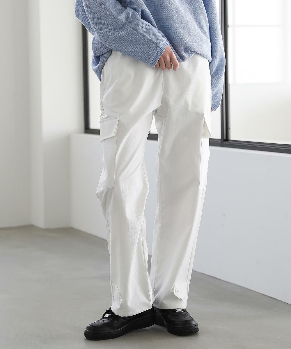 定番のオリーブをはじめ、着回しやすい万能カラーのブラック、ニュアンスのあるベージュ、モカ、抜け感のあるホワイト、柔らかい色味が春夏に生えるサックスの6カラー展開。SからXLサイズの4サイズ展開で幅広い体型の方に着用いただけます。女性にもおすすめなユニセックスアイテム。コーディネートにこなれ感をプラスしてくれる今季おすすめのボトムです。