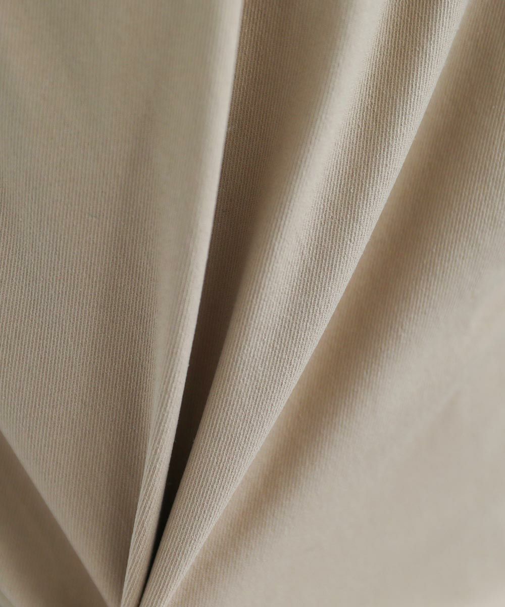 程よい厚みがありつつも柔らかなコットンポリエステルツイル生地を採用。程よくハリがあるので着用時に立体的なシルエットに見せてくれます。ストレスのない楽な穿き心地でオールシーズン着用していただけます。