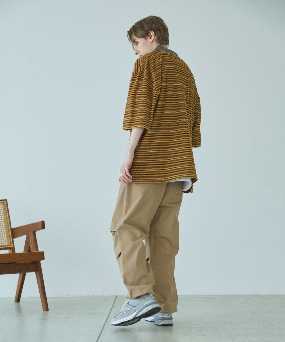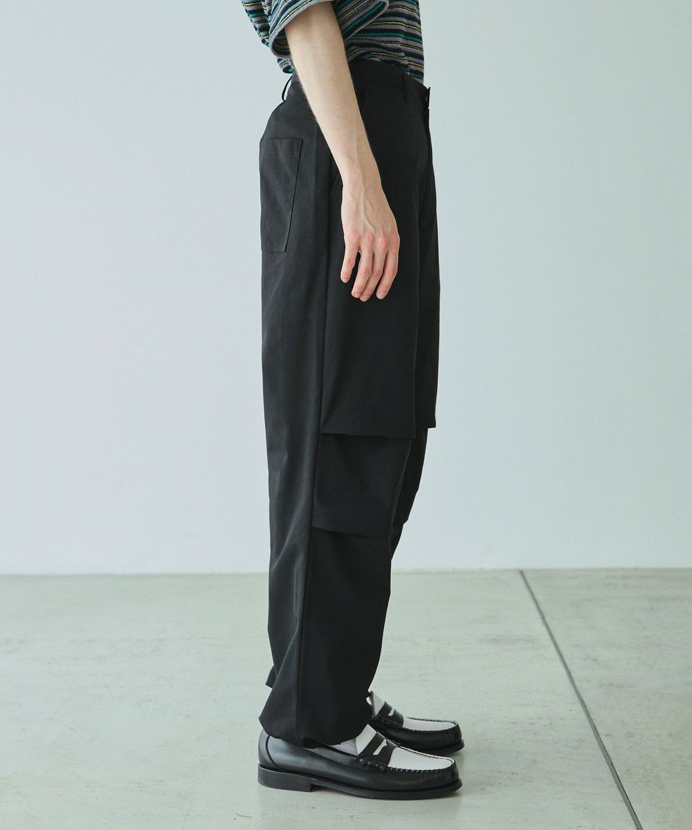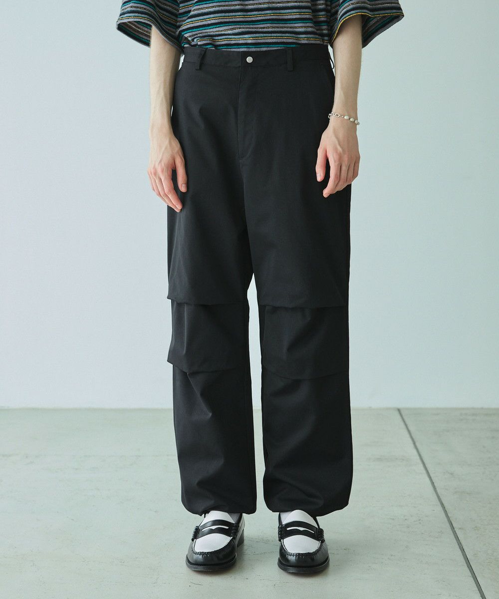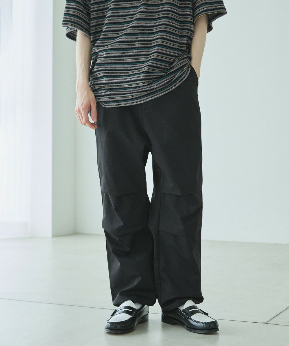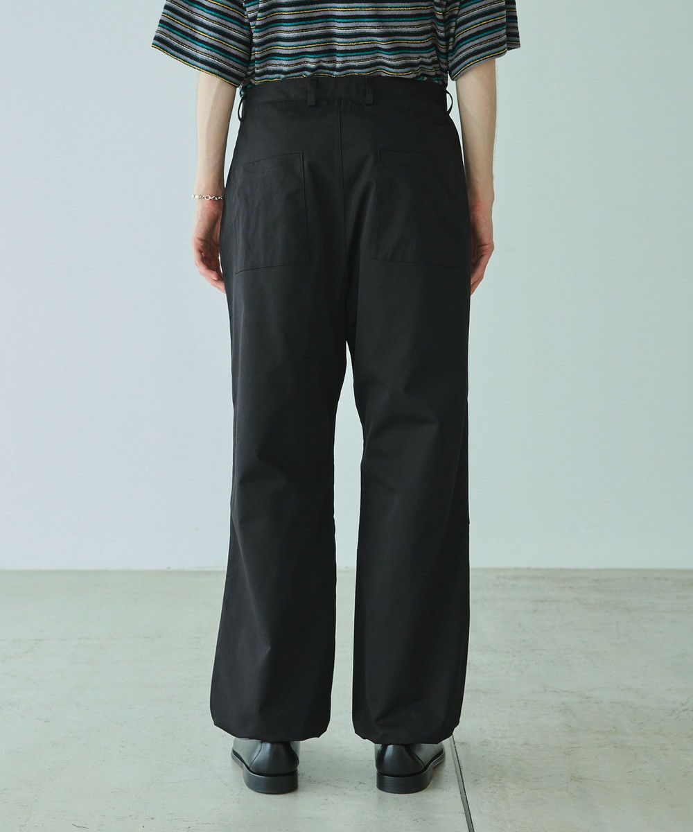 ミリタリーのオーバーパンツをモチーフにした上品なコーデにも馴染むパンツ。足元まですっきりとしたラインで穿けるので、カジュアルになり過ぎない絶妙なバランスのアイテムです。アウトドアらしい裾のドローコードや膝のアクションプリーツなどのテイストはそのままに、タウンユースでも合わせやすいようアップデートしました。ブラック、アイボリー、カーキ、ベージュのスタイリングに合わせやすいカラー展開。いつものボトムをスタイルチェンジするだけで、ひと味違った大人カジュアルを楽しめます。