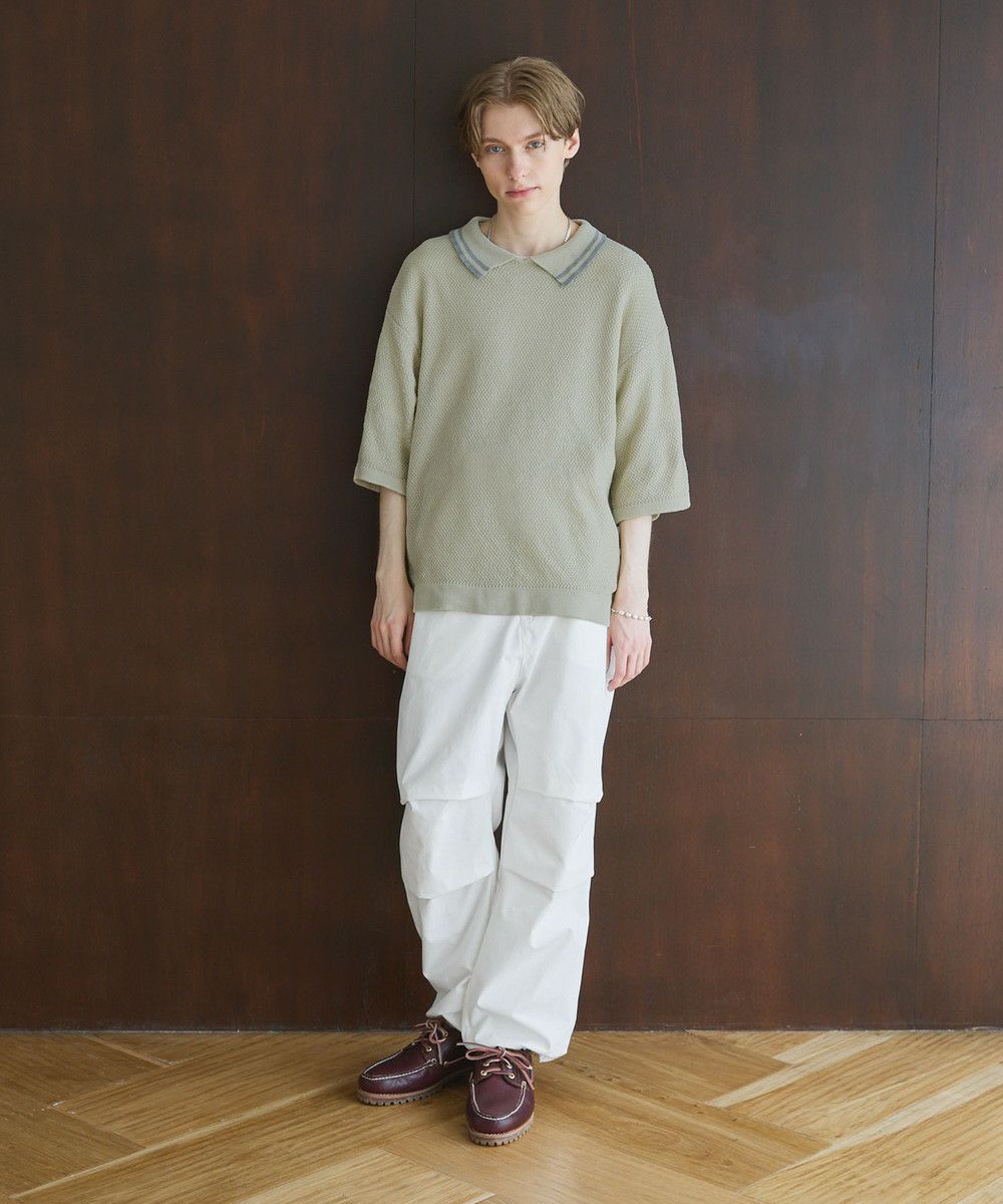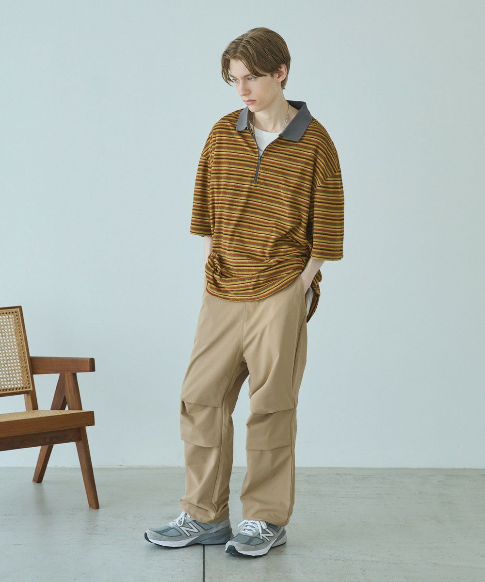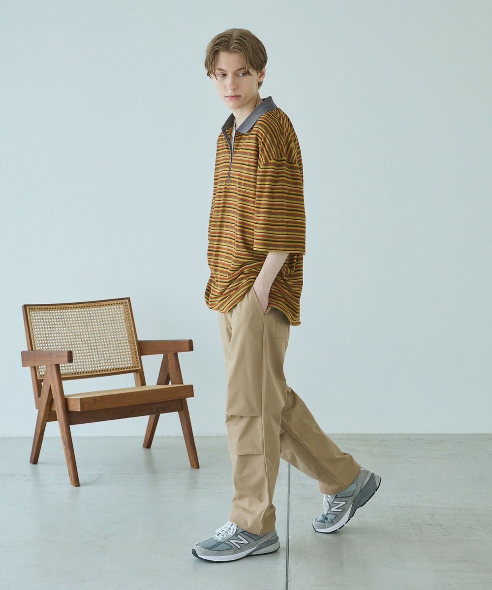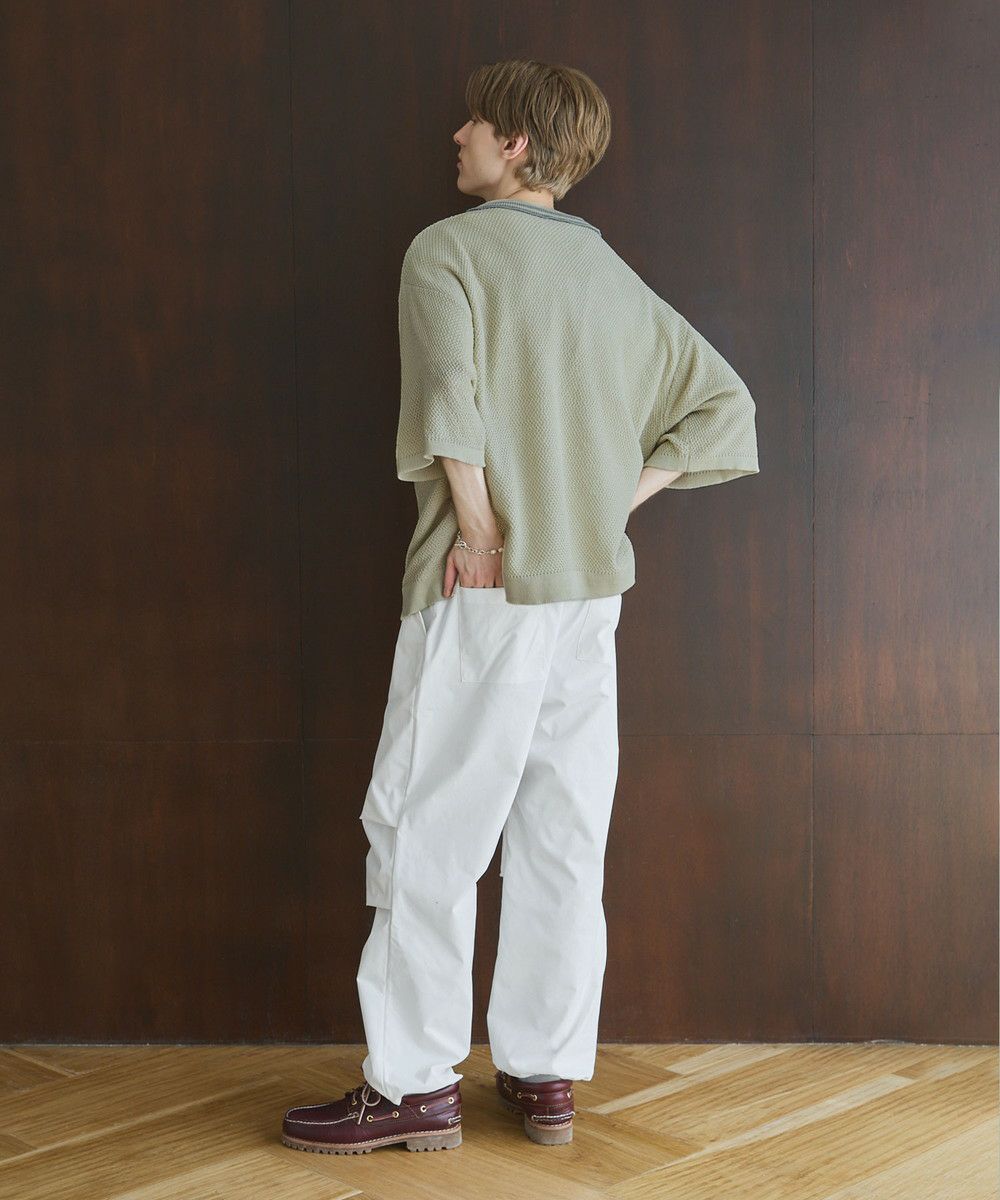 ポロシャツやカットソー、Tシャツなどを合わせるラフなコーディネートがおススメです。その日のスタイリングや気分で、裾紐を絞ってシルエットの変化もお楽しみいただけます。シンプルなアイテムなので、幅広いトップスと相性が良い1本。合わせるだけで今っぽい雰囲気にまとまる、大人カジュアルスタイルに重宝するアイテムです。