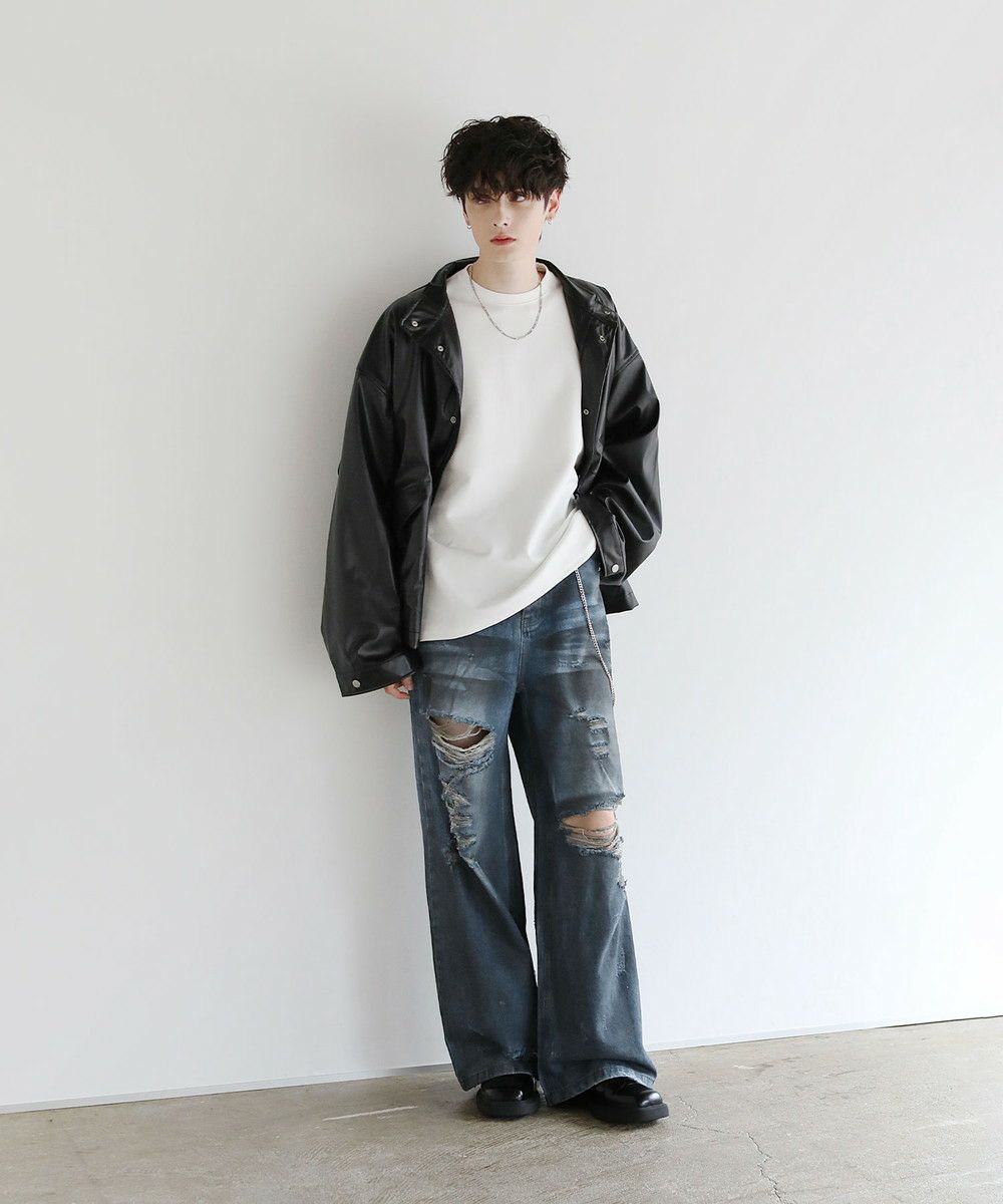 Buyer’sselect/ダメージ加工/サイドカッティングワイドシルエットストレートデニム