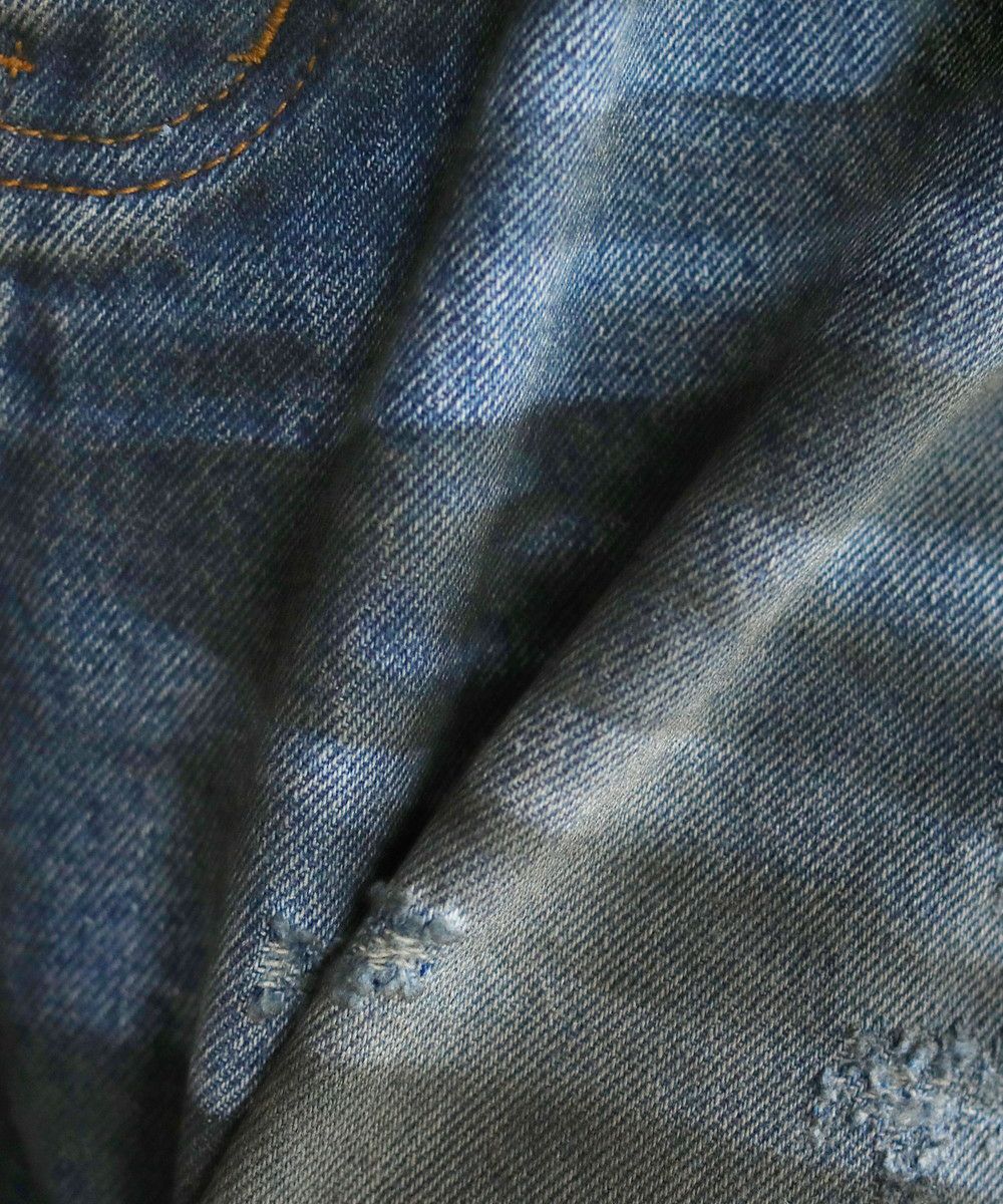 ヴィンテージ加工クラッシュワイドデニム