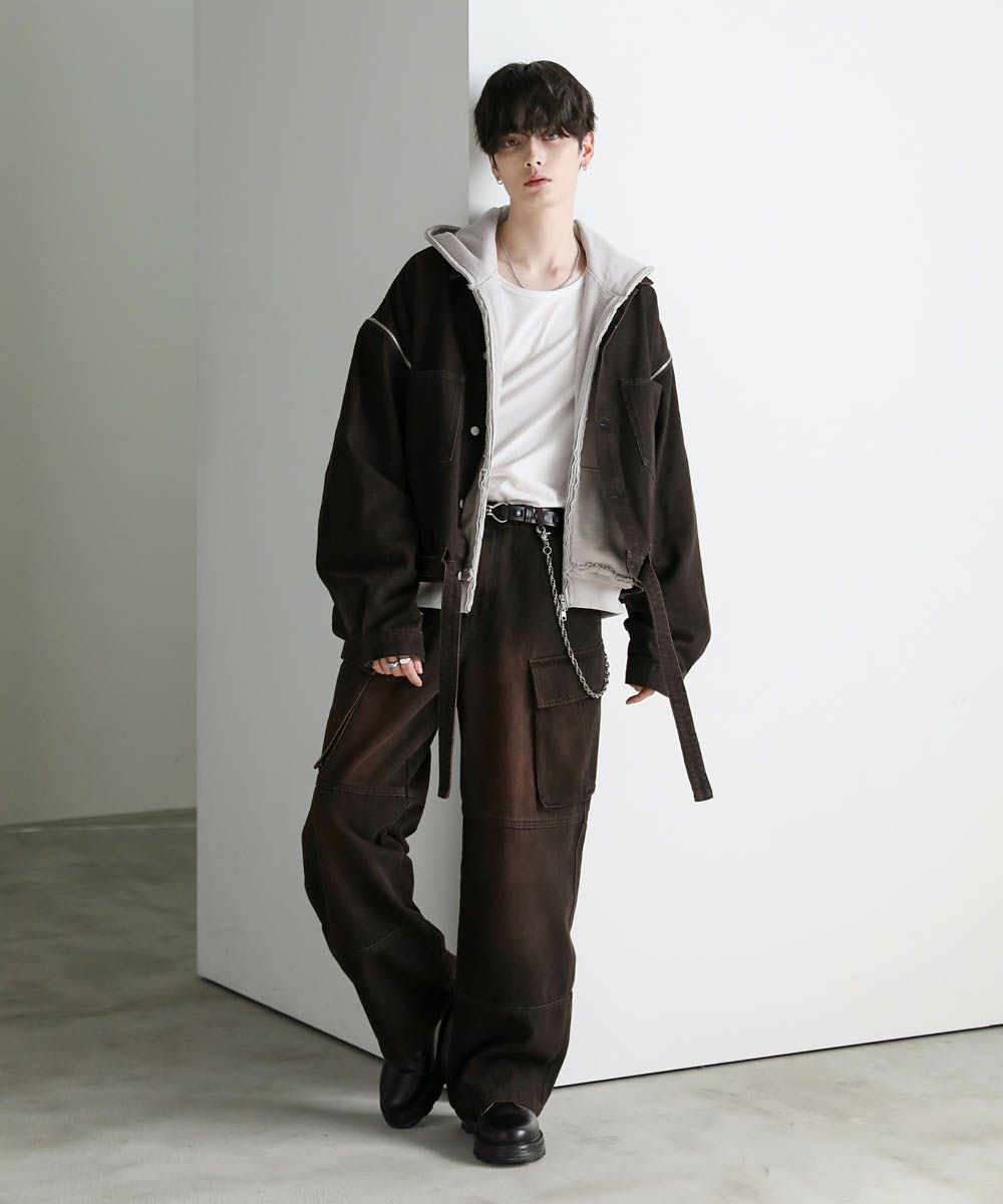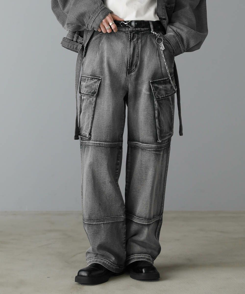 【セットアップ可能】ウォッシュ加工カーゴデニムパンツ