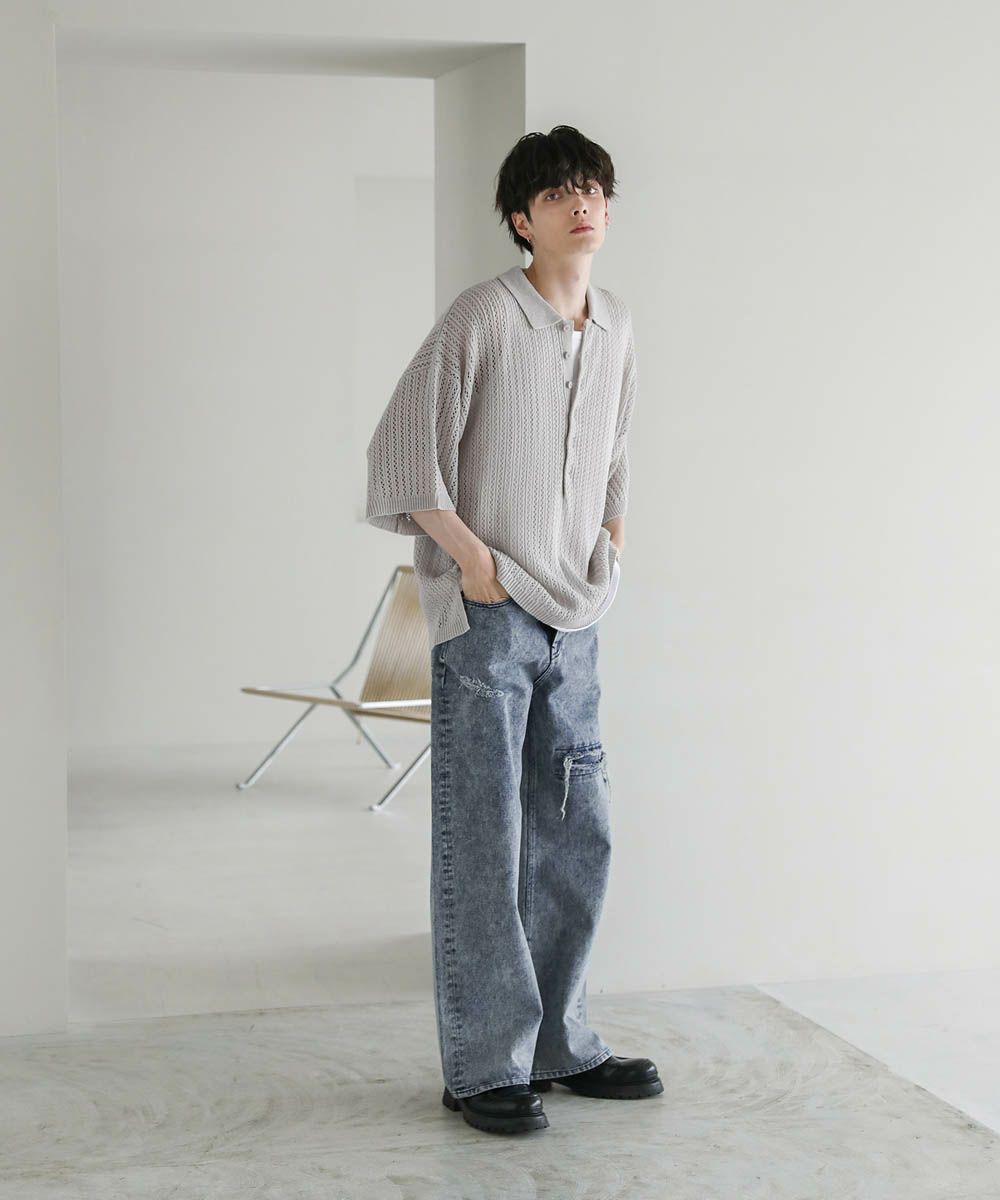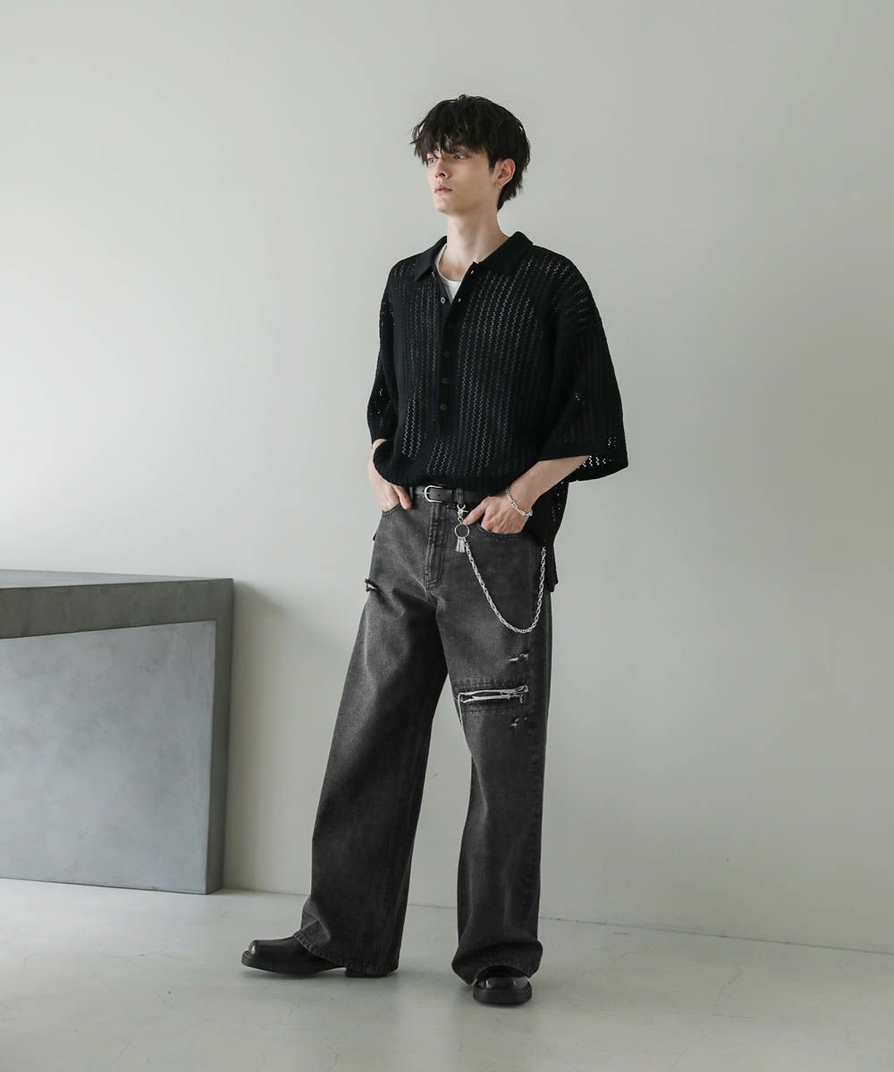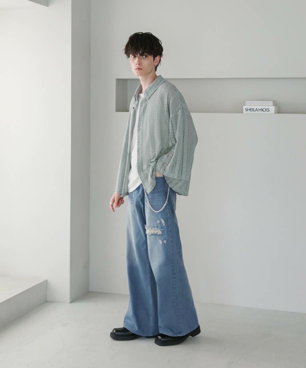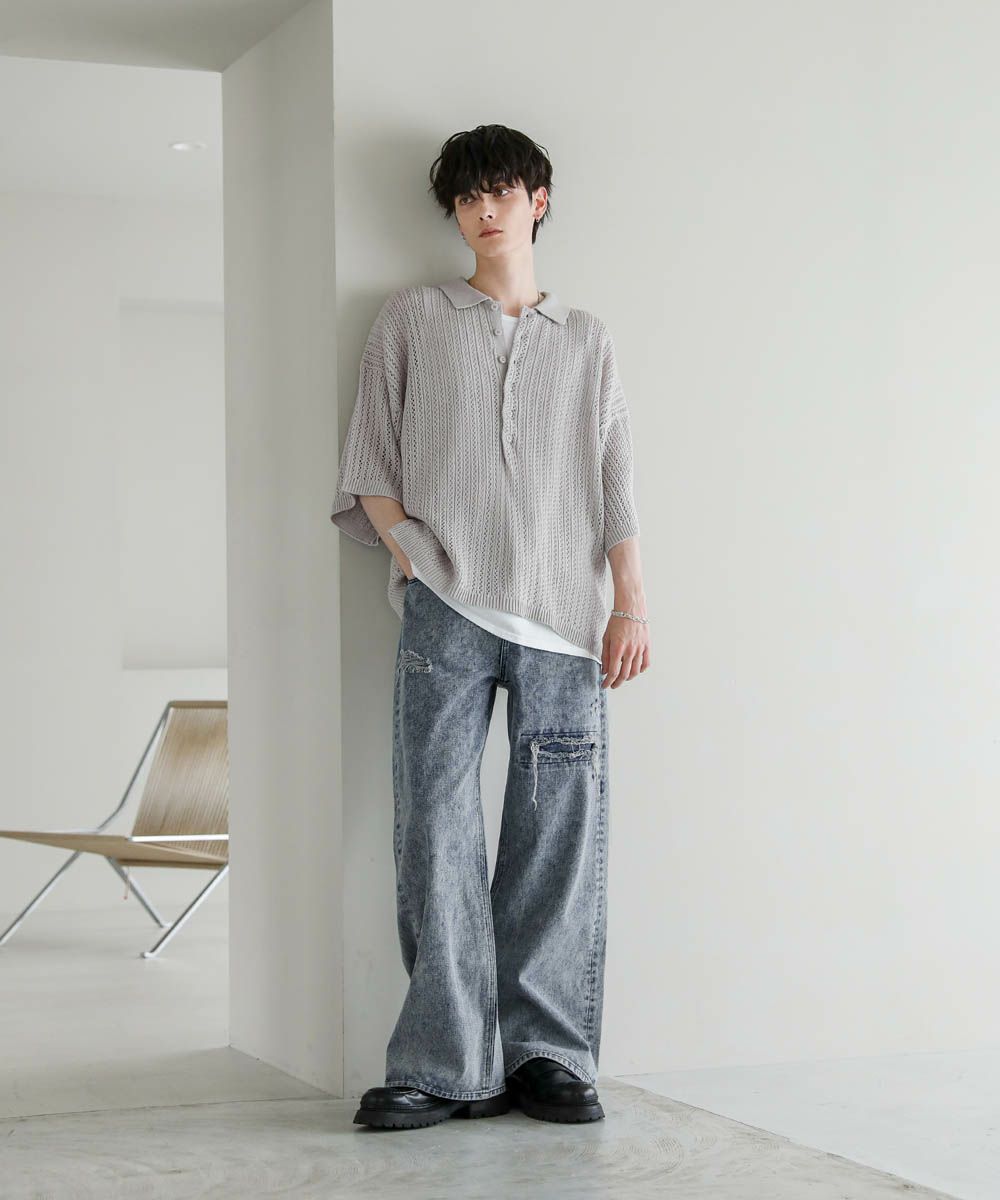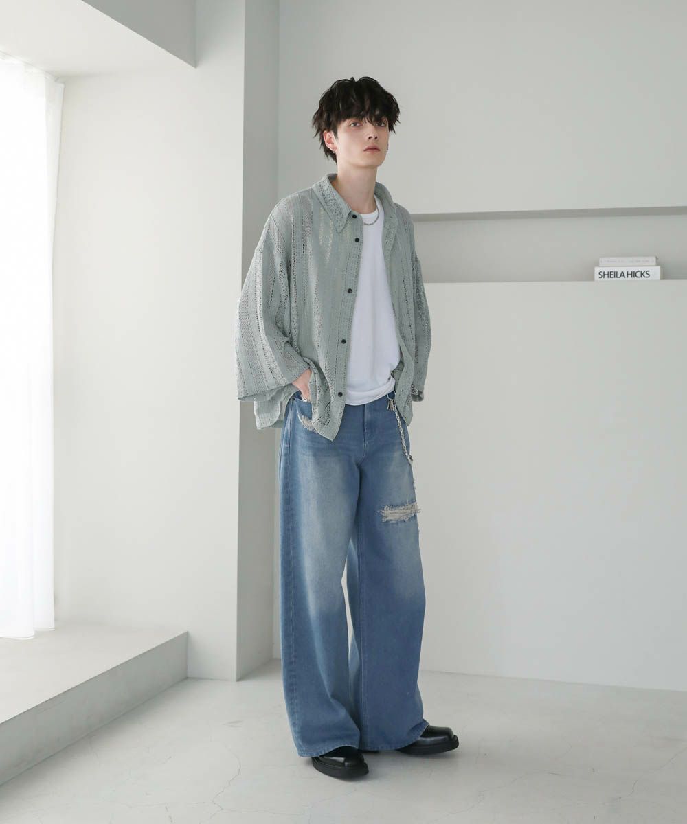 ダメージ加工がアクセントになるため、シンプルなカットソーと合わせるだけでも今年らしい着こなしに。シャツやカットソー、スウェットやニットなど、合わせるアイテムを変えることで通年活躍するアイテムです。足元は、ボリュームのあるスニーカーやサンダル、またブーツやレザーシューズまで、幅広いシューズと相性抜群です。