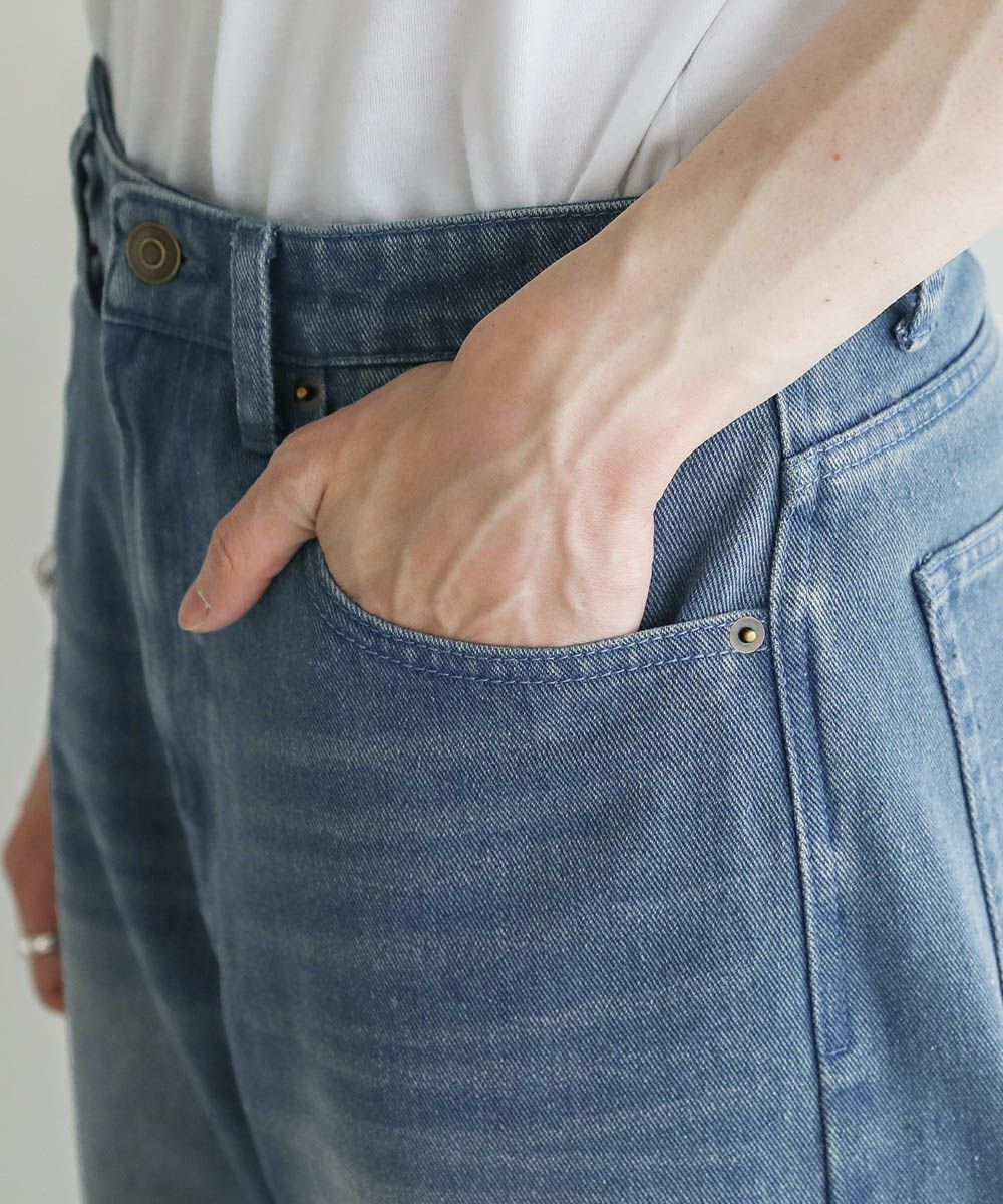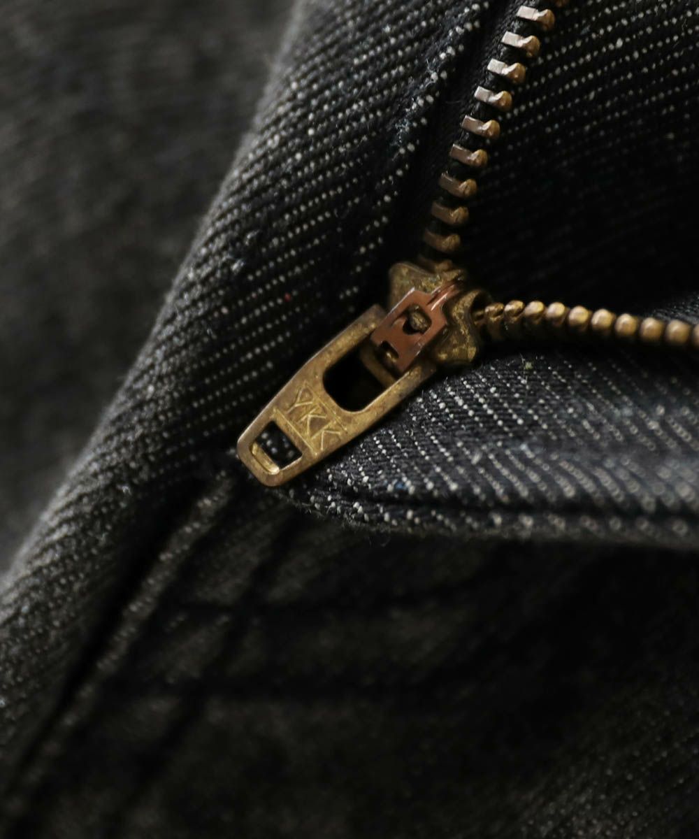 分厚すぎず薄すぎない12.3ozのデニム生地を使用。カラーによって異なる加工を施しており、味のあるヴィンテージライクな雰囲気をお楽しみいただけます。