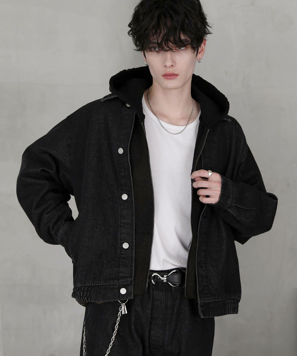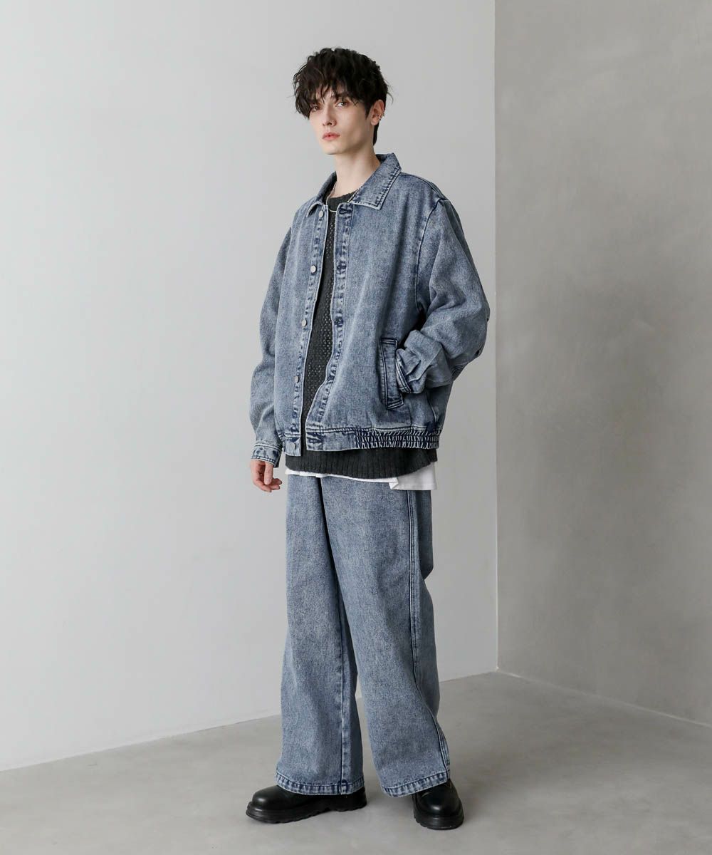 【セットアップ 2点セット】ショートデニムブルゾン+ワイドバギーオーバーパンツ