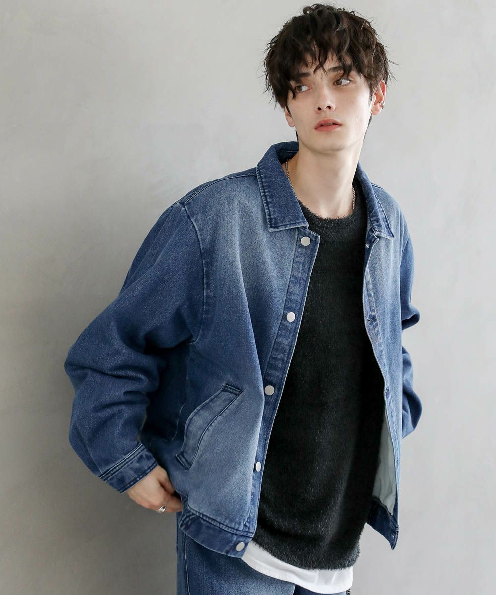 デニムブルゾンはビンテージのような空気感を持たせつつ、シルエットを現代風にアレンジし、クリーンな雰囲気の漂う1着に。身幅はワイドに、また着丈はトレンドのショート丈を採用しており、バランス良く着こなせます。大きめの袖はダーツ入りでボリューム感があり、こなれたシルエットに見せてくれます。