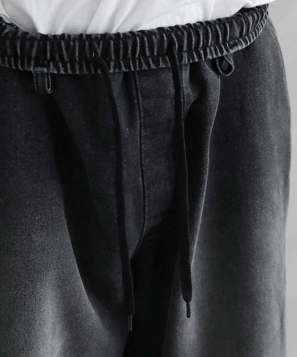 ワイドバギーオーバーパンツは、ストンと落ちるストレートシルエットを採用。ウエストは全周ゴム&紐付きでベルト要らずで着用が可能。また、裾はドローコード付きなので、絞ることでシルエットの変化もお楽しみいただけます。