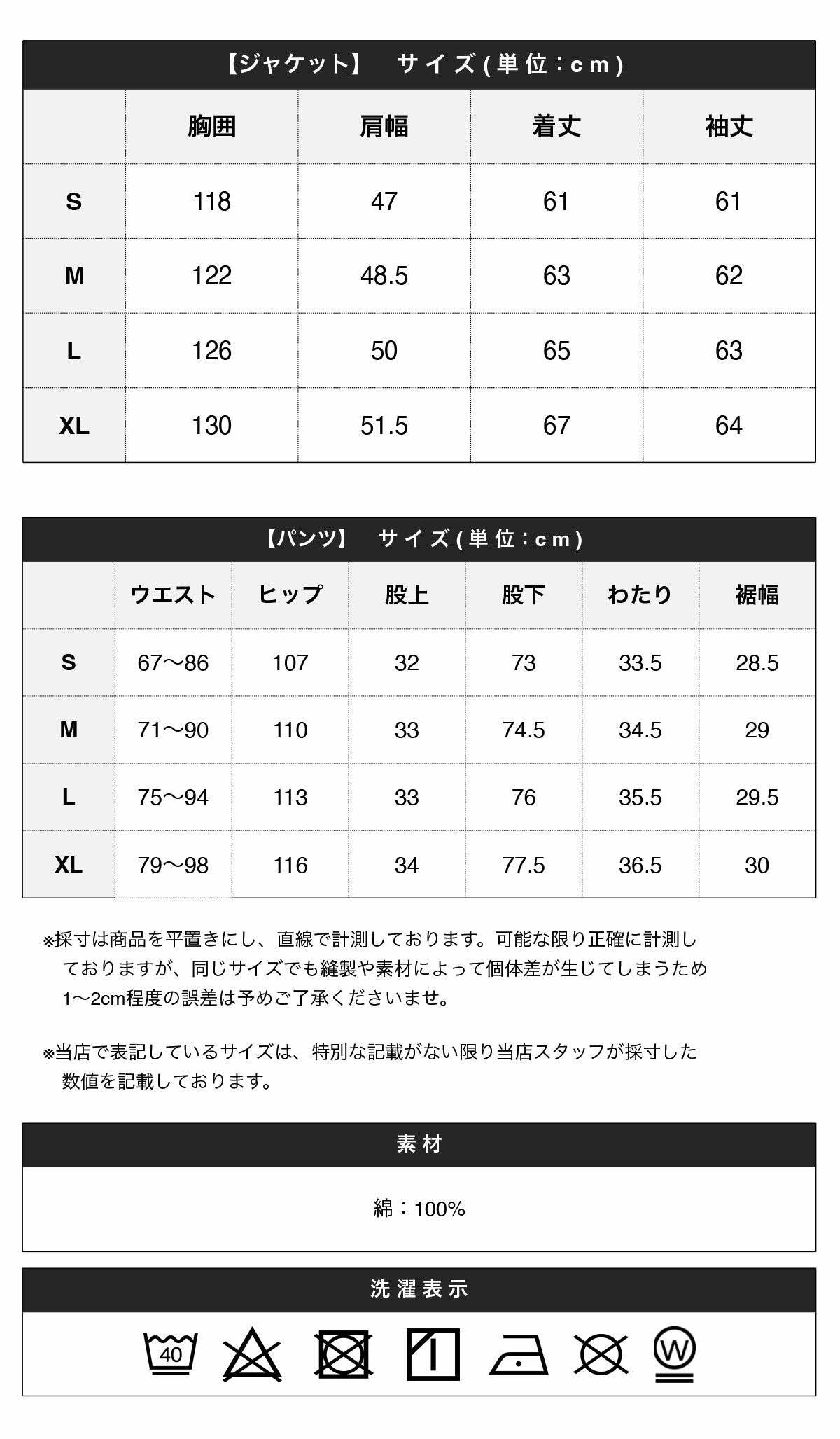 ※商品特性、縫製や素材により同サイズでも、若干の誤差が生じてしまうことを予めご了承ください。