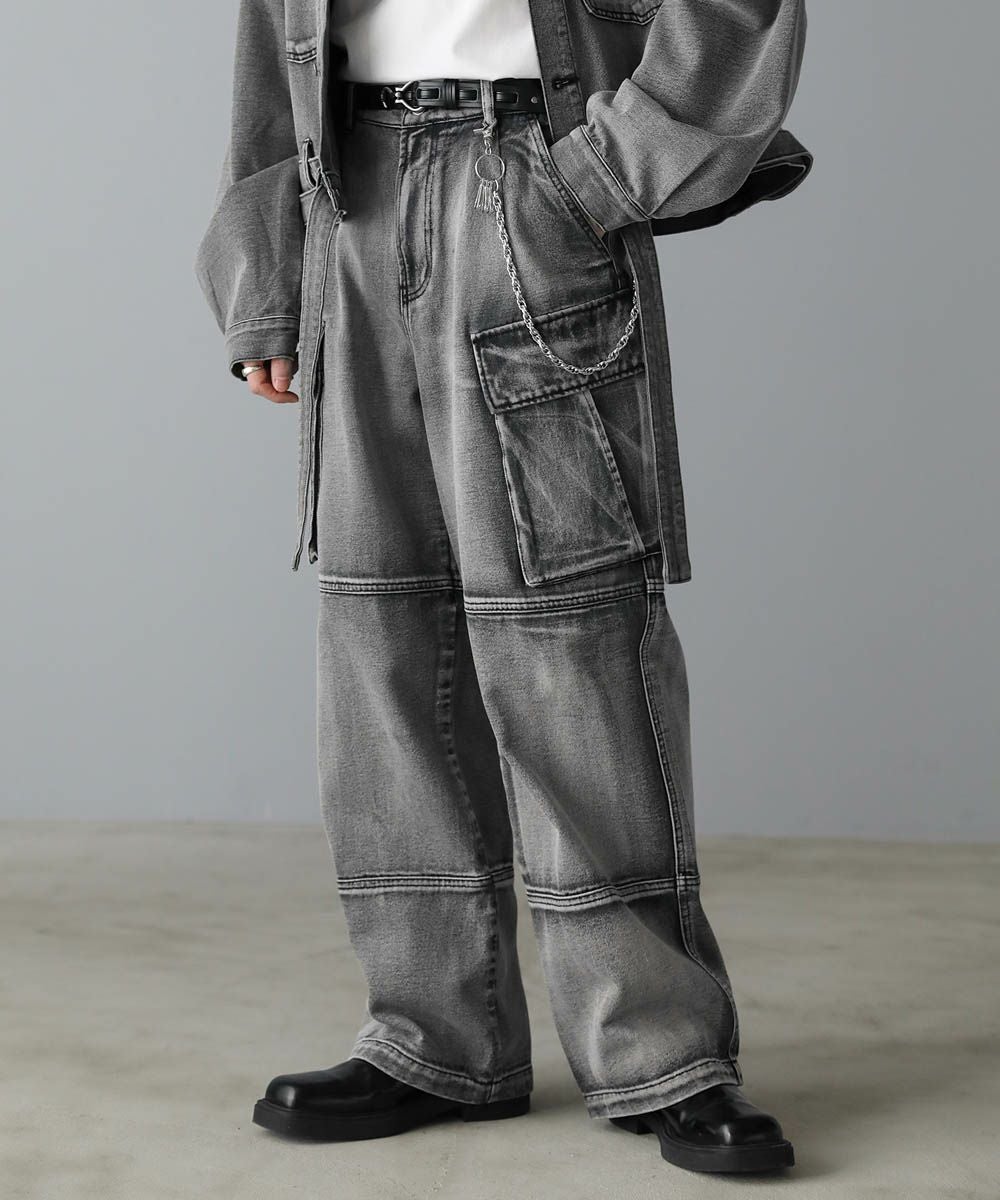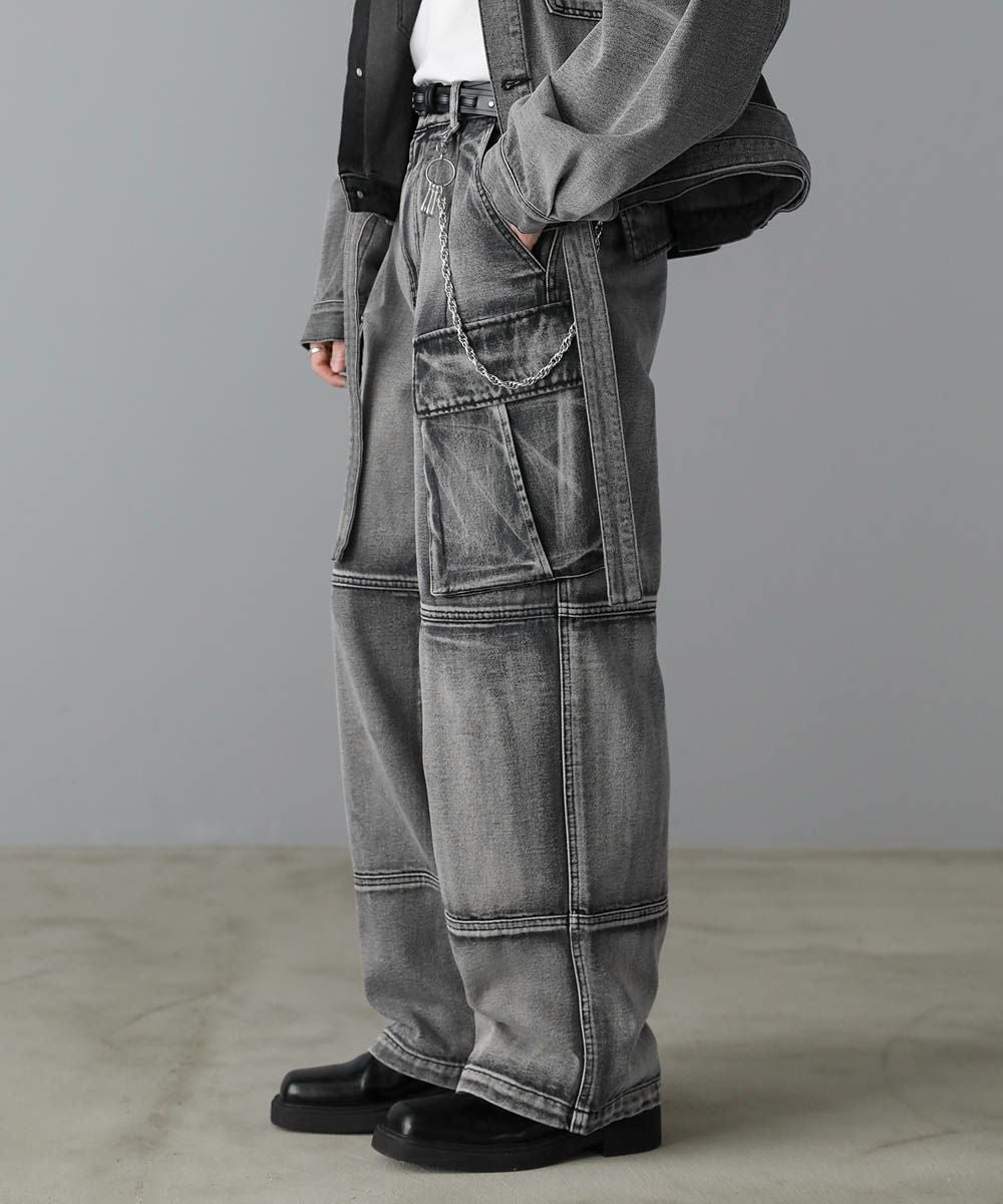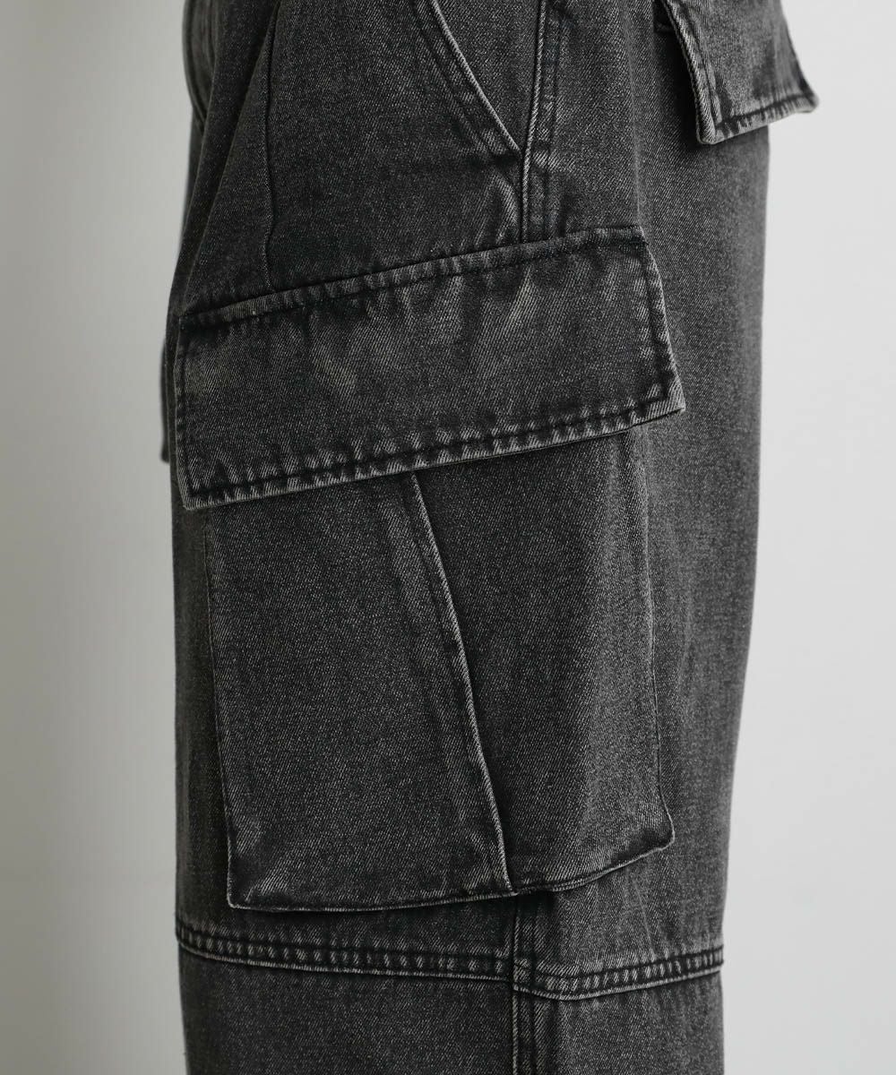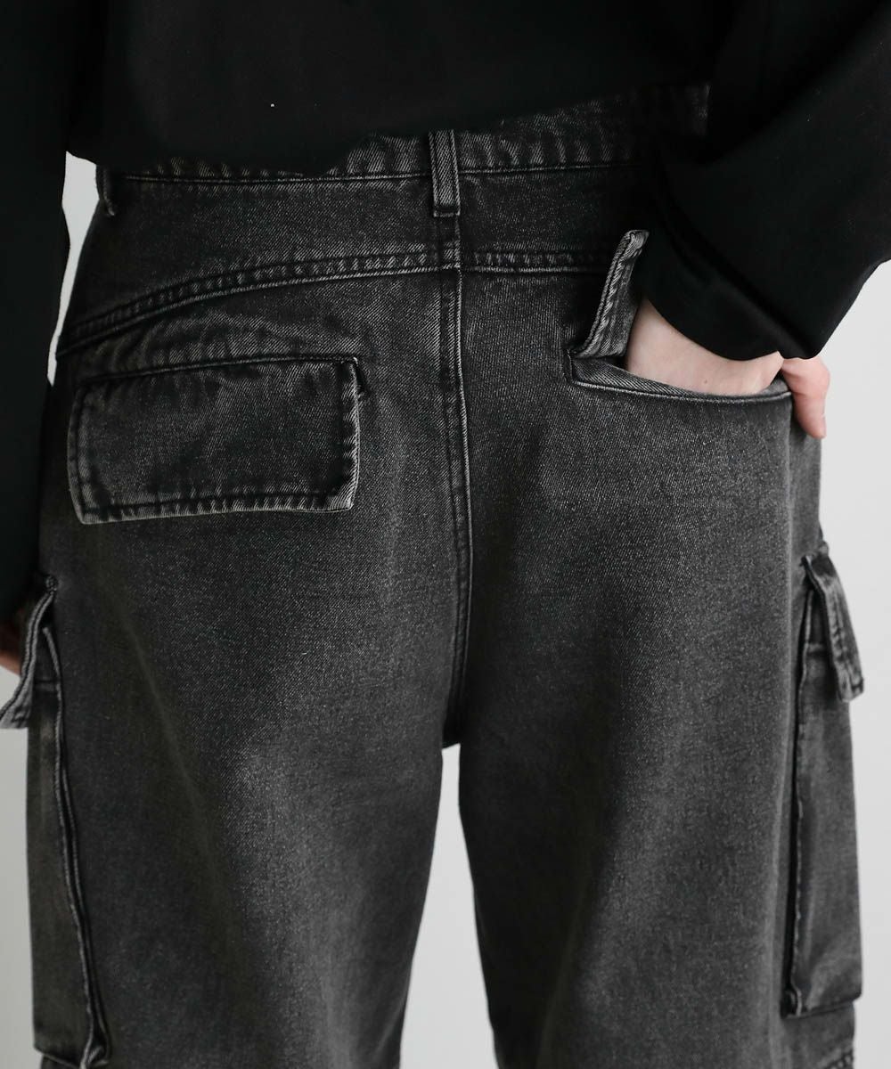 【セットアップ可能】ウォッシュ加工カーゴデニムパンツ