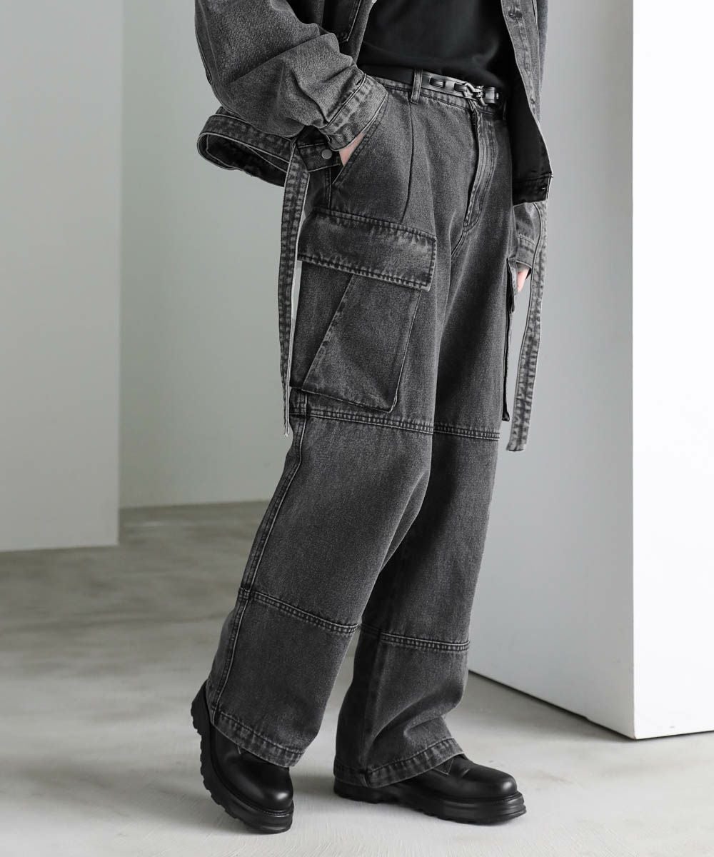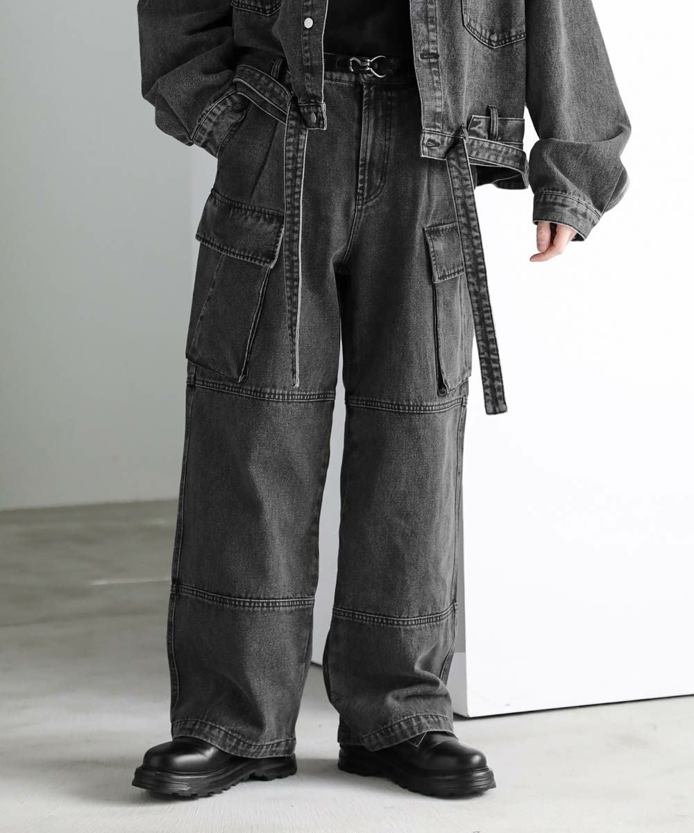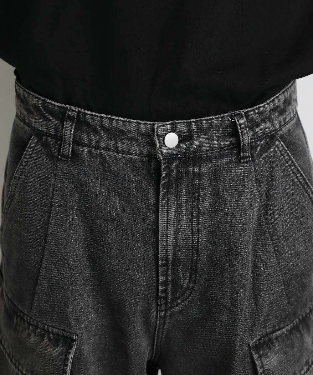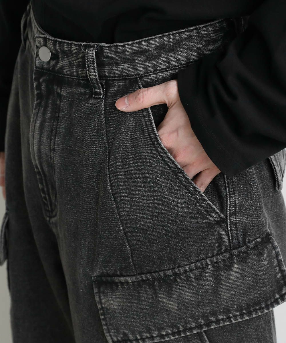 【セットアップ可能】ウォッシュ加工カーゴデニムパンツ