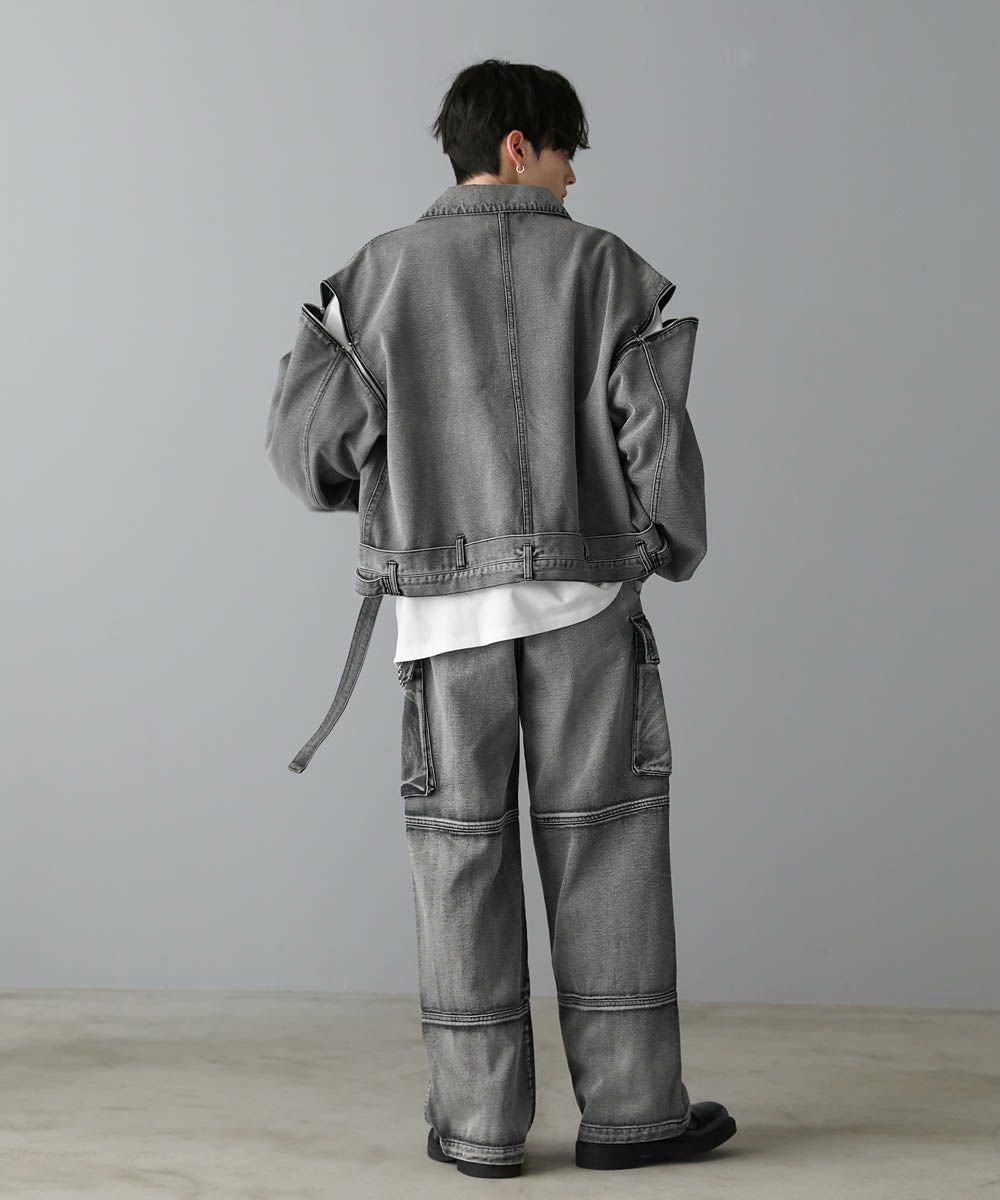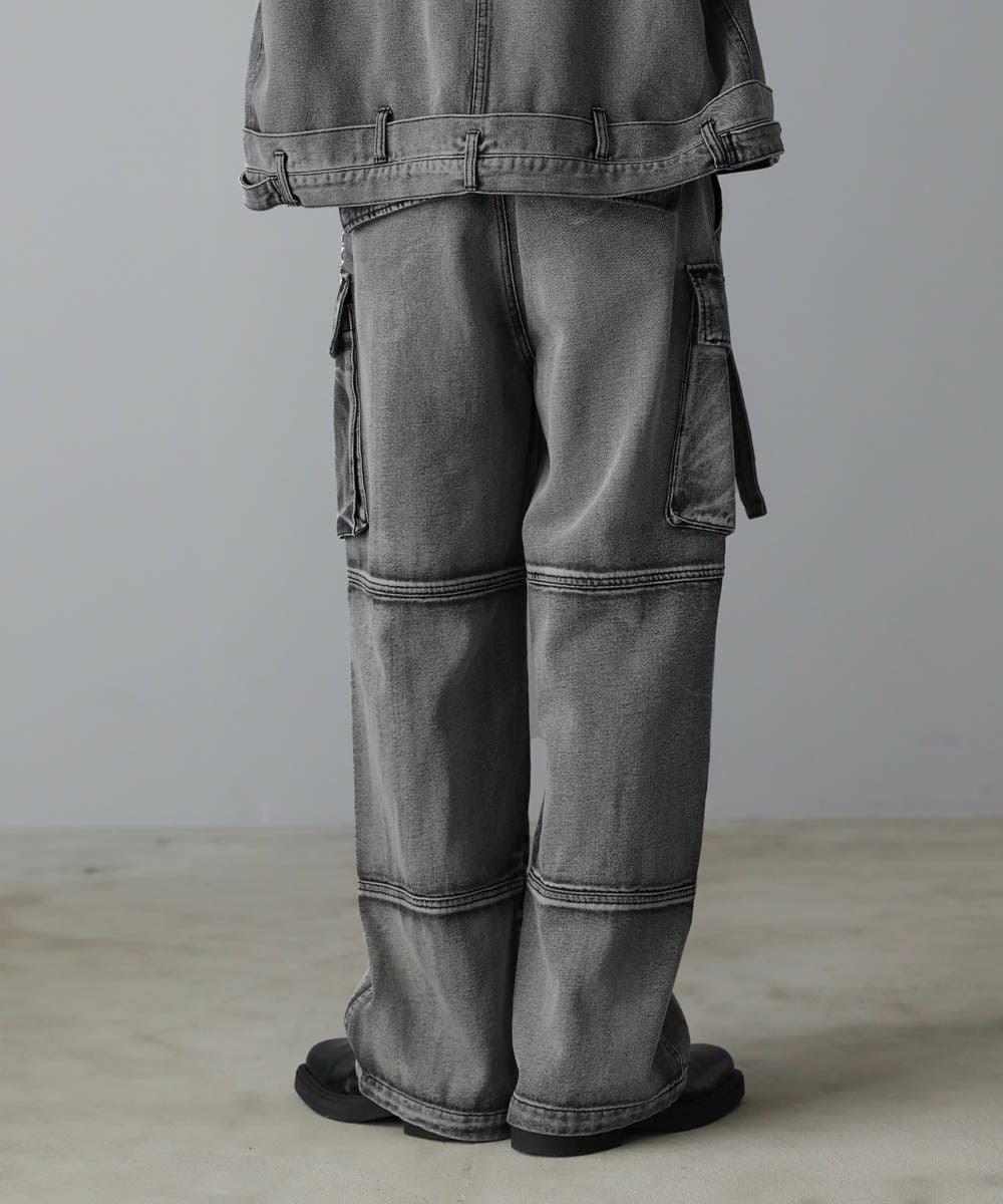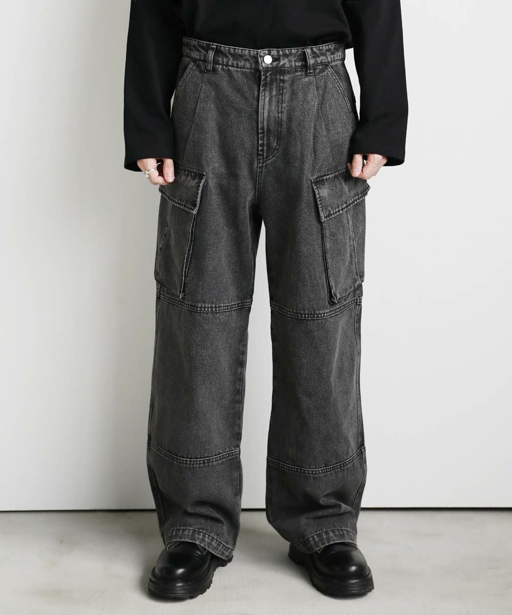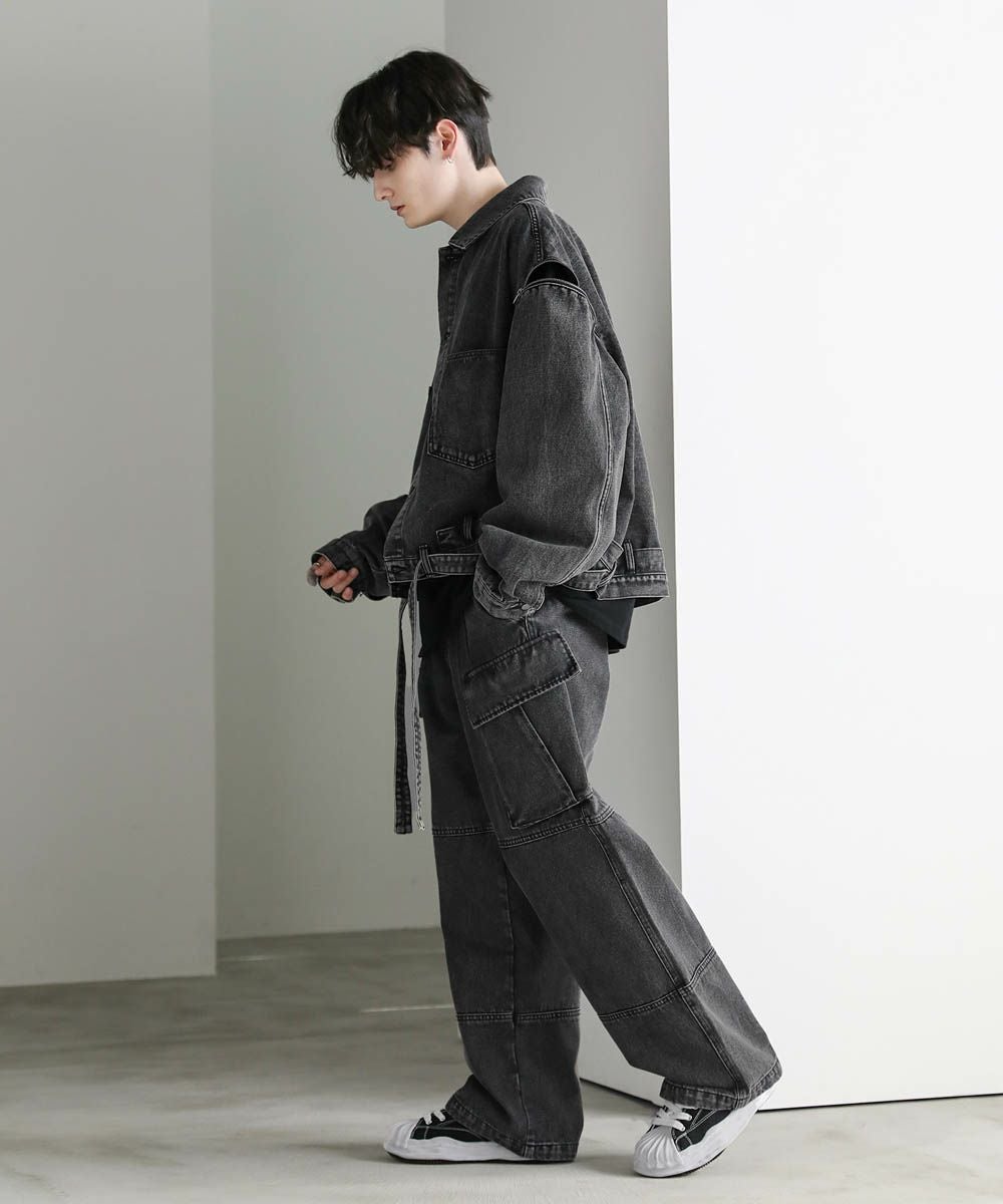 【セットアップ可能】ウォッシュ加工カーゴデニムパンツ