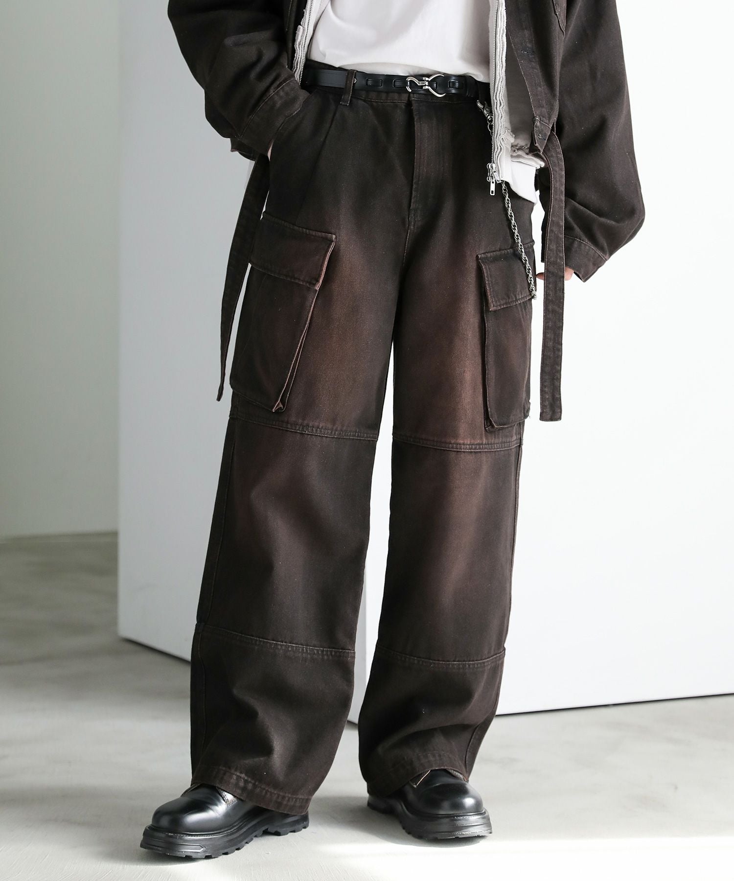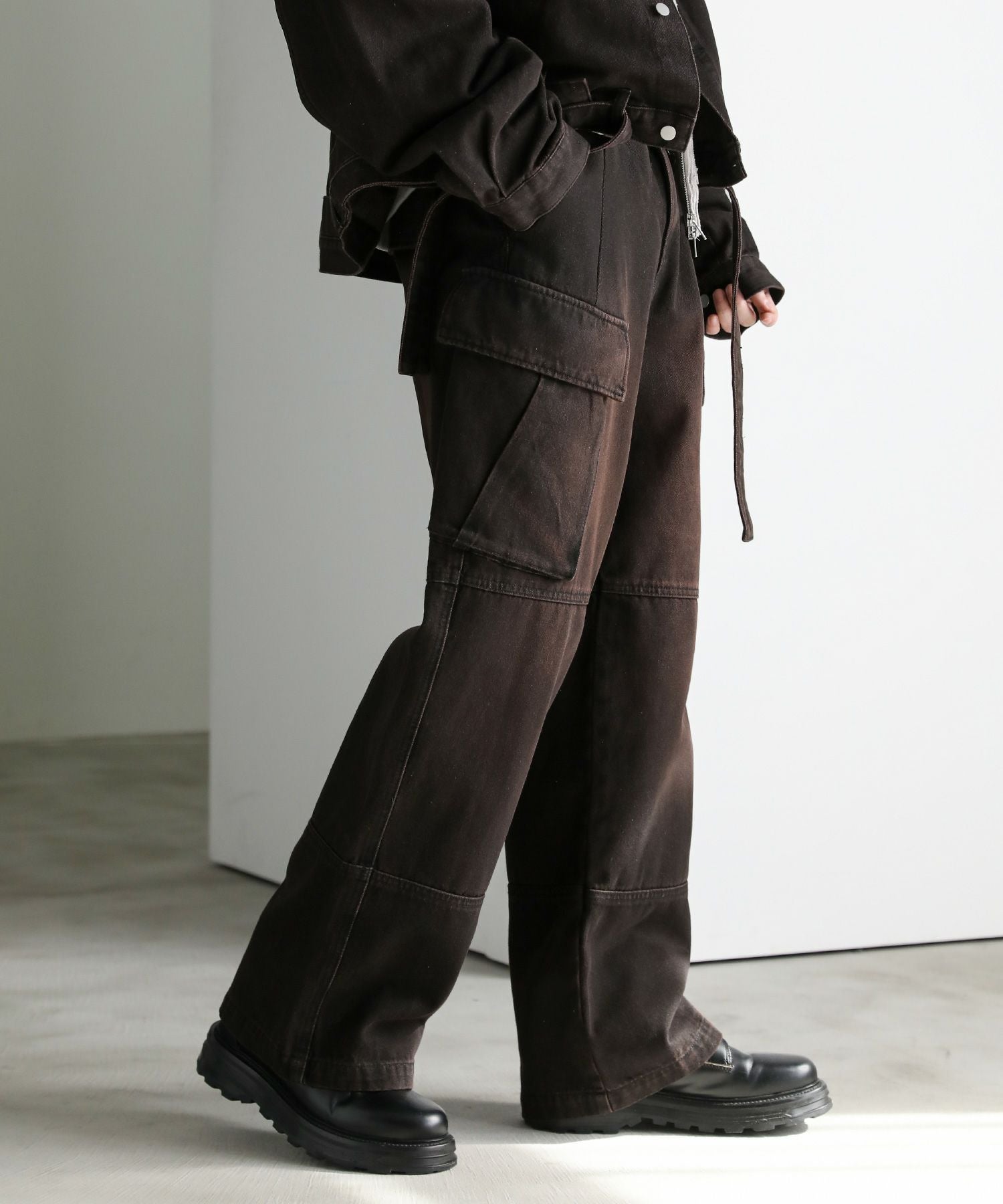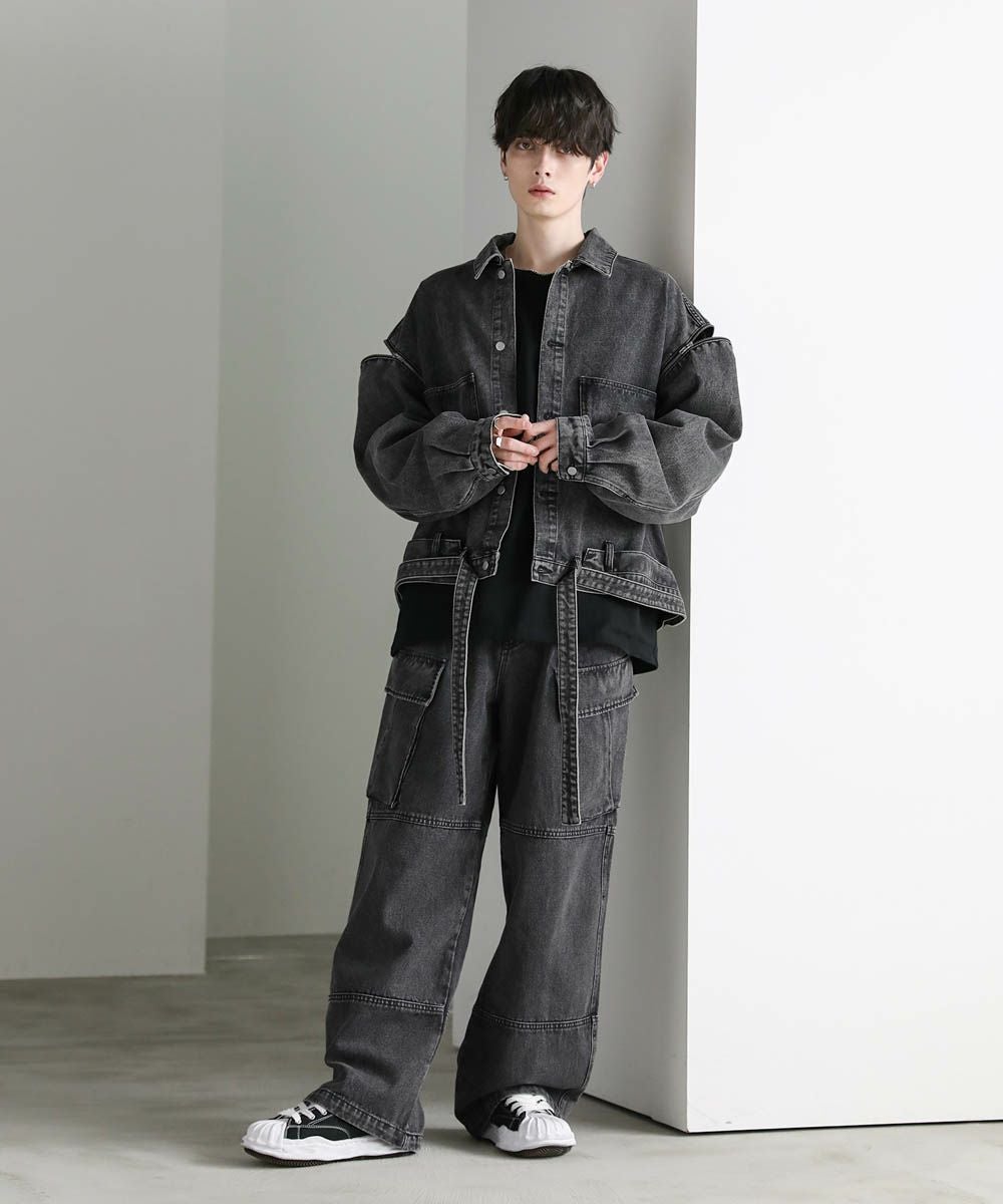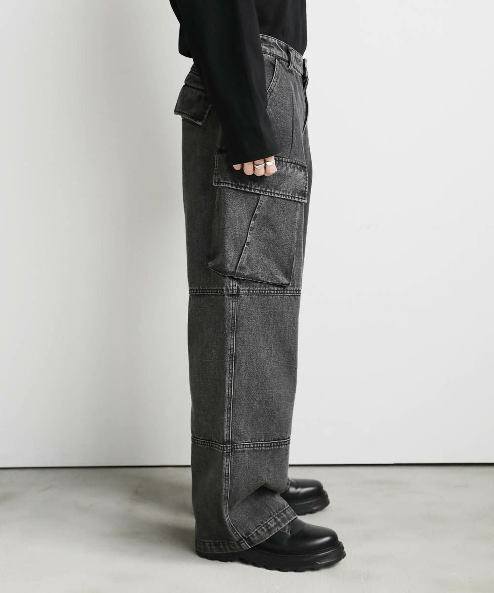 【セットアップ可能】ウォッシュ加工カーゴデニムパンツ