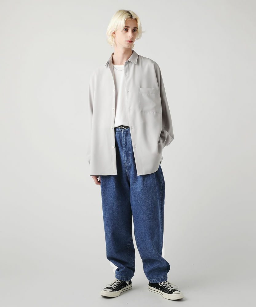 しっかりとした綿100%の生地感で、着用や洗濯を経て、デニムならではの色落ちの変化を楽しめるのが特徴。程よい加工感のワンウォッシュと爽やかな印象のインディゴブリーチの2色展開で、きれいめなシャツなどと相性の良いアイテムです。