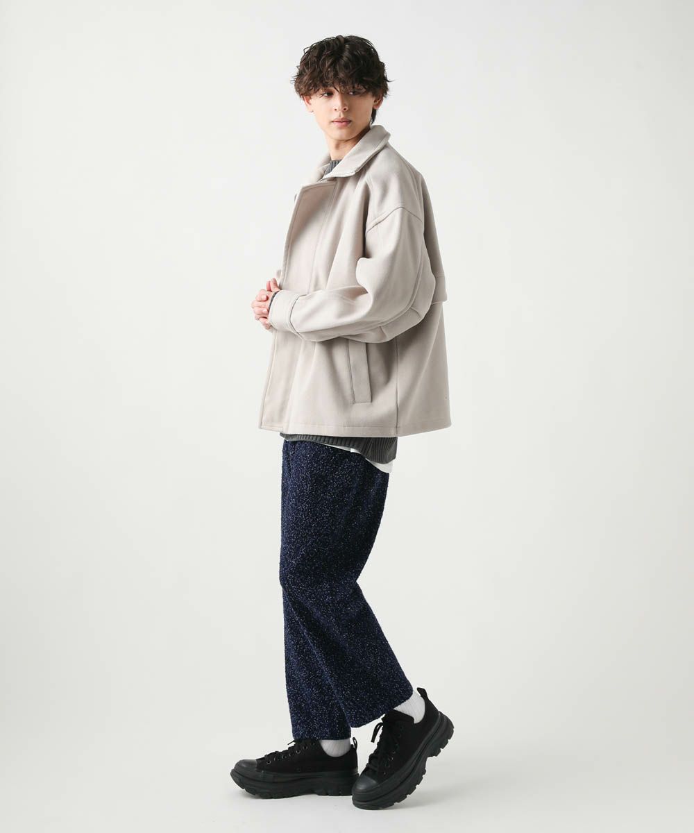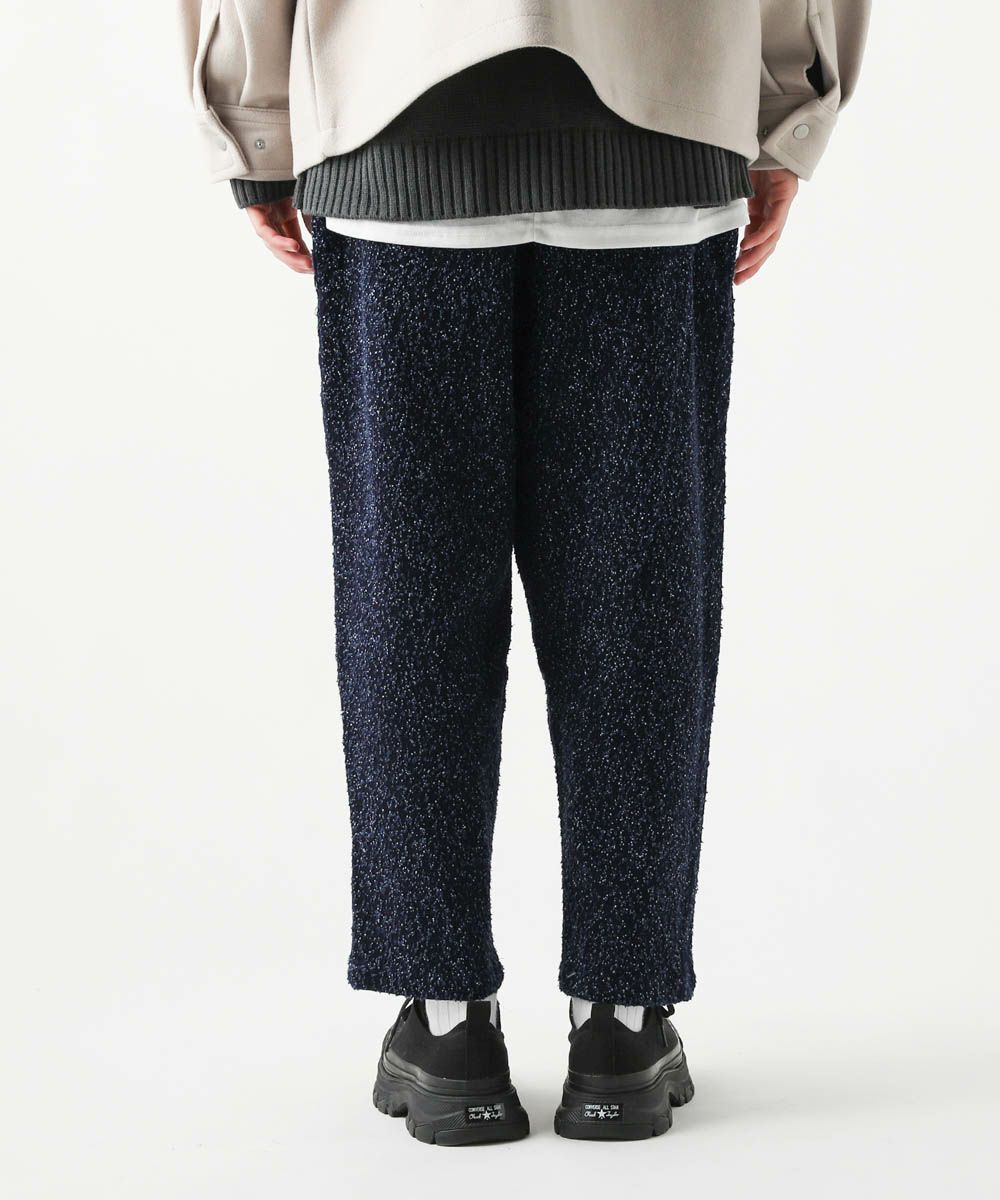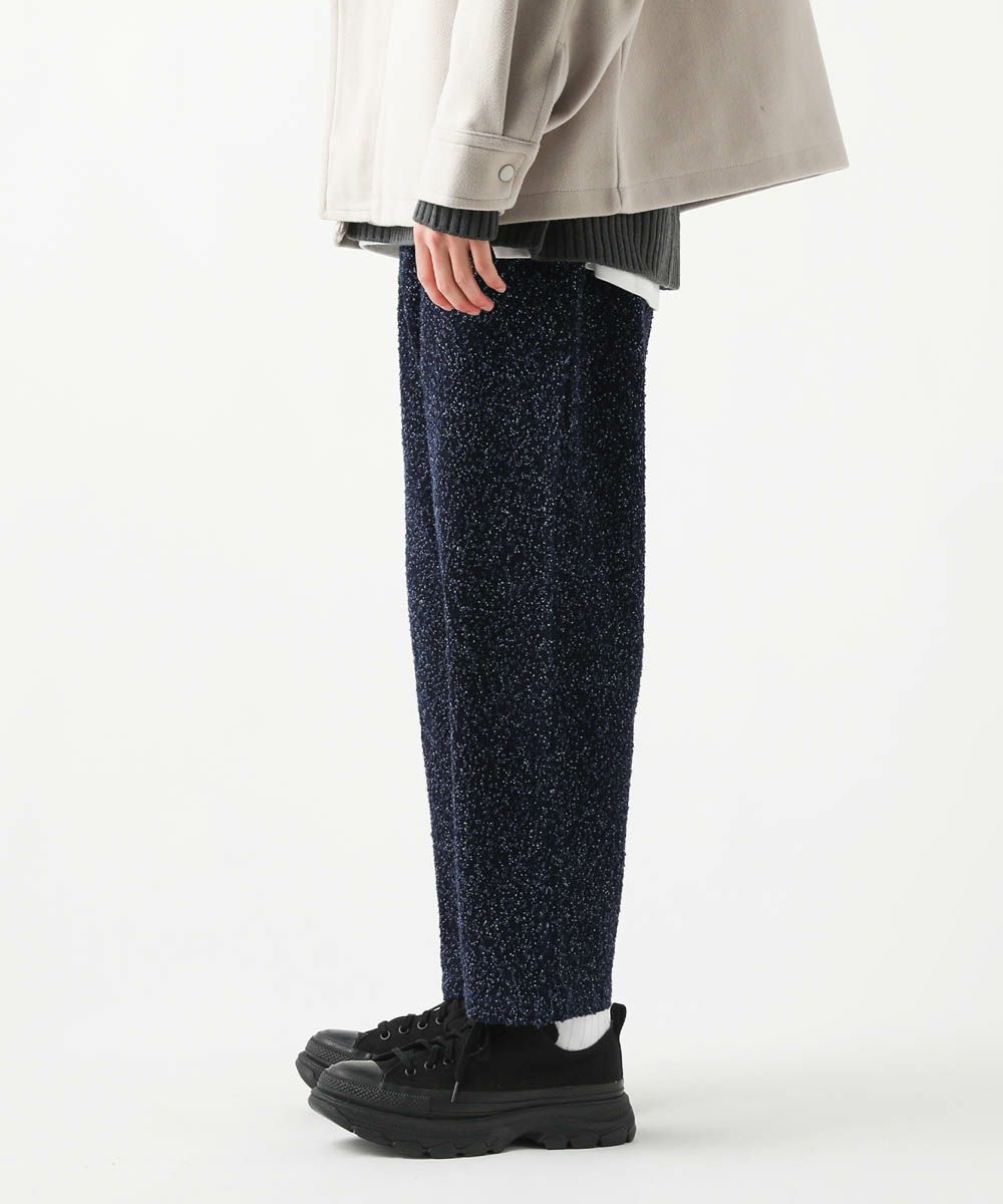 ネップの素材感が表情のあるワイドデニムパンツ。生地表面にある凹凸感がコーディネートにアクセントを加えてくれます。股上を深く取った、ゆったりめのワイドシルエットを採用し、リラックス感のある雰囲気が魅力です。また、深めのタックが入っているのでヒップ周りにゆとりがあり、楽に穿いていただけます。カジュアルにもキレイめにも合わせやすく、オールシーズン着用可能なアイテム。コーディネートに表情を与えてくれるおすすめの1本です。