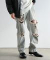 ダメージ加工 ウエストシャーリング ヴィンテージバギーデニム