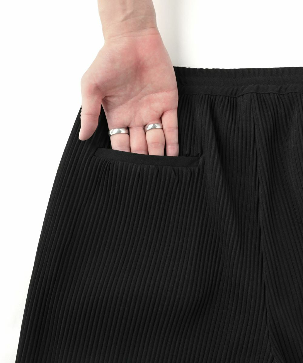 ポリエステル100%の素材で制作したEPICオリジナルのプリーツ生地は、プリーツ幅をやや大きめに取り、プリーツの深さを浅く設定することで、プリーツ生地ならではの存在感を残しながらも、程よく抜け感のある上品な雰囲気に仕上げてます。