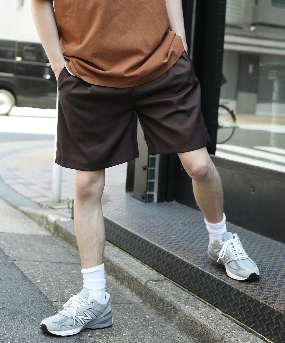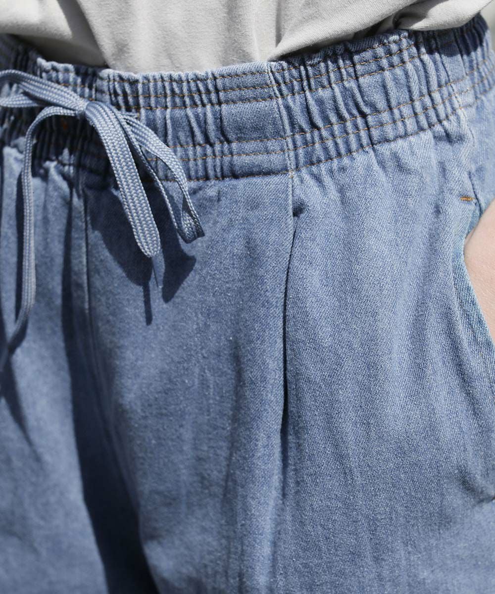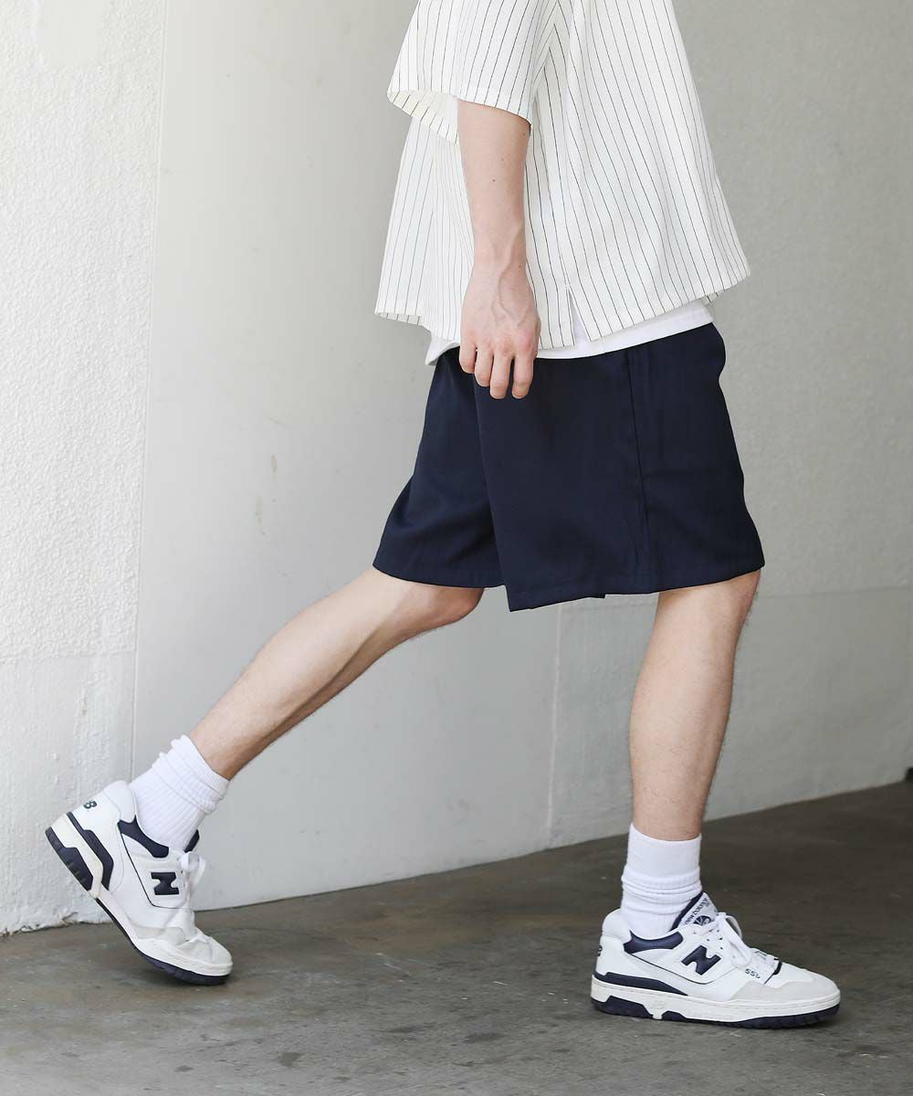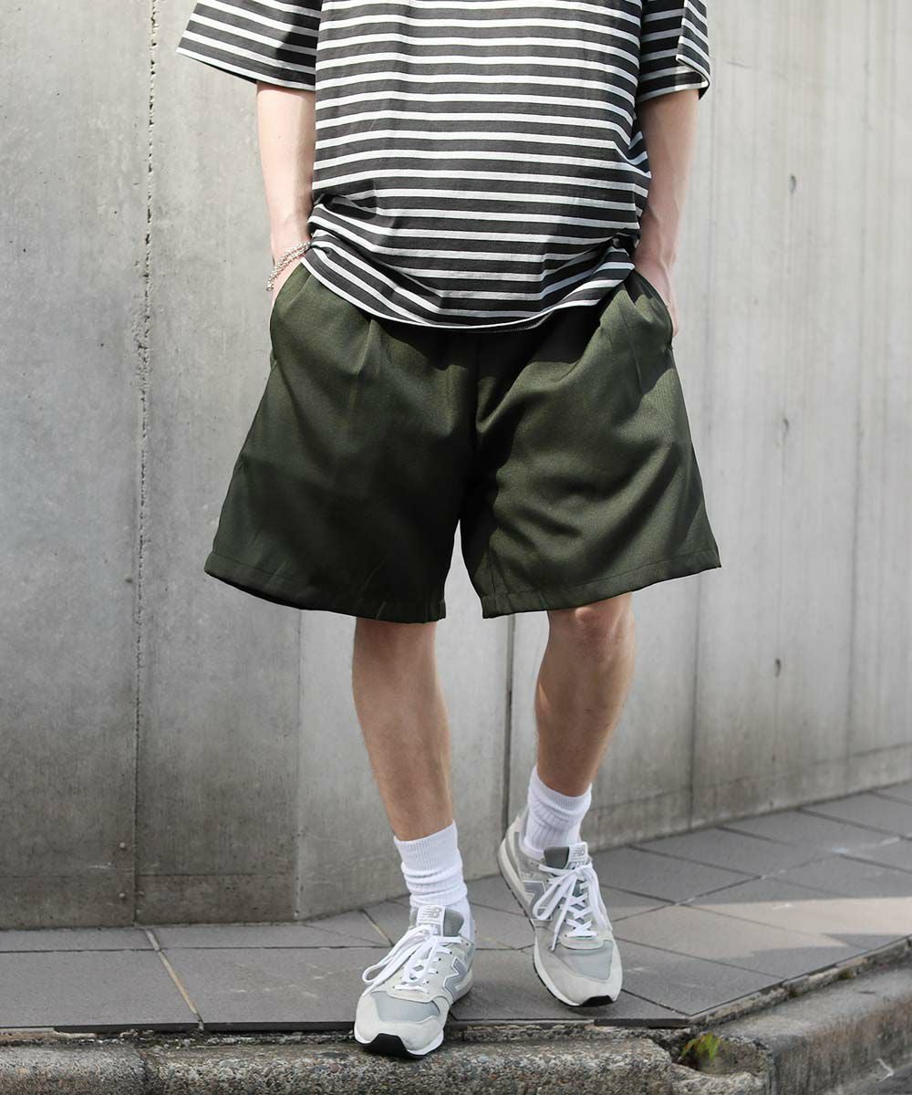 暑い季節にぴったりなリラックス感と軽やかさが魅力のショートパンツ。フロントにはタックが入っており、裾に向かって広がりのあるワイドシルエットが今年らしいアイテムです。ウエストは紐とゴム仕様になっており楽な穿き心地。ベルト要らずで穿くことができる手軽さが魅力です。