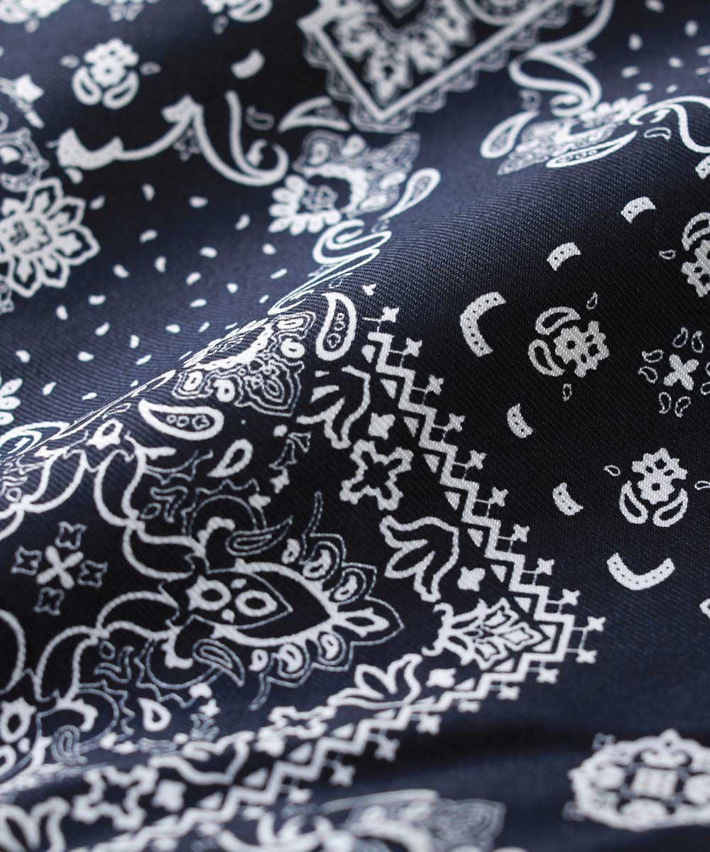 定番の無地からペイズリー、ヒッコリー、カモ柄などストリートスタイルにもハマる全12色のバリエーションでコーディネートの幅が広がります。街での着用はもちろんフェスやアウトドアシーンでも活躍する夏にひとつは欲しいアイテム。色違いで揃えるのもおすすめです。