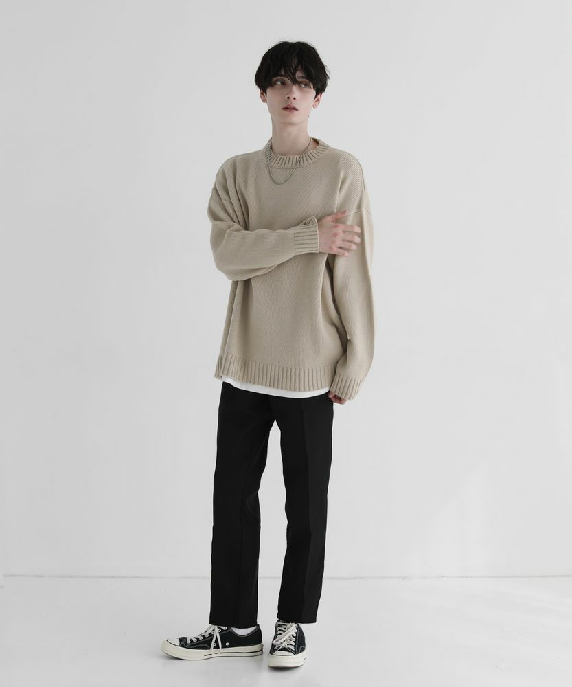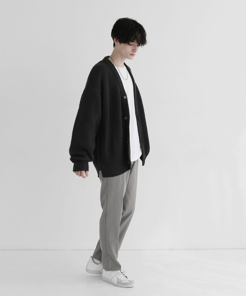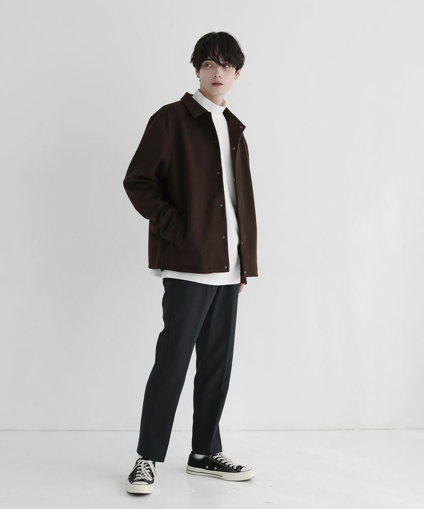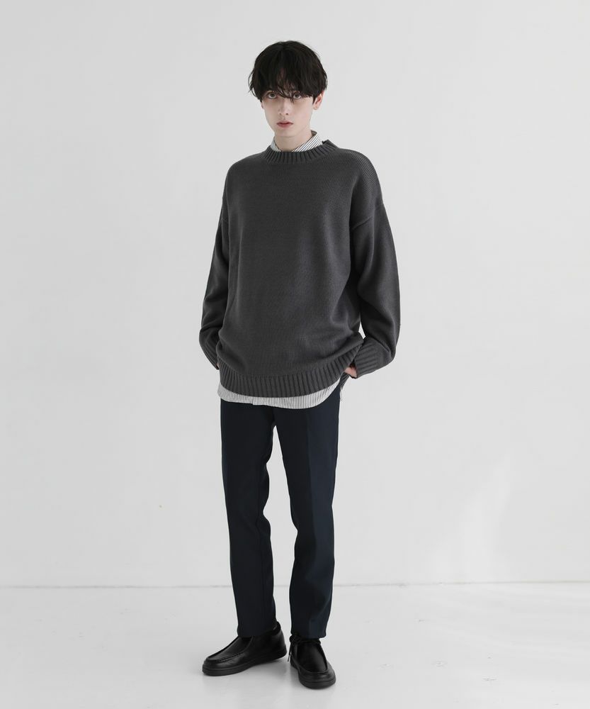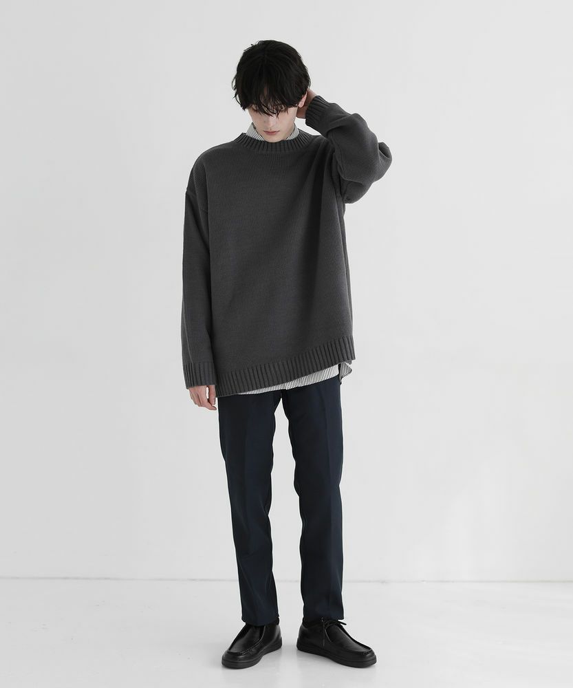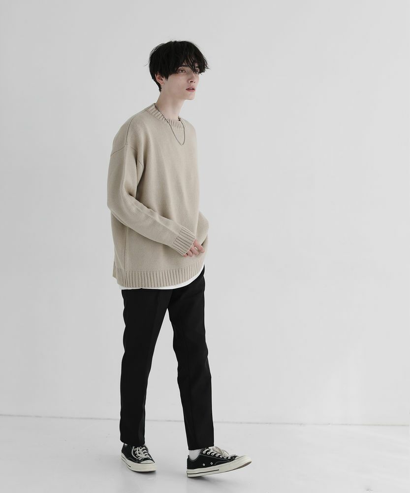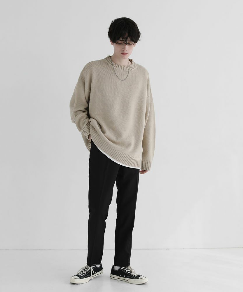 スタンダードなサイズ感のスラックスなので、合わせるアイテムを選ばない着回し力が魅力的な一本です。サラッとニットと合わせでシンプルな着こなしや、きれいめなシャツの外しアイテムとして、また真冬はコートとのスタイリングもおすすめです。ボリュームのあるトップスと合わせると今年らしい着こなしが完成します。
