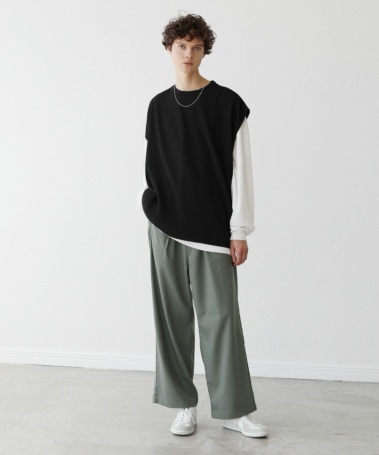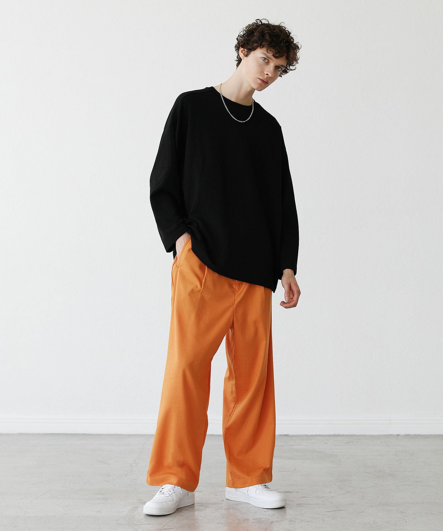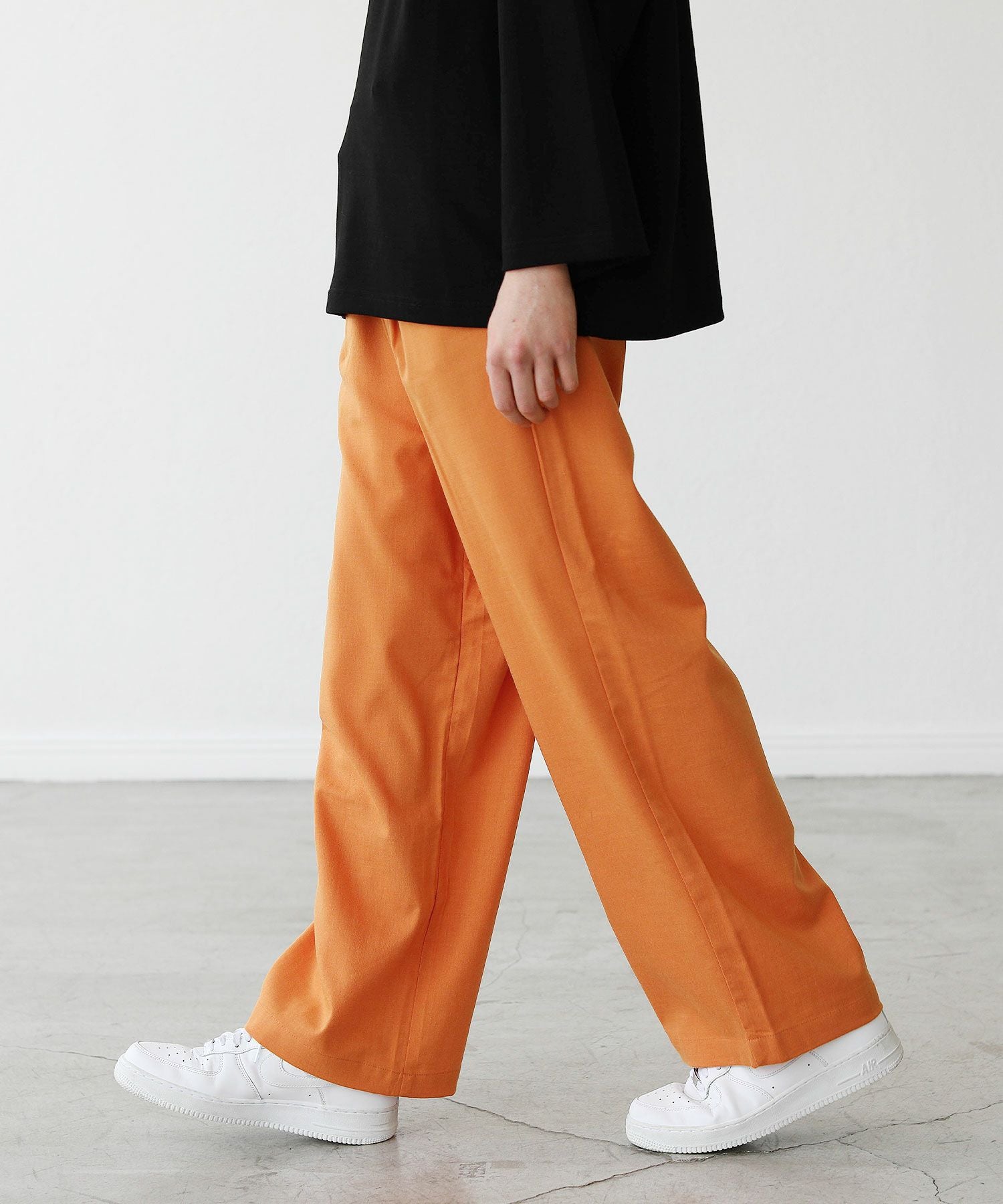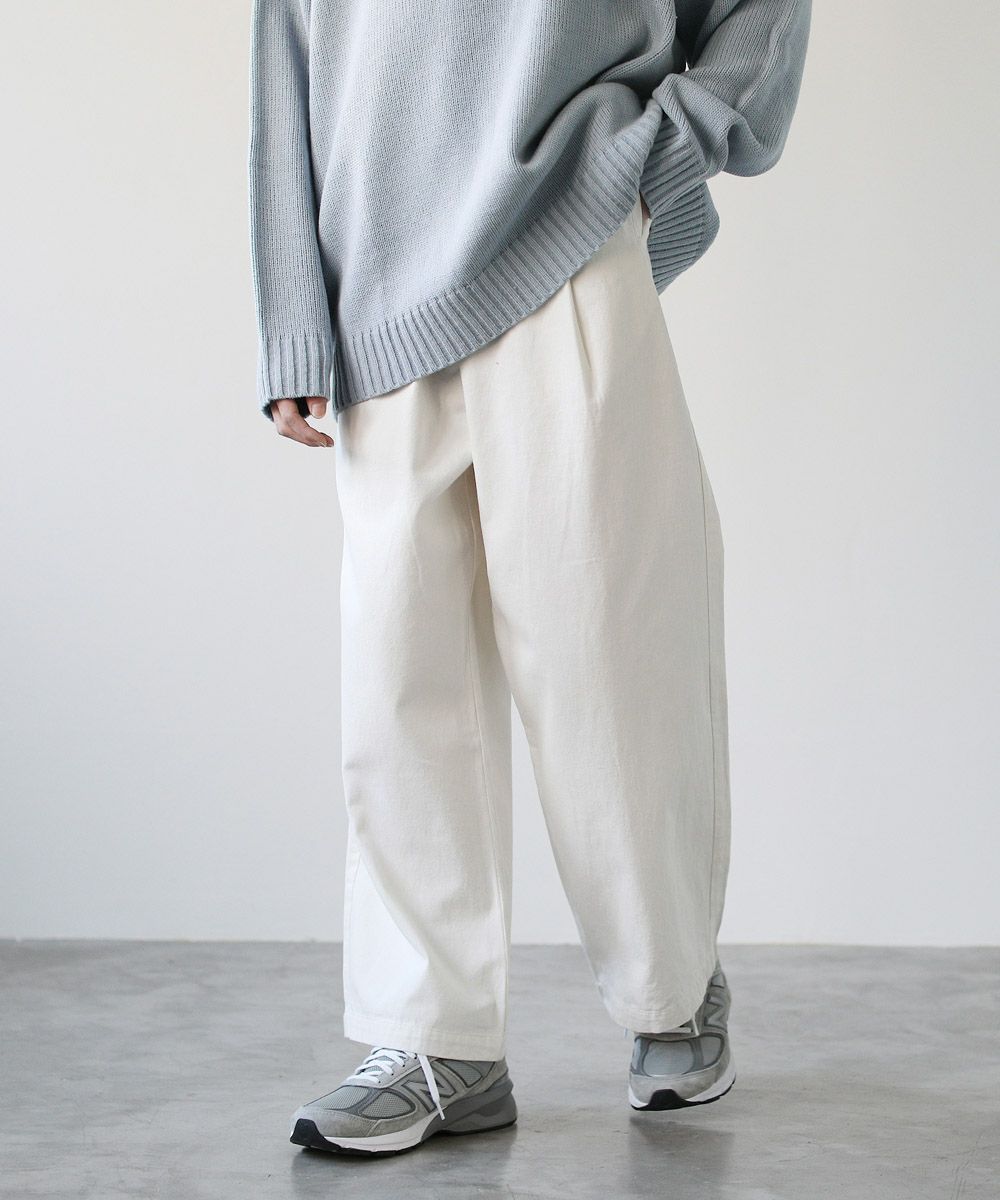 キレイめスタイルをワンランク上に仕上げてくれる光沢感のあるTR素材と今年から新たに加わったデニム素材の2パターンのワイドパンツ。
