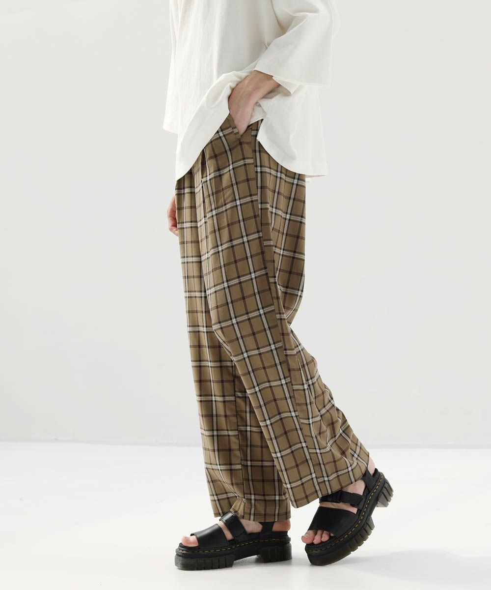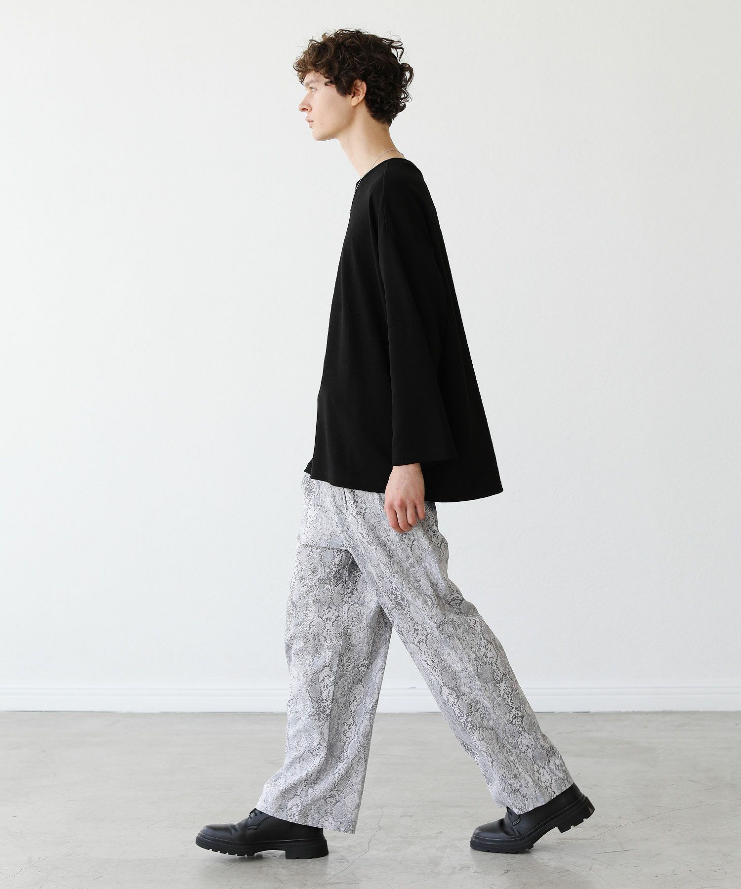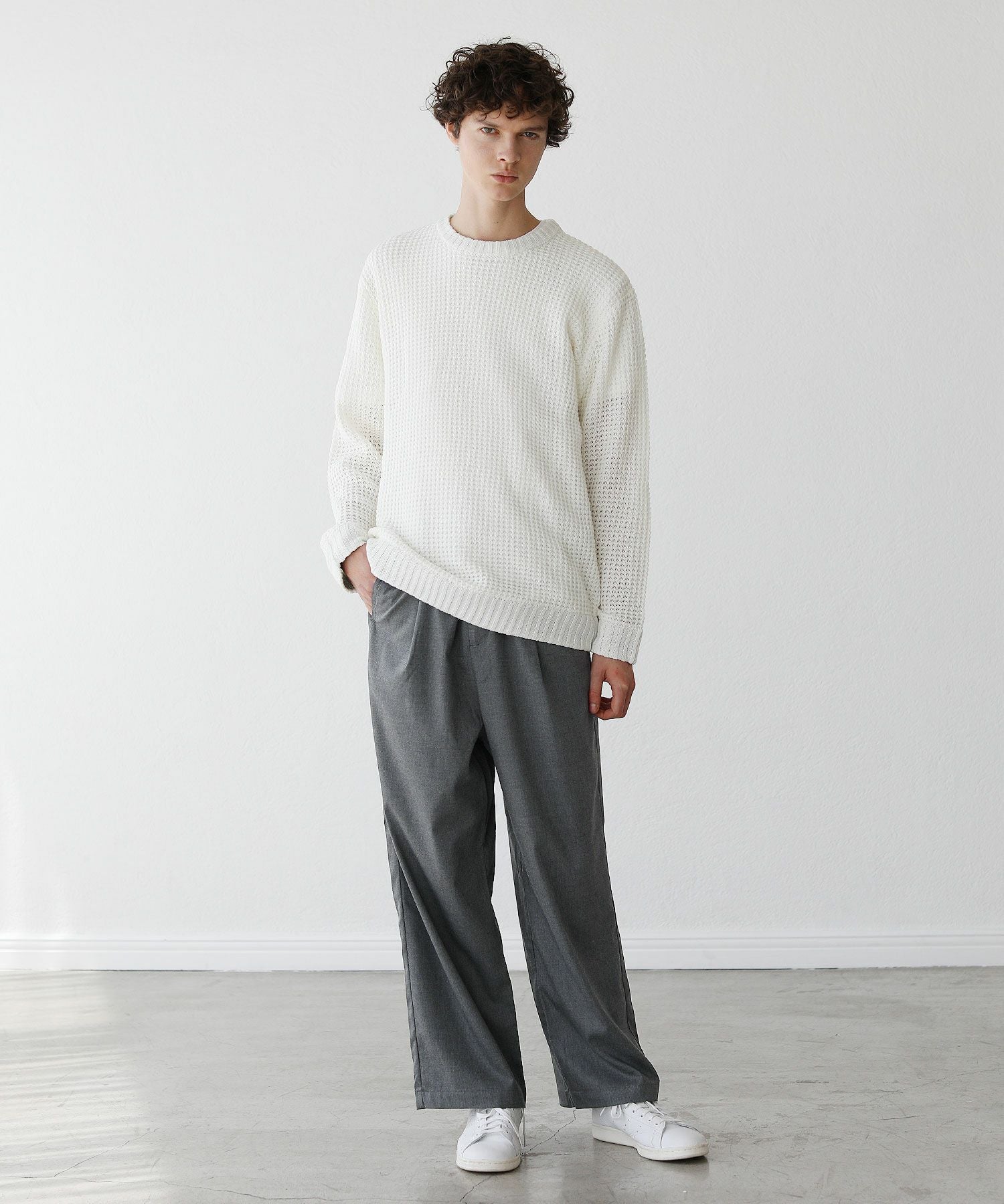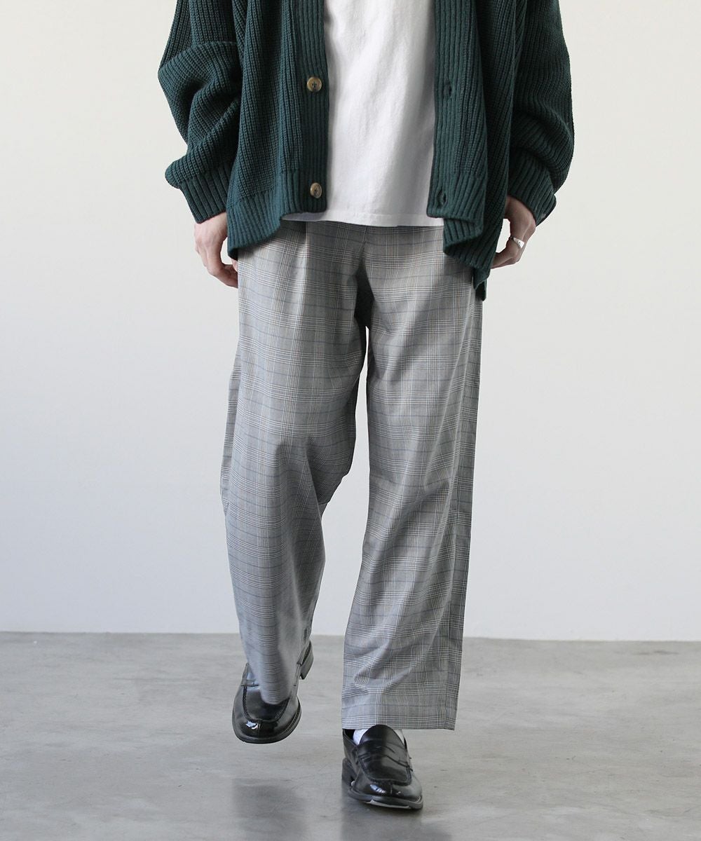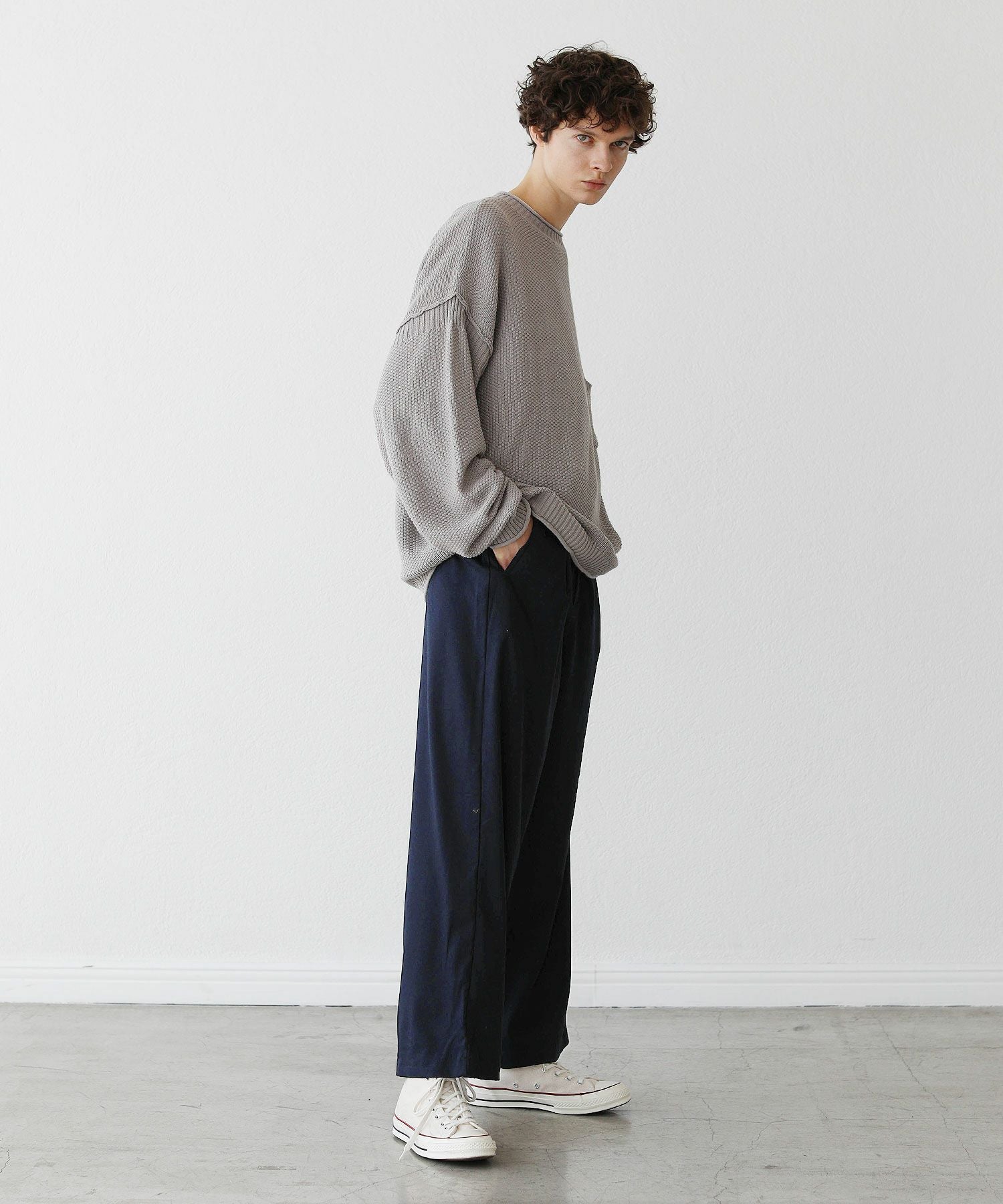 キレイめスタイルをワンランク上に仕上げてくれる光沢感のあるTR素材と今年から新たに加わったデニム素材の2パターンのワイドパンツ。