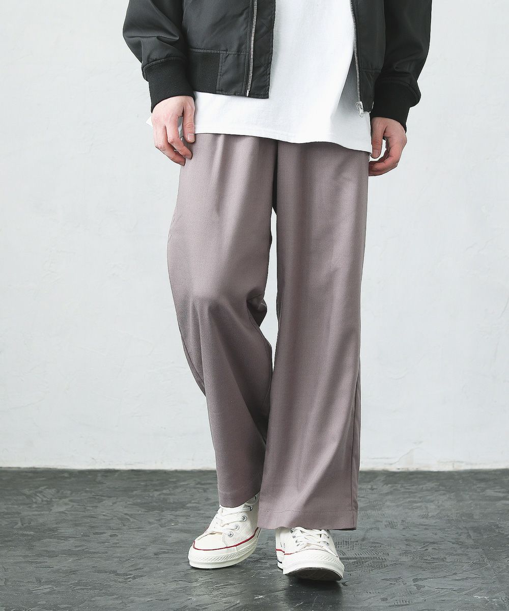 キレイめスタイルをワンランク上に仕上げてくれる光沢感のあるTR素材を採用したワイドパンツ。