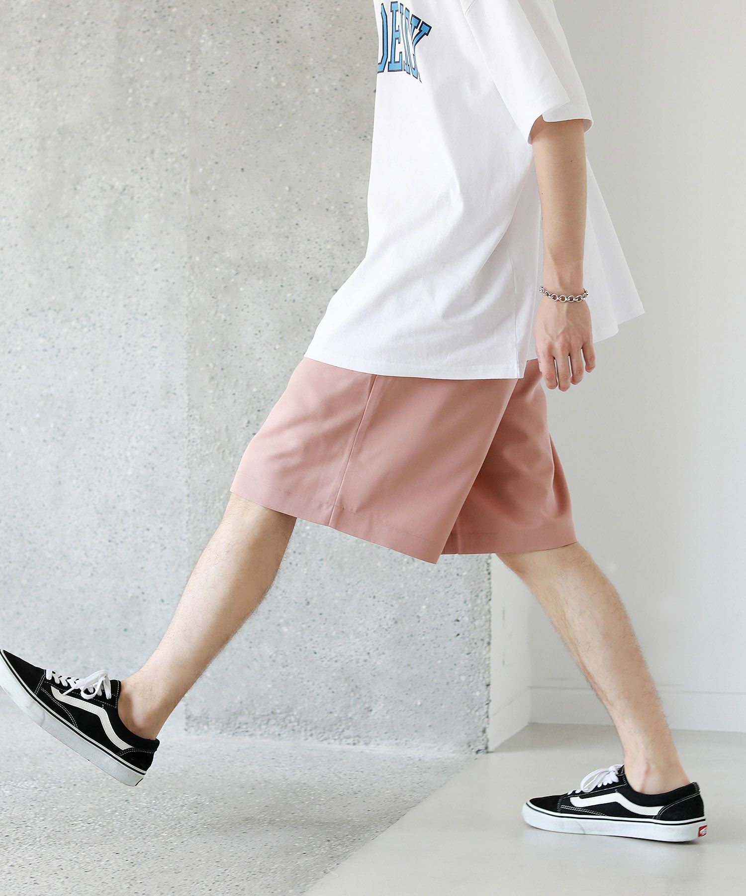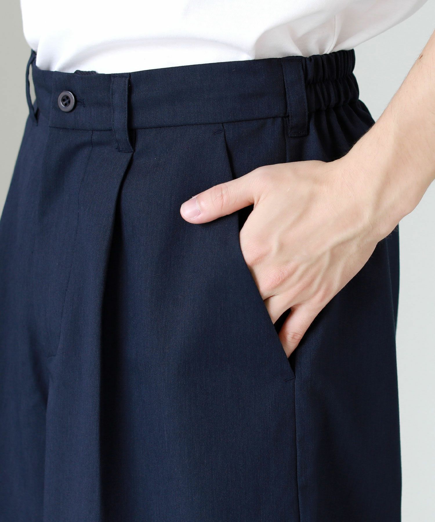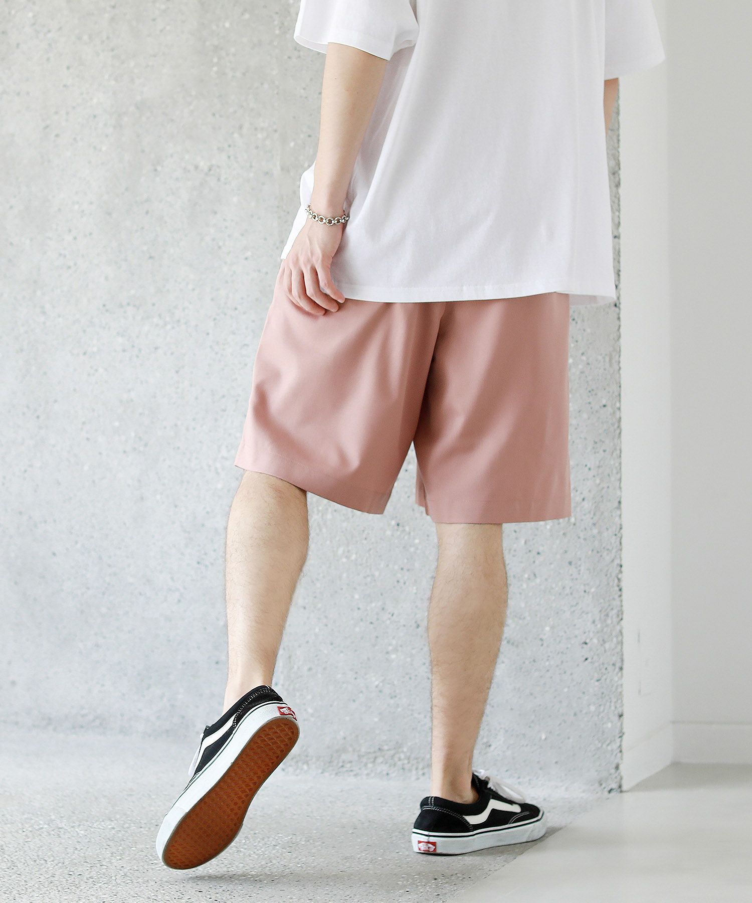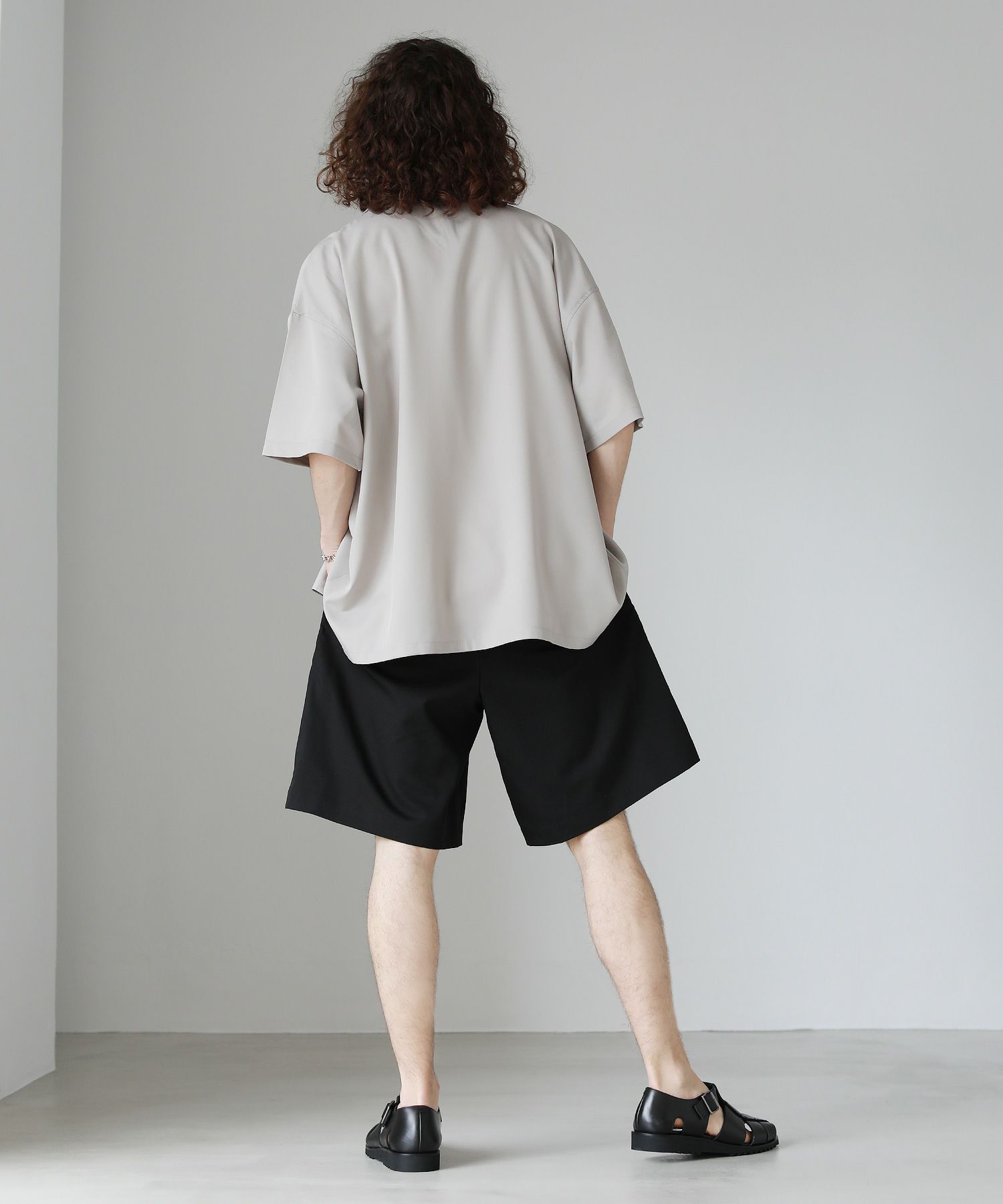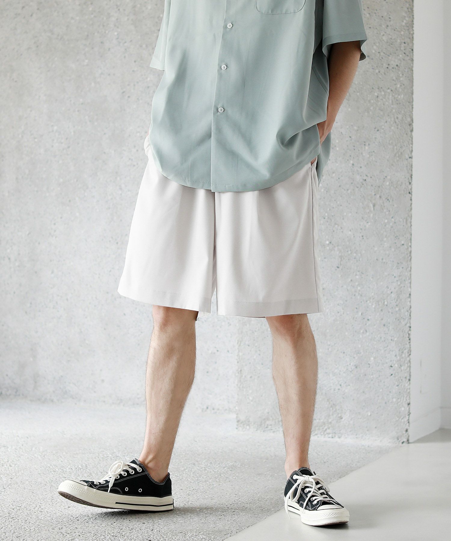 短すぎず長すぎない計算された丈感とワンタック入りの上品なデザイン。裾に向かって適度なゆとりを持たせたワイドシルエットが今の気分に合うショーツです。また滑らかな質感と艶のあるTR素材が、シックで上品な印象を着こなしにプラスしてくれます。