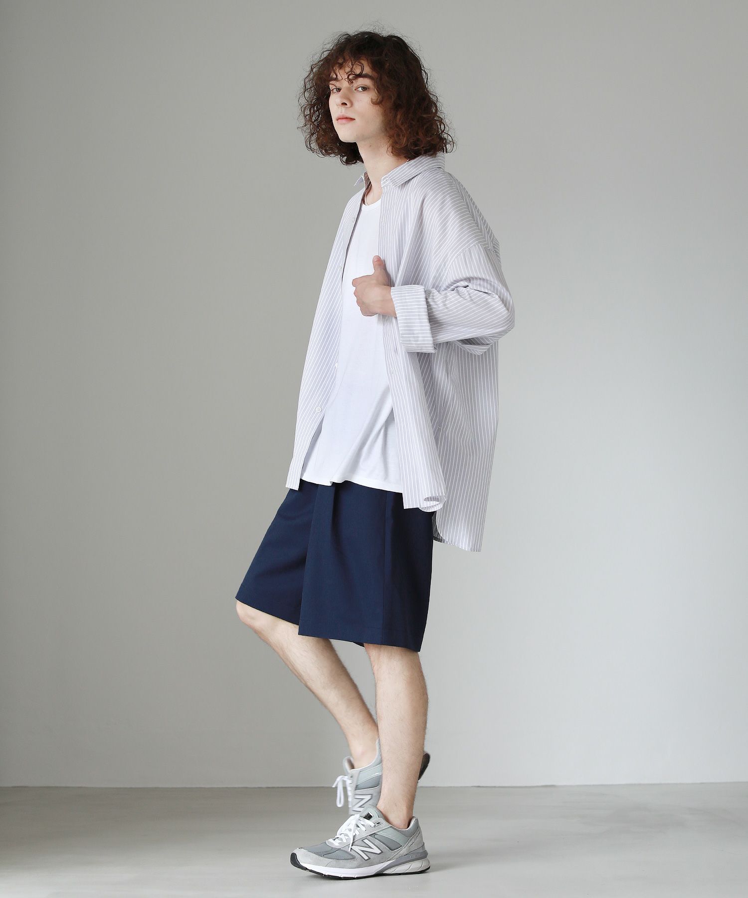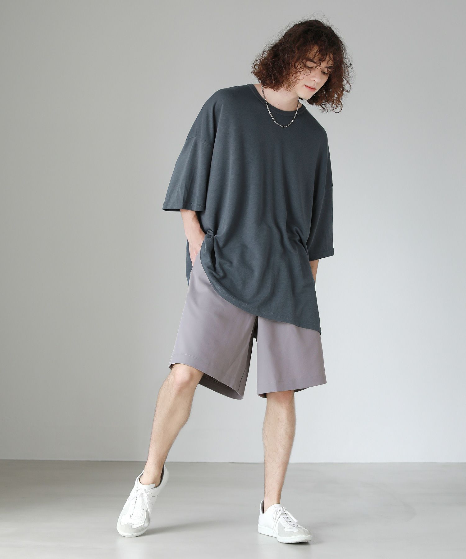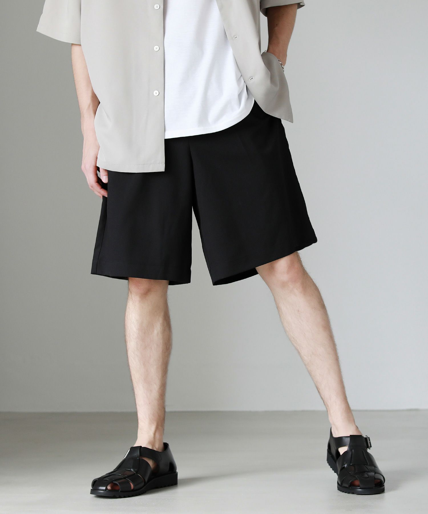 ●ワイドシルエットとレーヨンの落ち感がトレンド感抜群のイージーショーツ。ラフな夏のコーディネートに上品さとニュアンスをプラス。