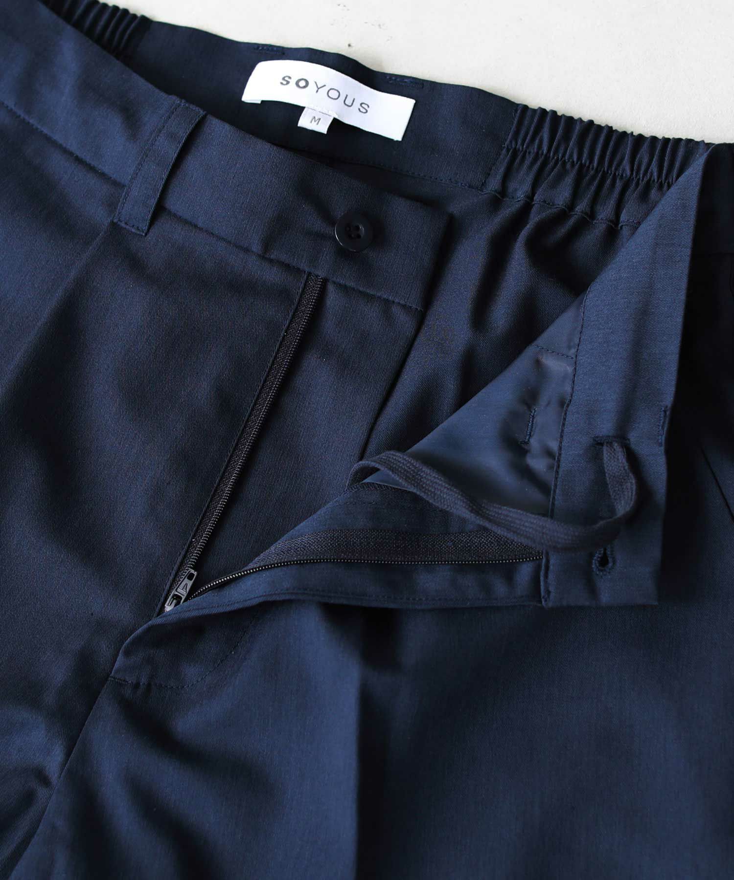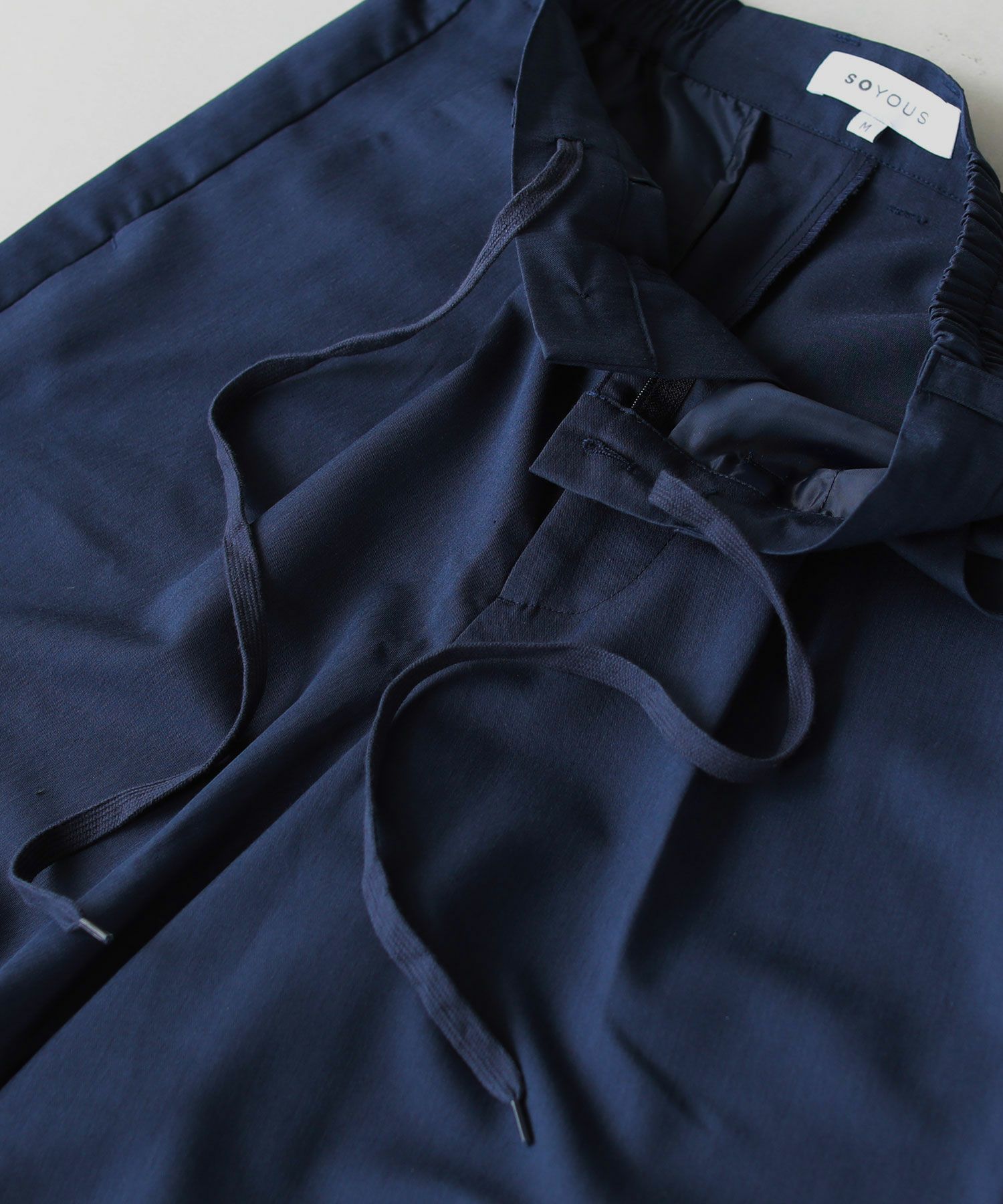 生地にはストレッチ性を持たせ、またウエストのサイドはシャーリングゴム仕様を採用するなどストレスフリーな穿き心地にも拘りました。ウエストサイズは紐で調整できるのでベルト要らずで着用できます。